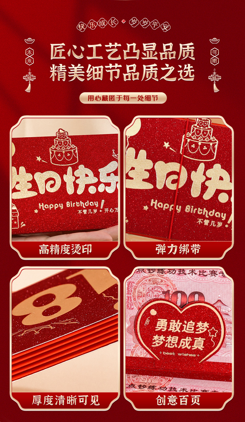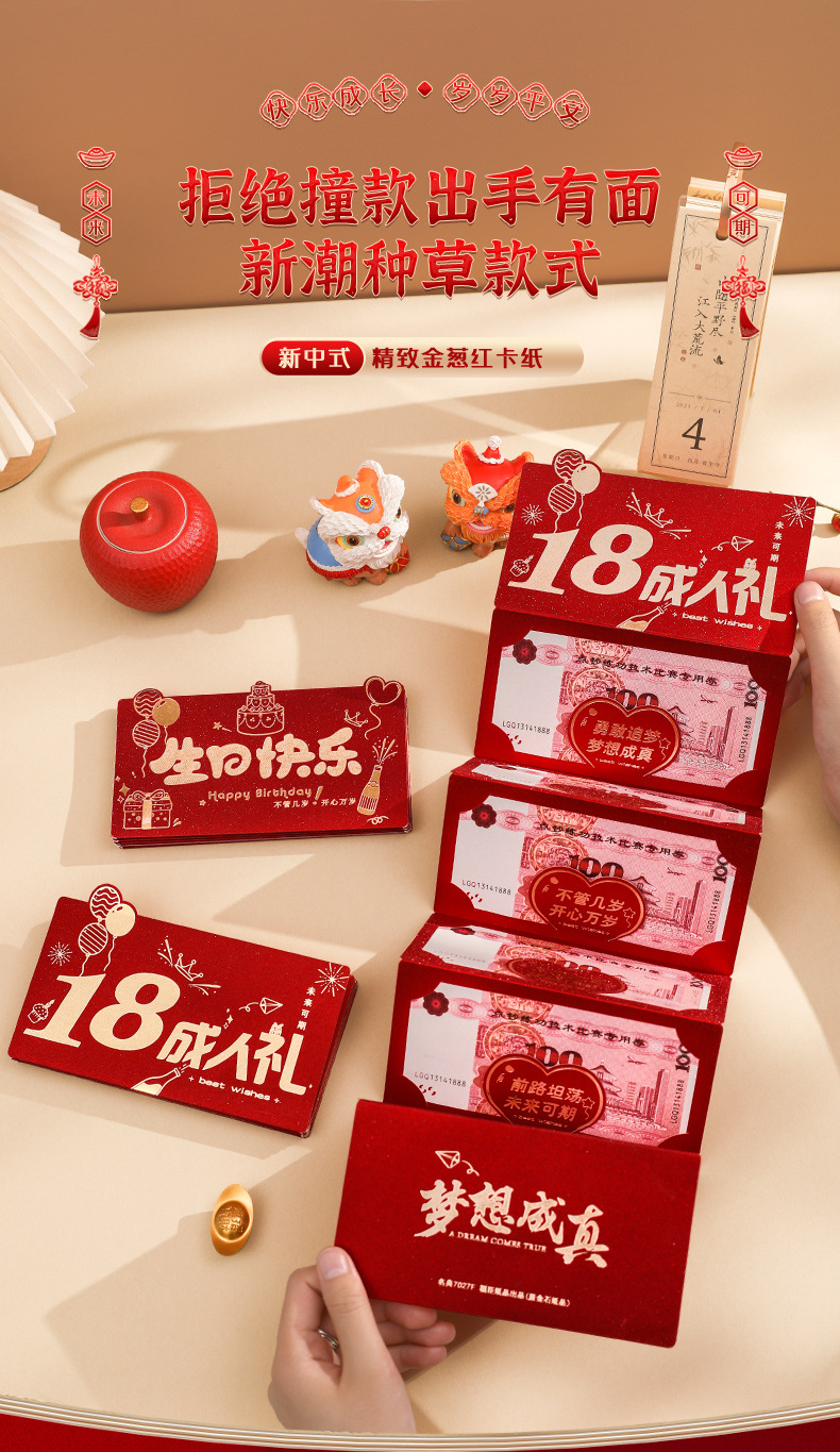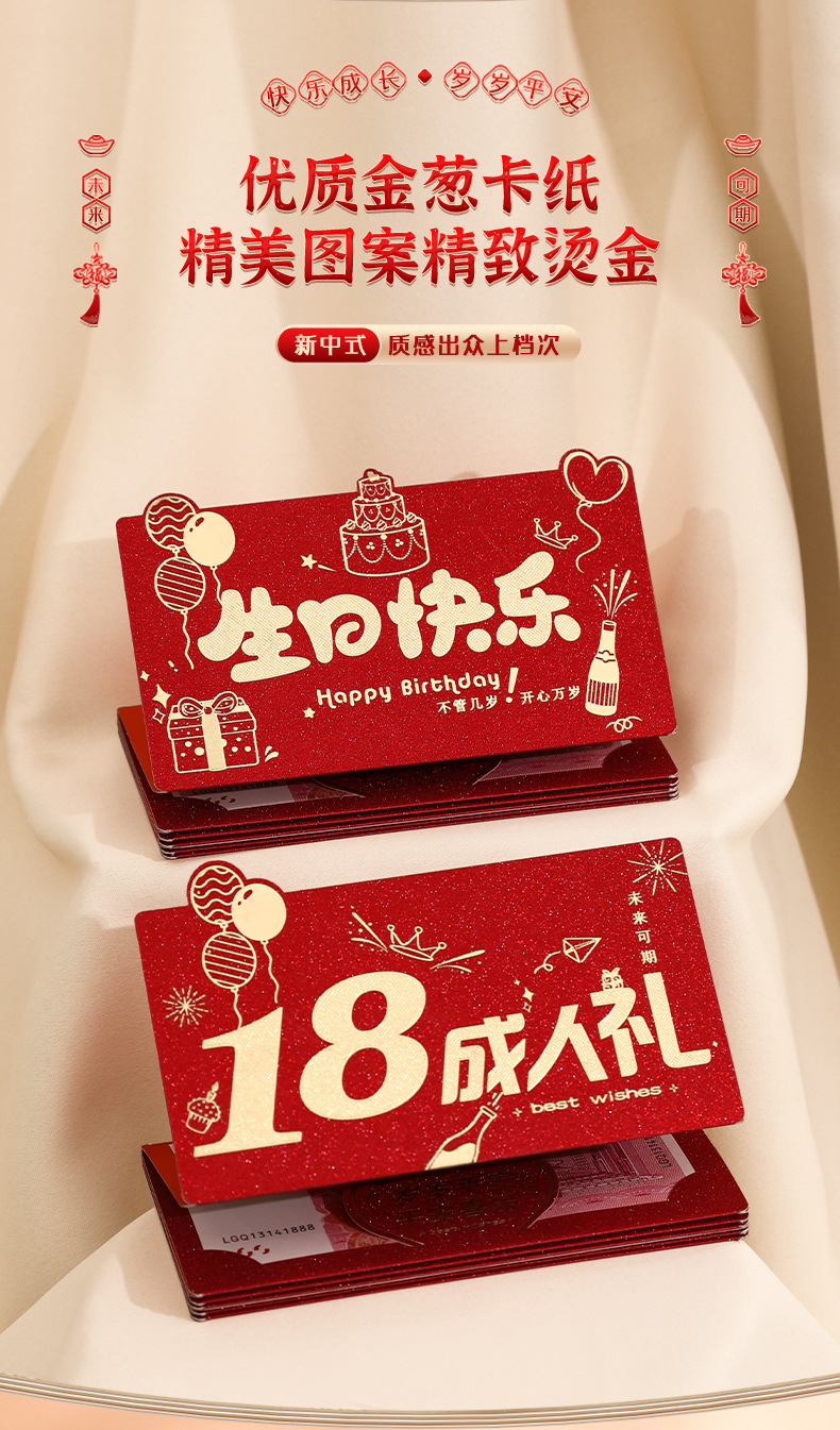2025年新款式金葱纸折叠六卡十卡18岁成人礼红包祝福利是封红包袋