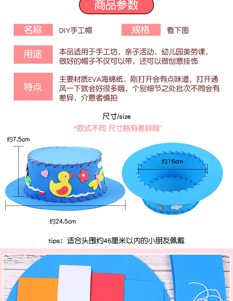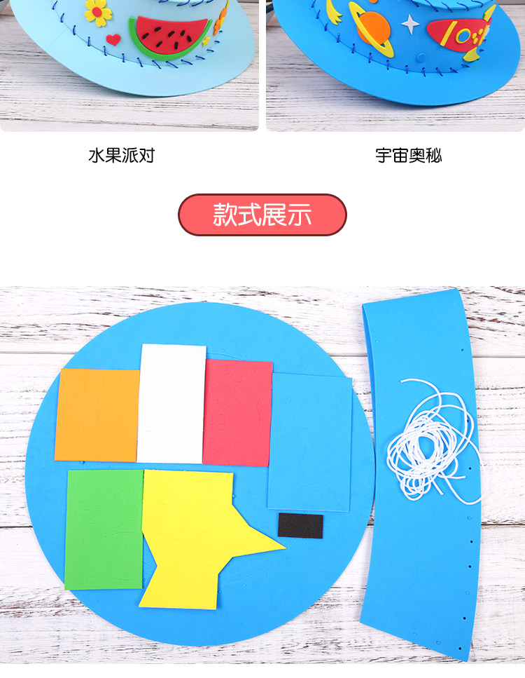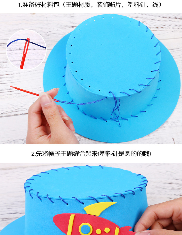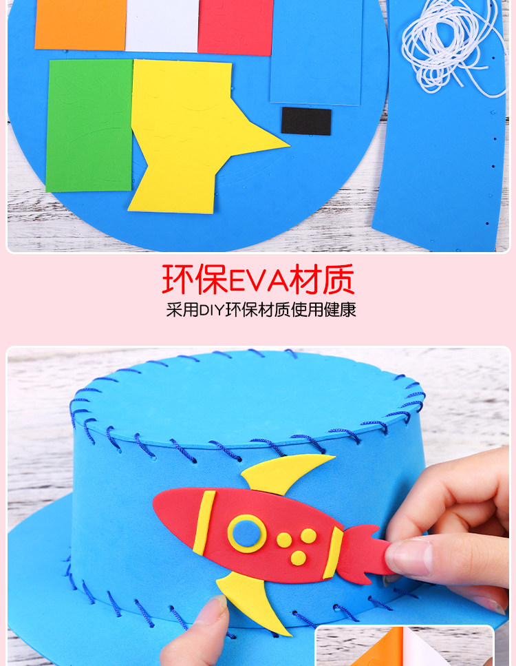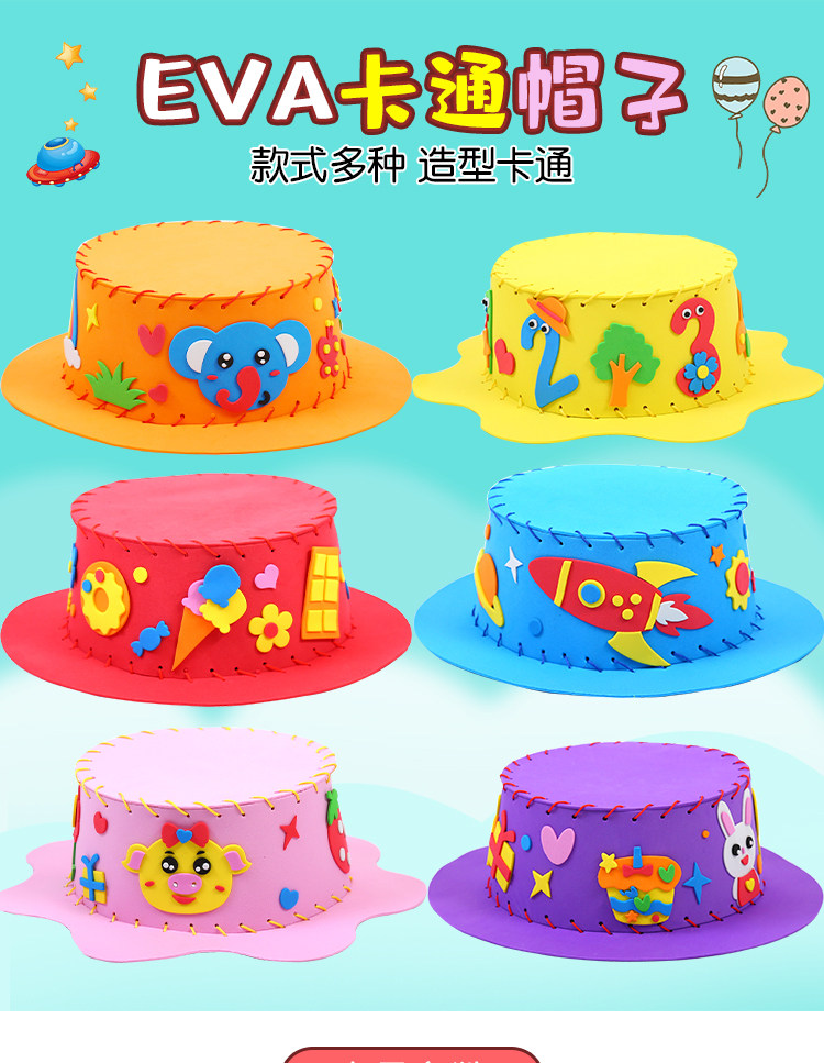 EVA帽子幼儿园手工diy材料包制作立体粘贴画创意缝制儿童益智玩具