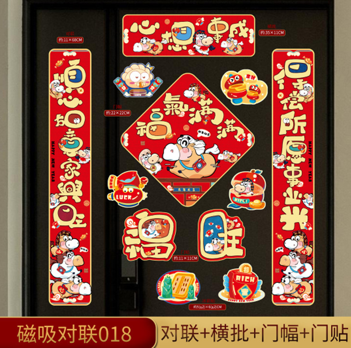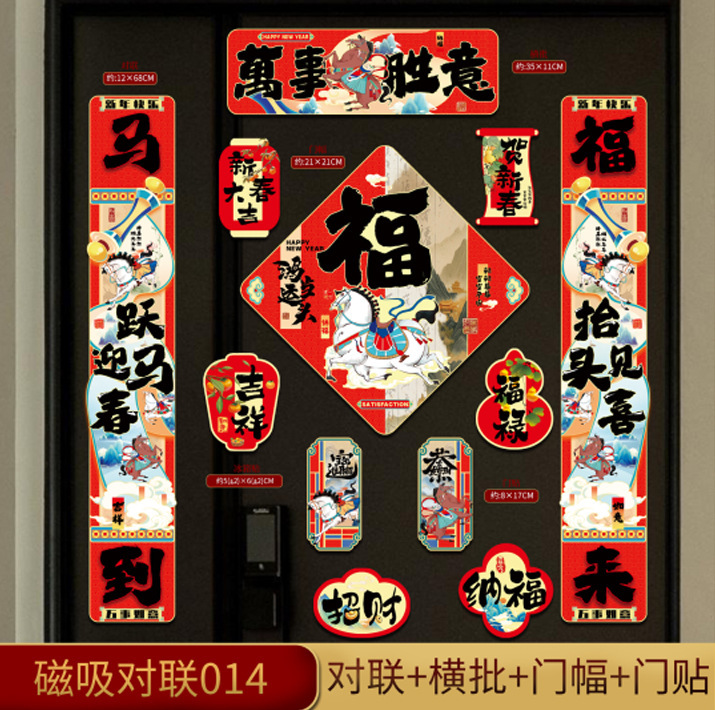 磁吸对联2026马年新年春节福春联入户门铁门乔迁新居便贴礼盒装