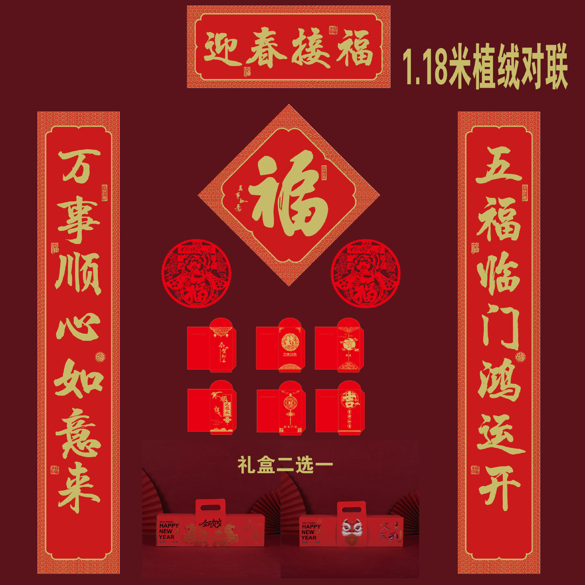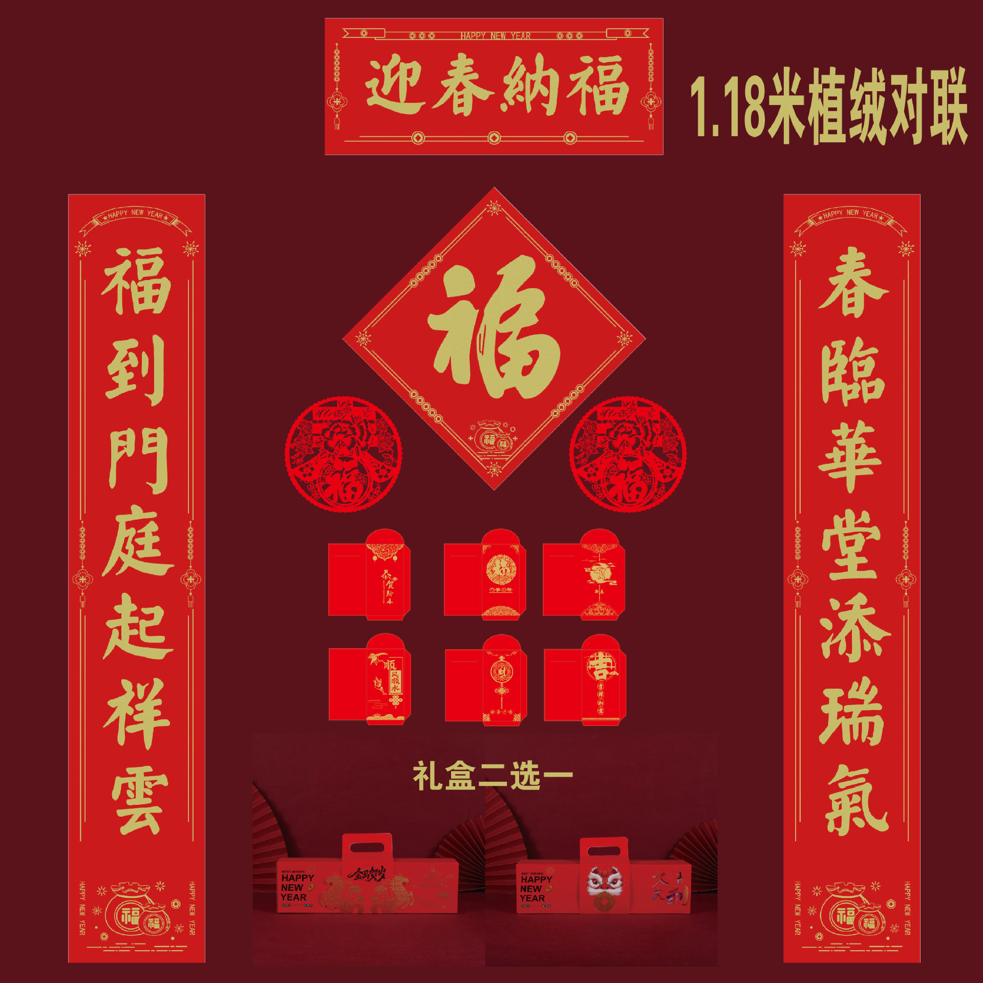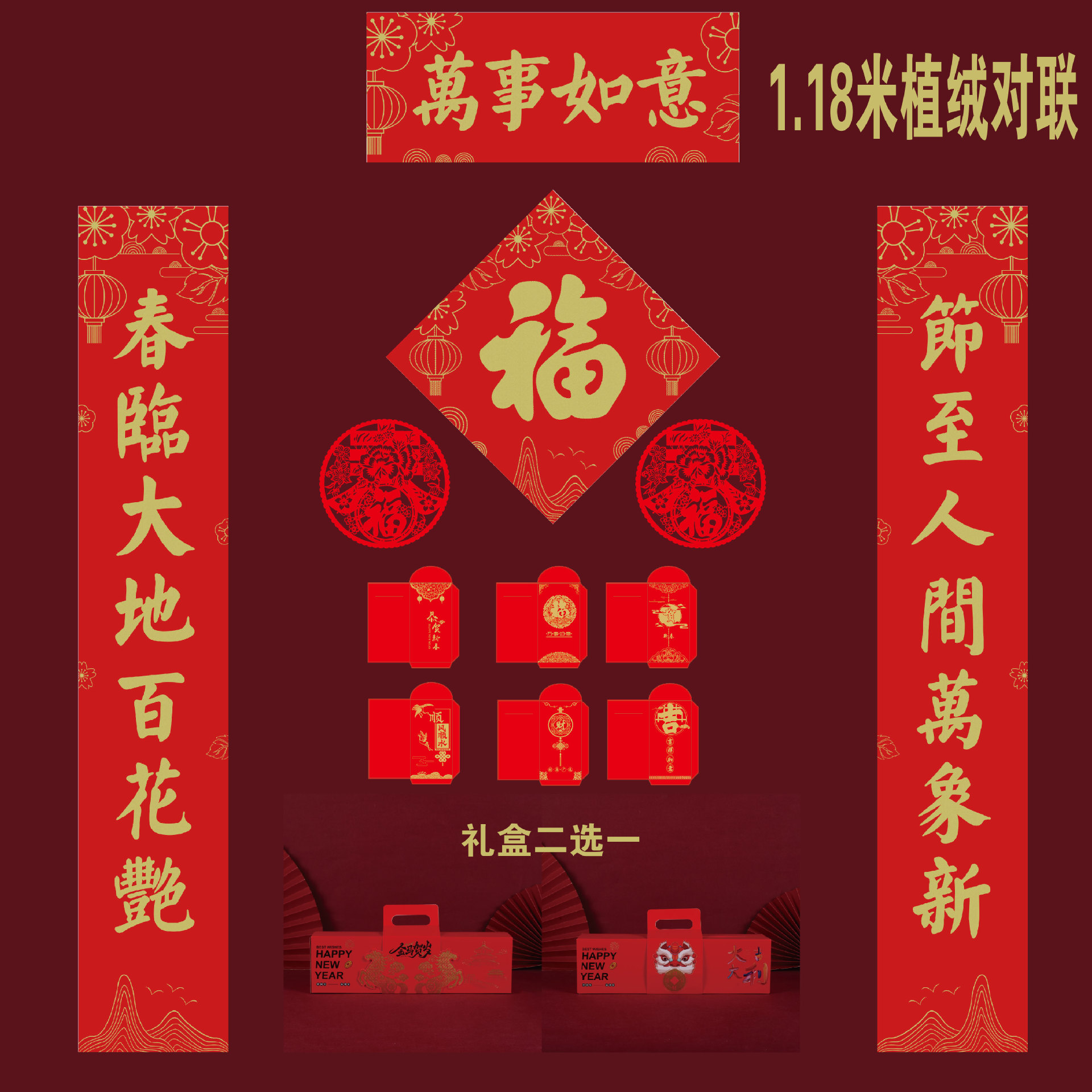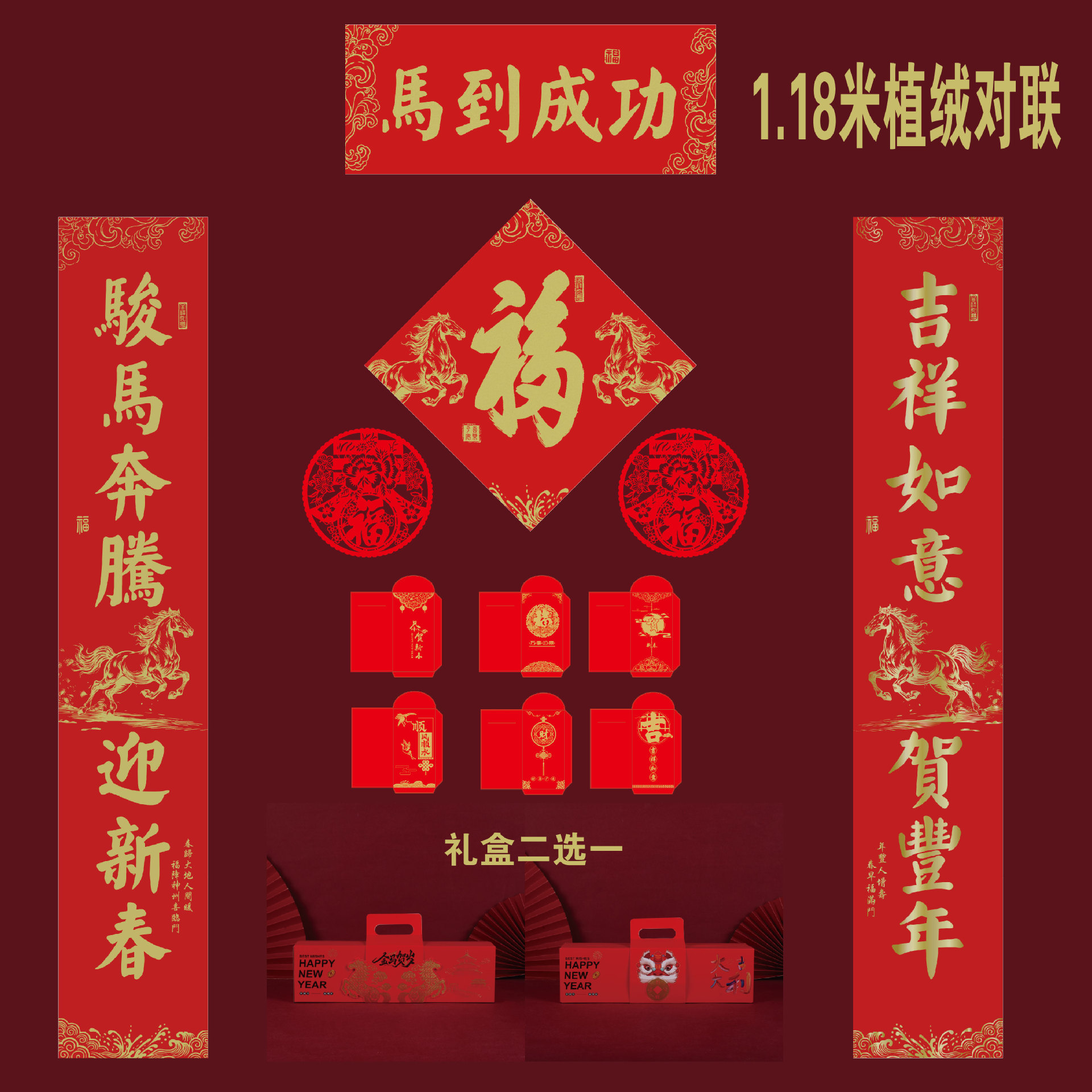 2026马年植绒对联定制春联定做福字大礼包红包礼盒套装批发印logo