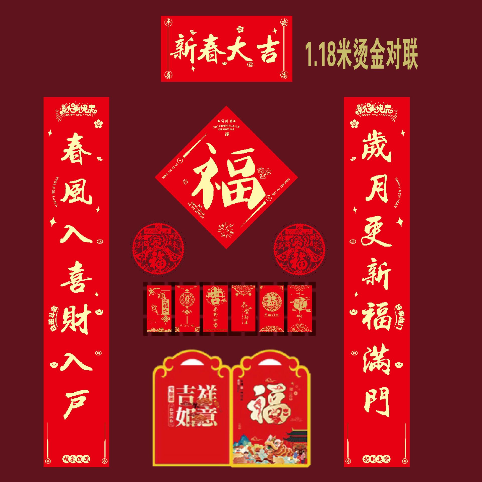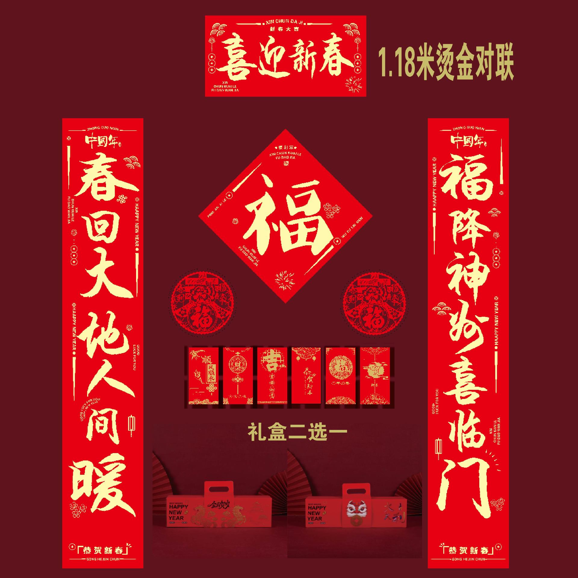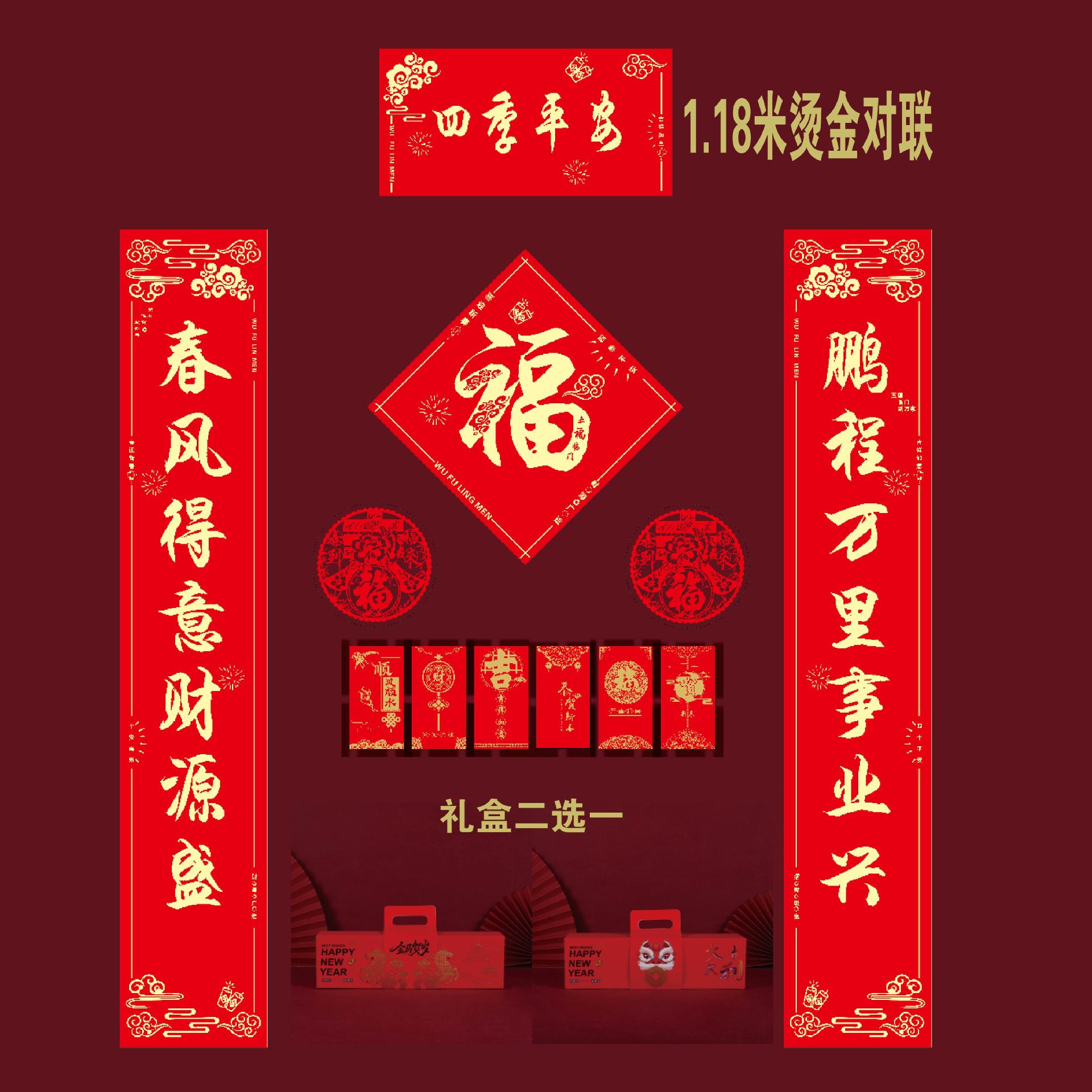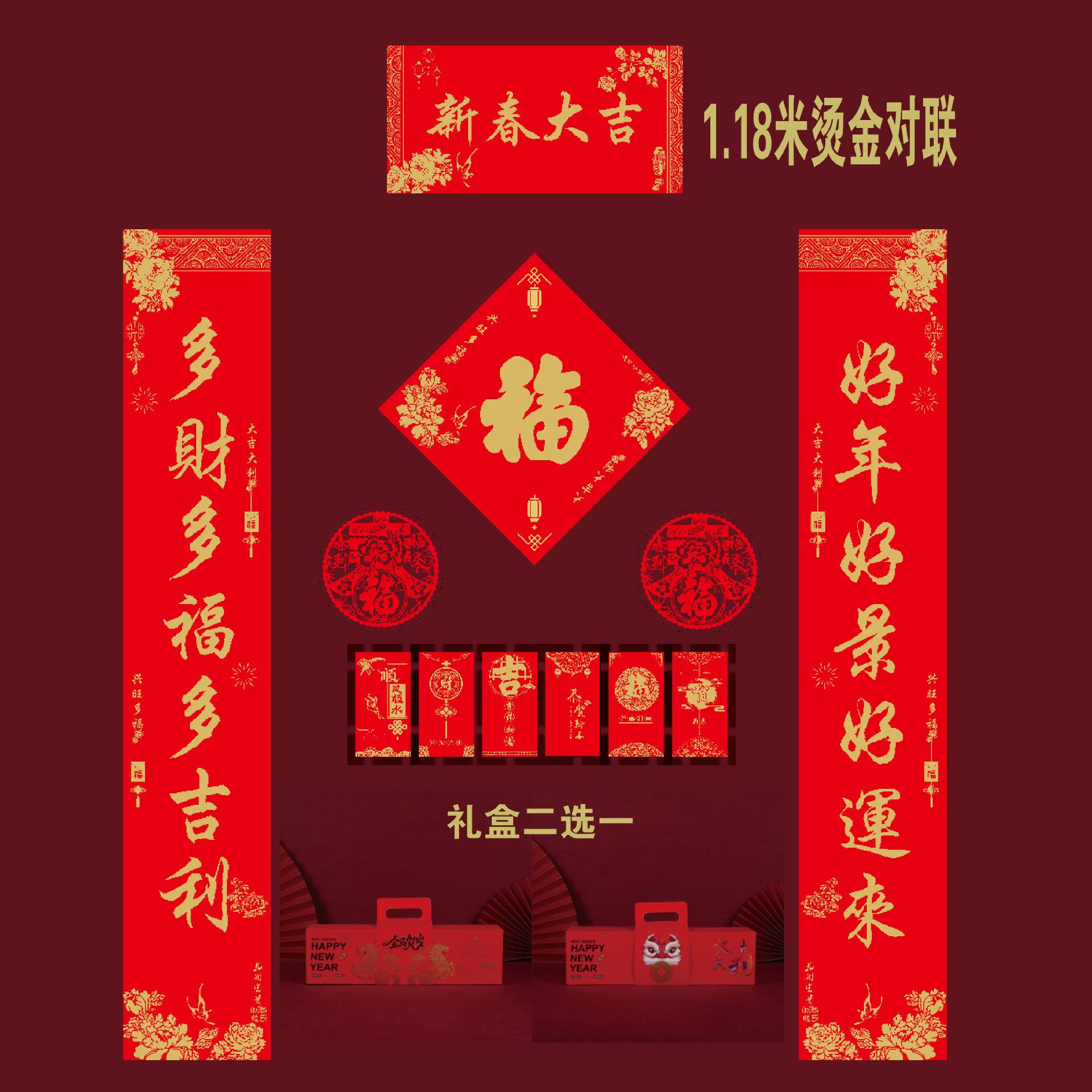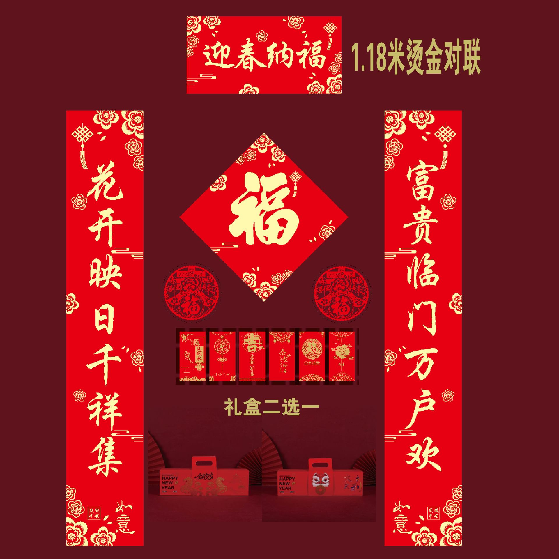 2026马年植绒对联定制春联定做福字大礼包红包礼盒套装批发印logo