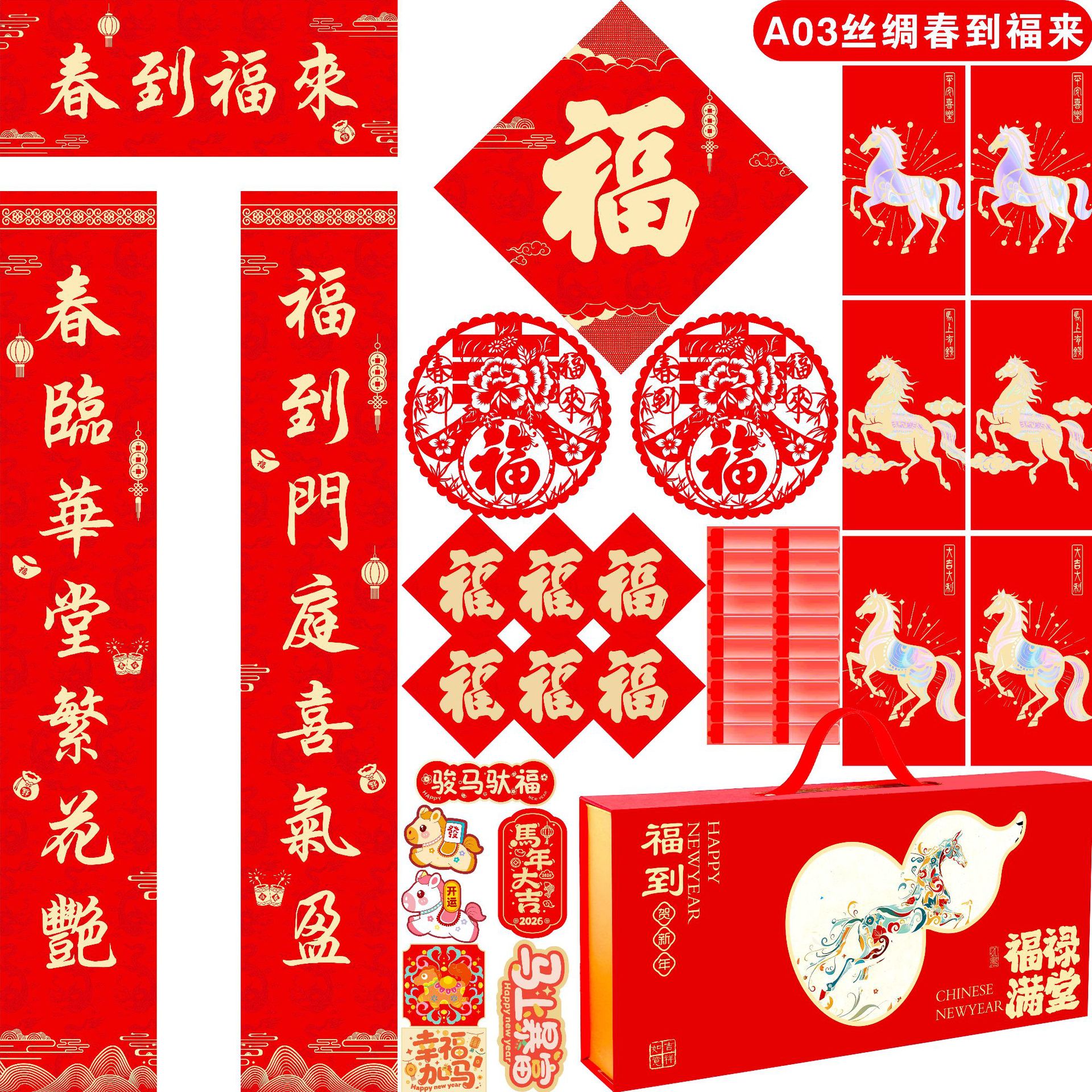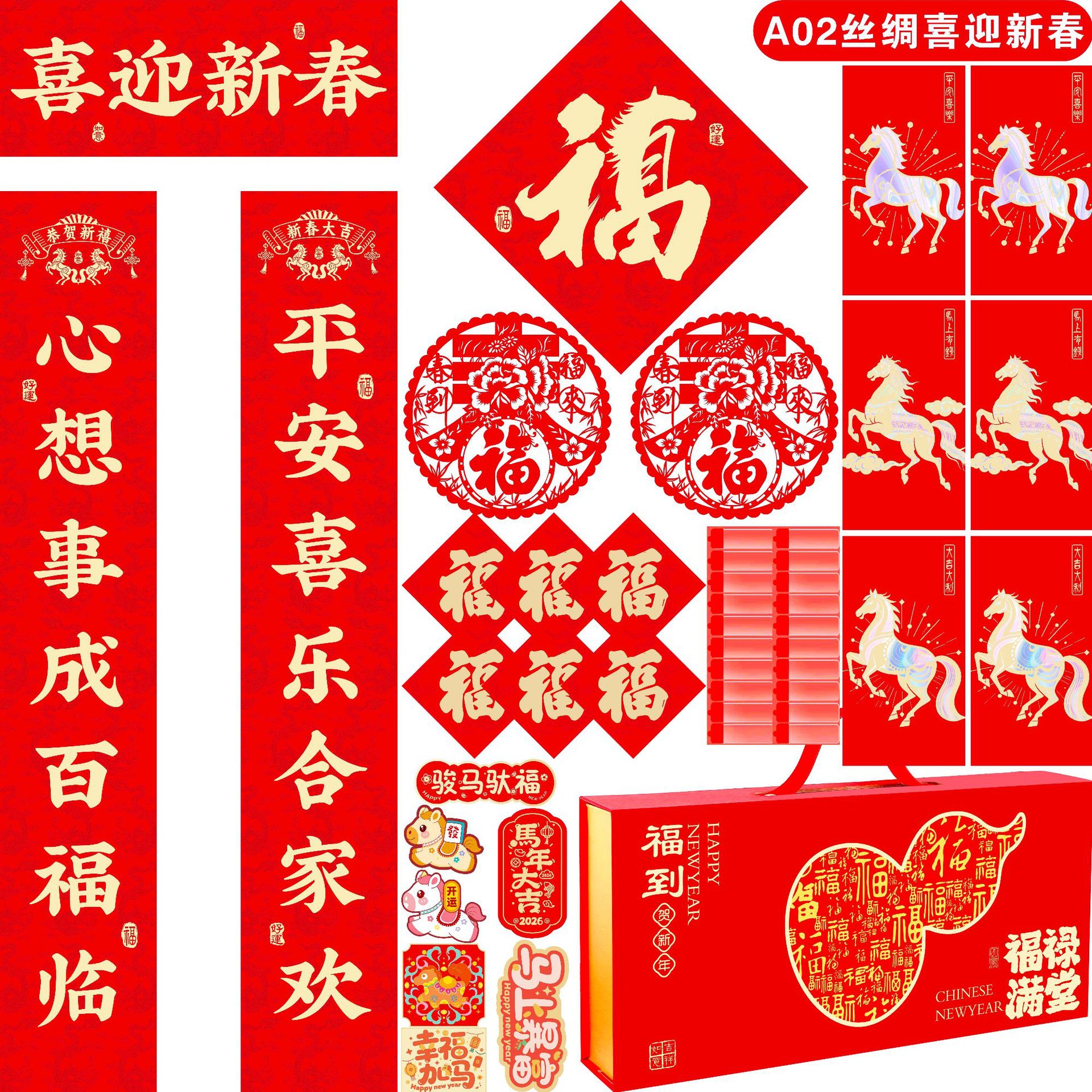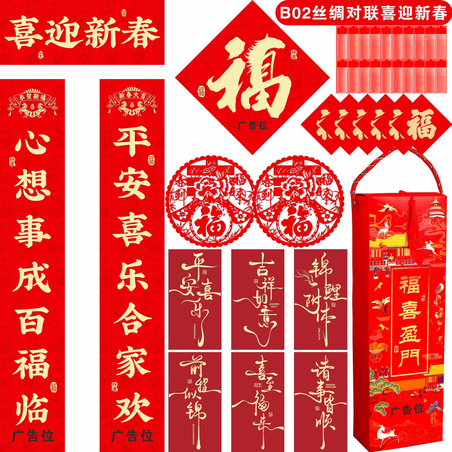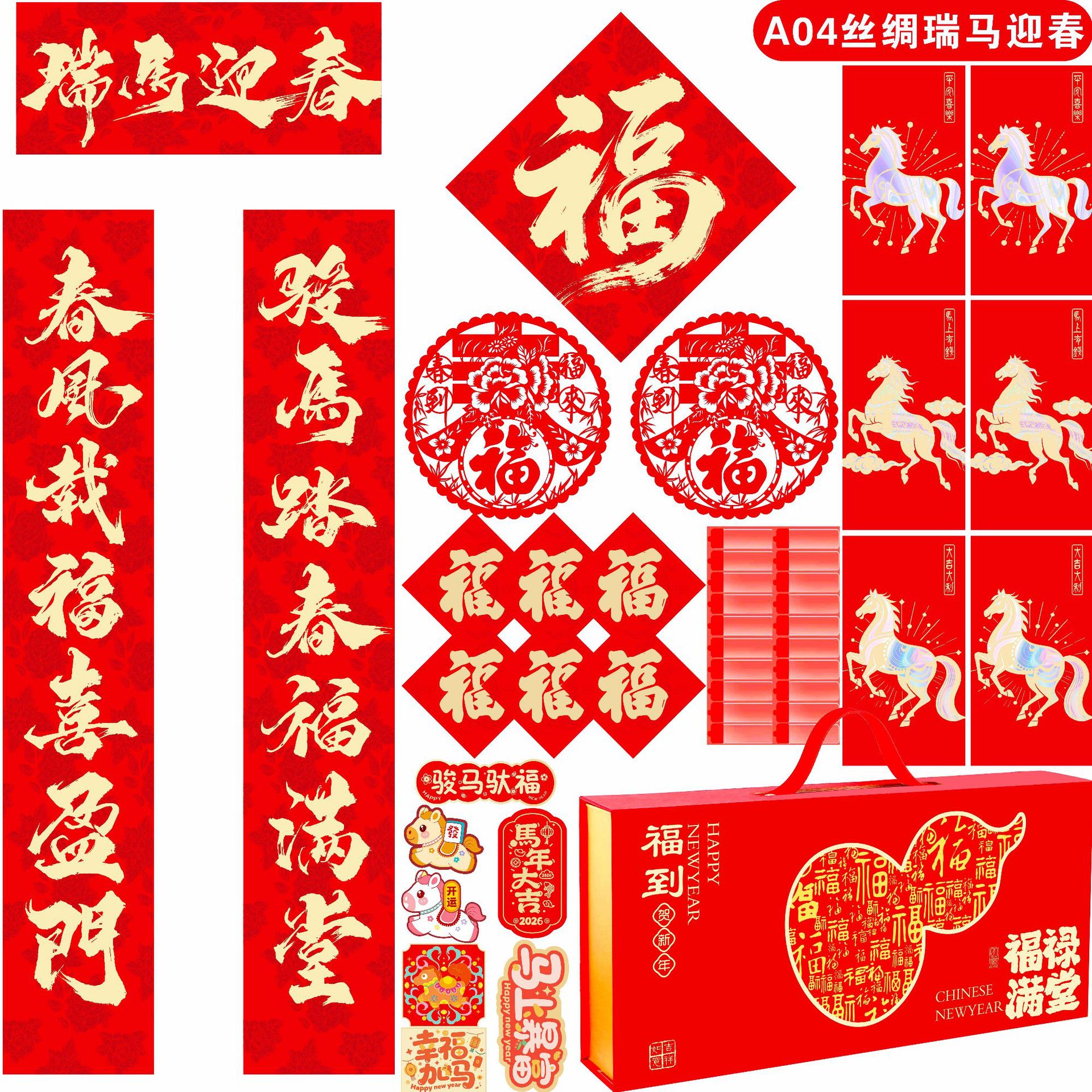 2026新年对联定制丝绸春联红包礼盒套装创意礼品马年对联春联批发