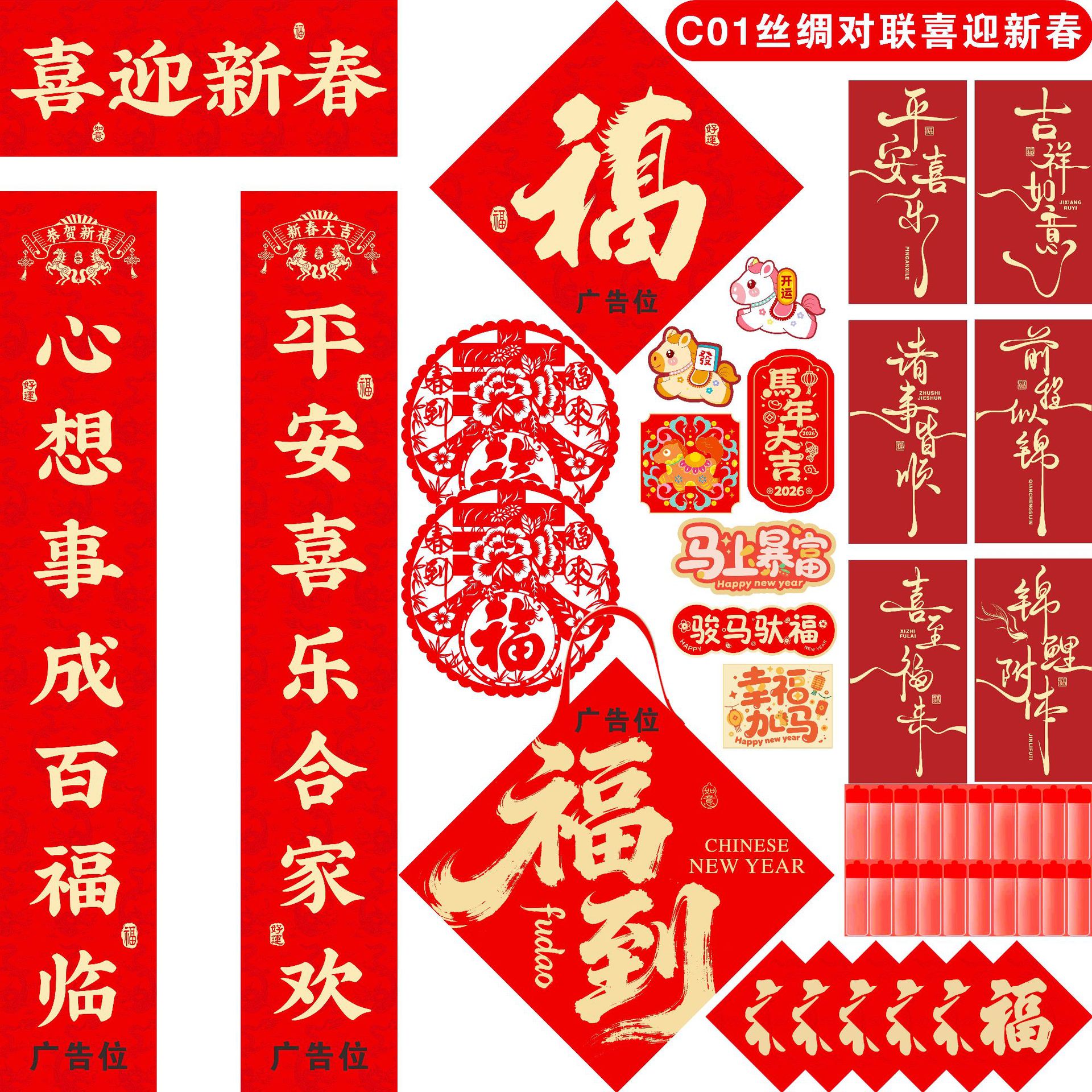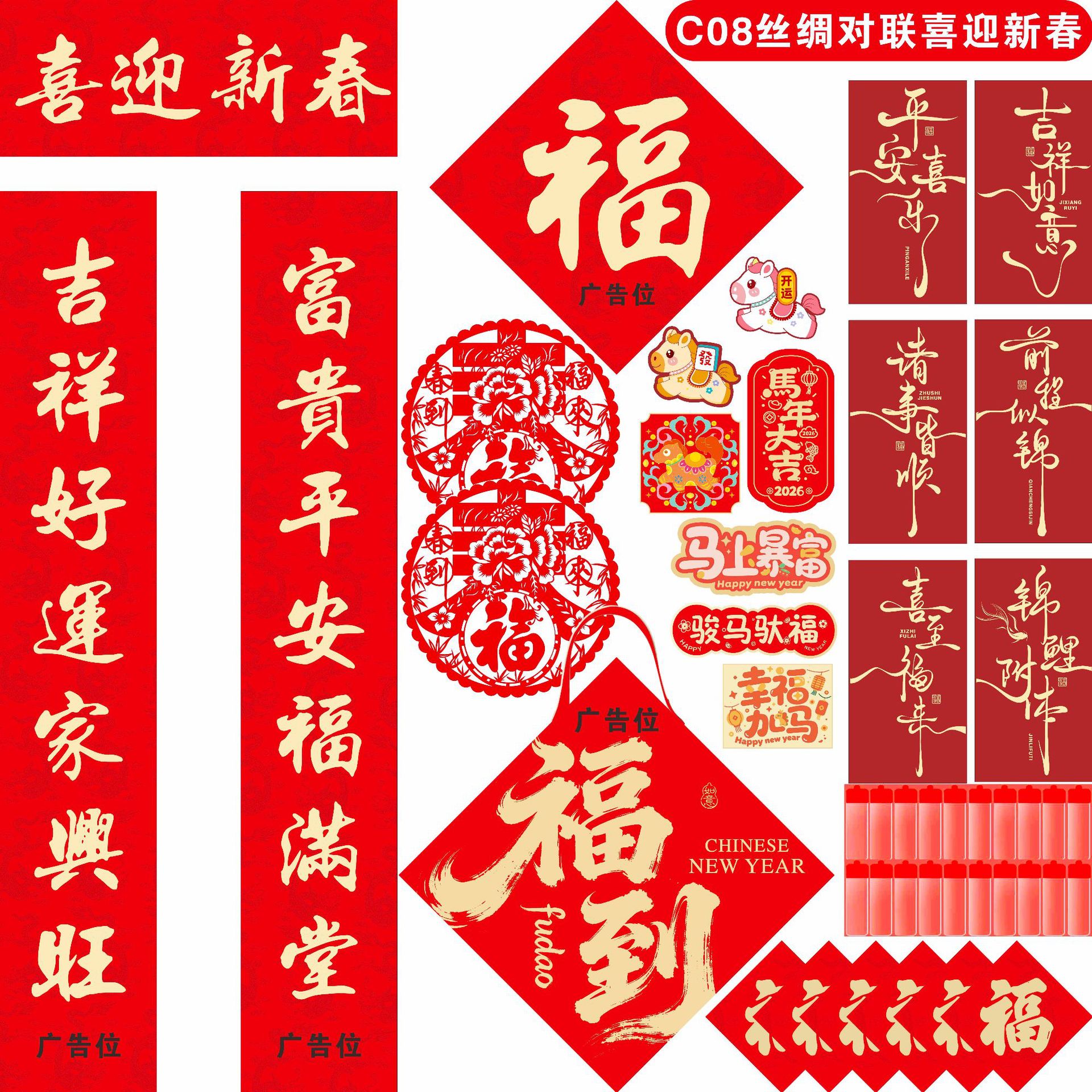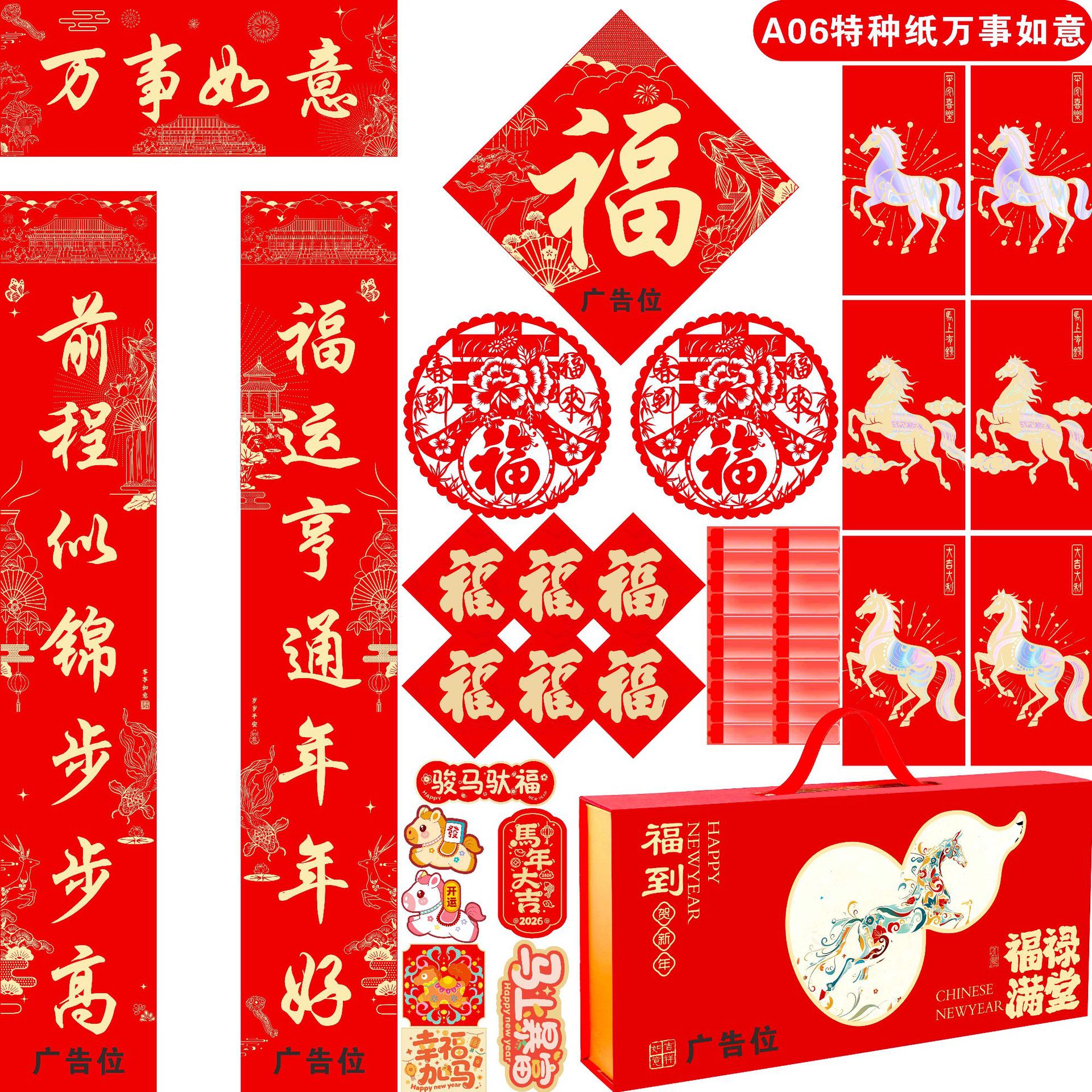 2026新年对联定制丝绸春联红包礼盒套装创意礼品马年对联春联批发