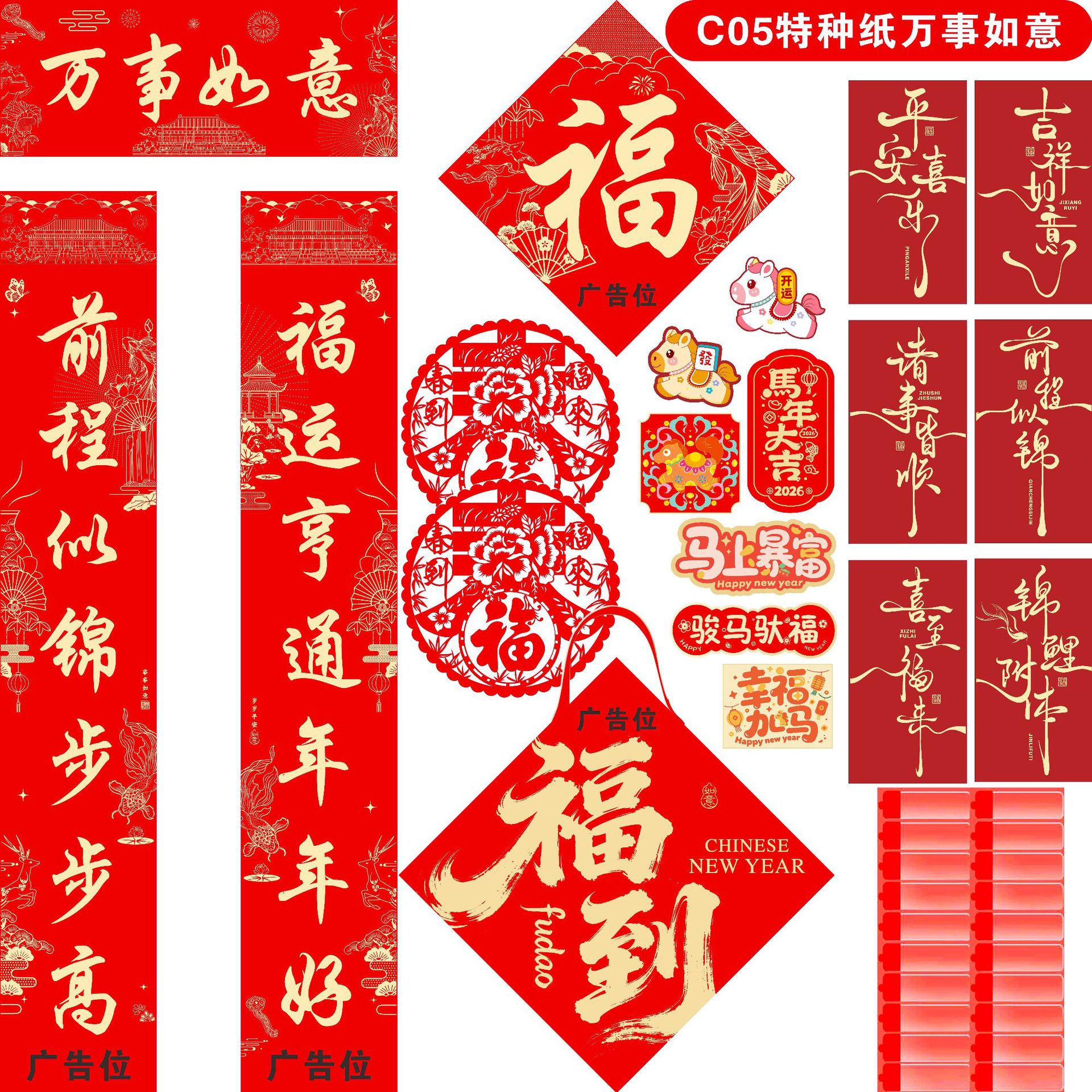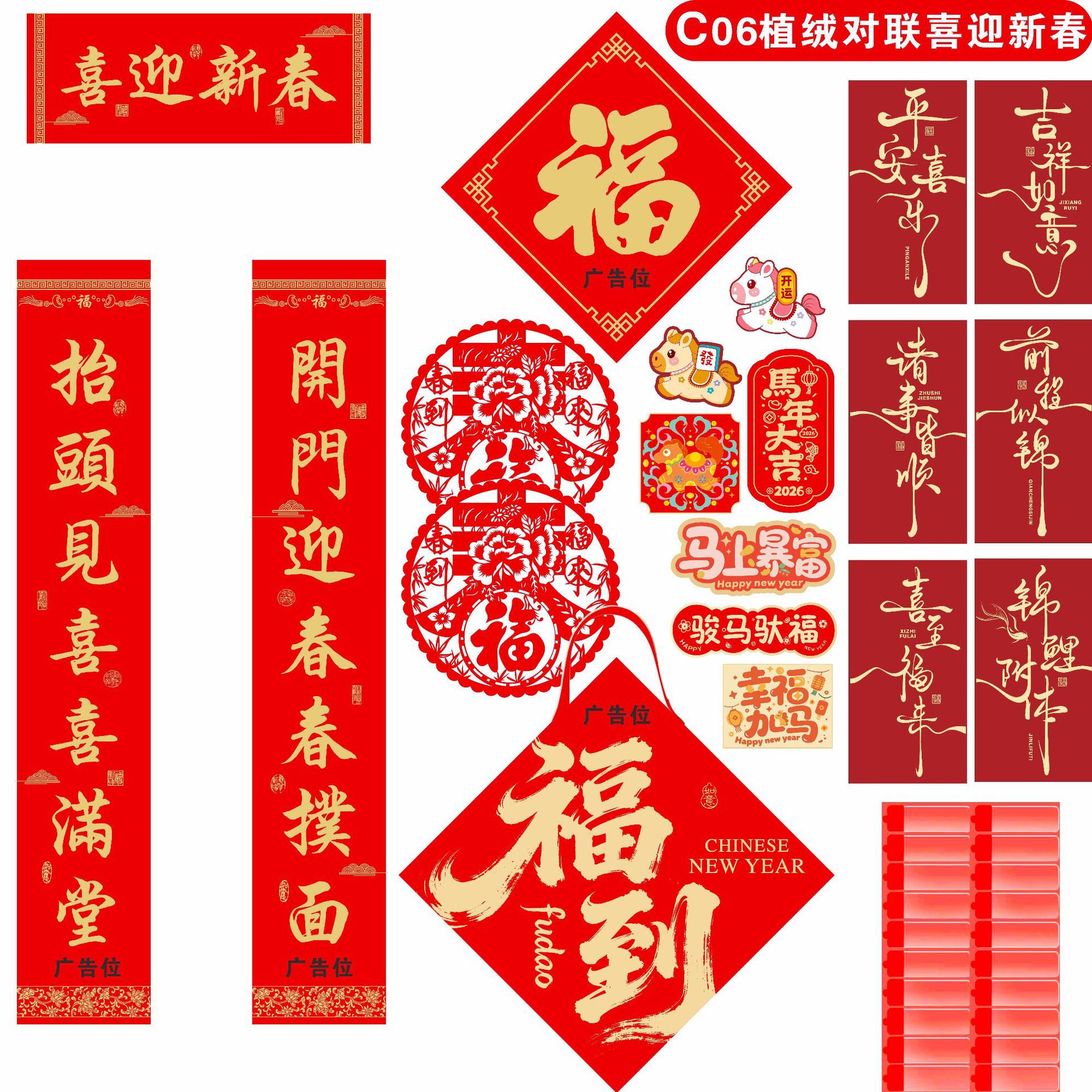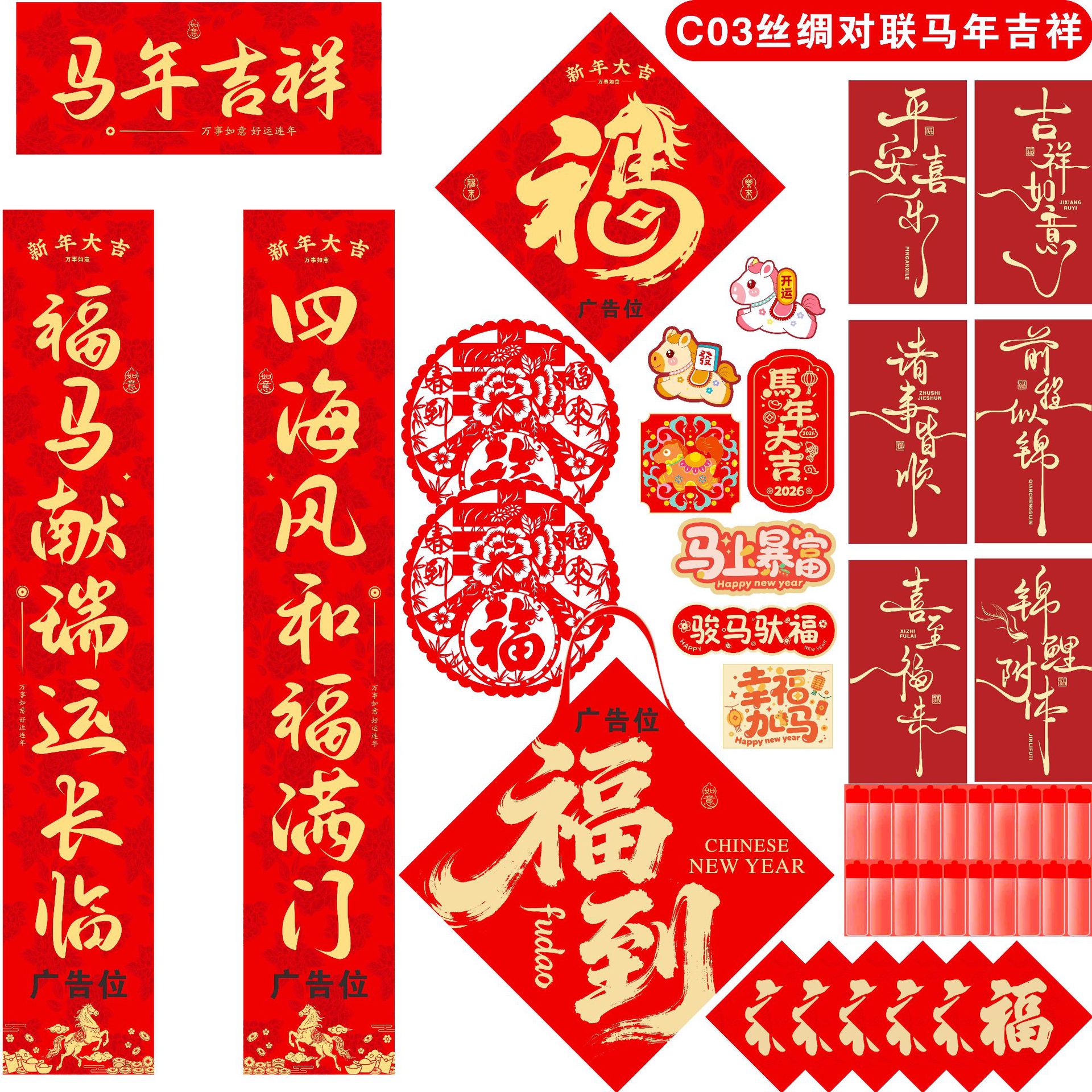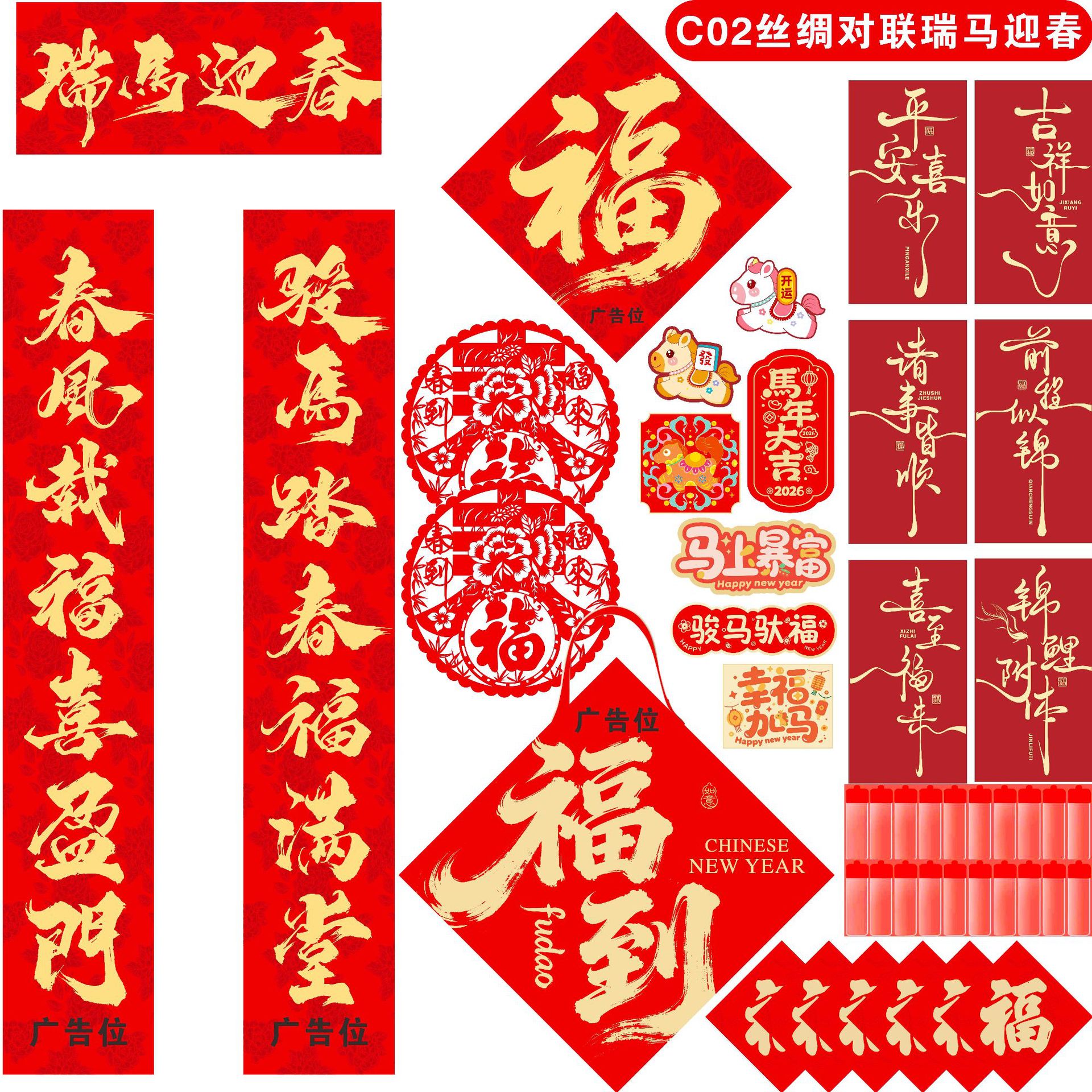 2026新年对联定制丝绸春联红包礼盒套装创意礼品马年对联春联批发