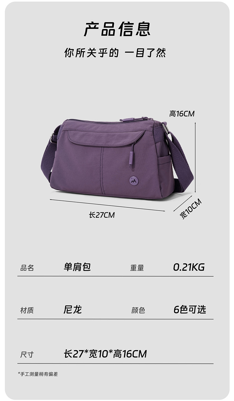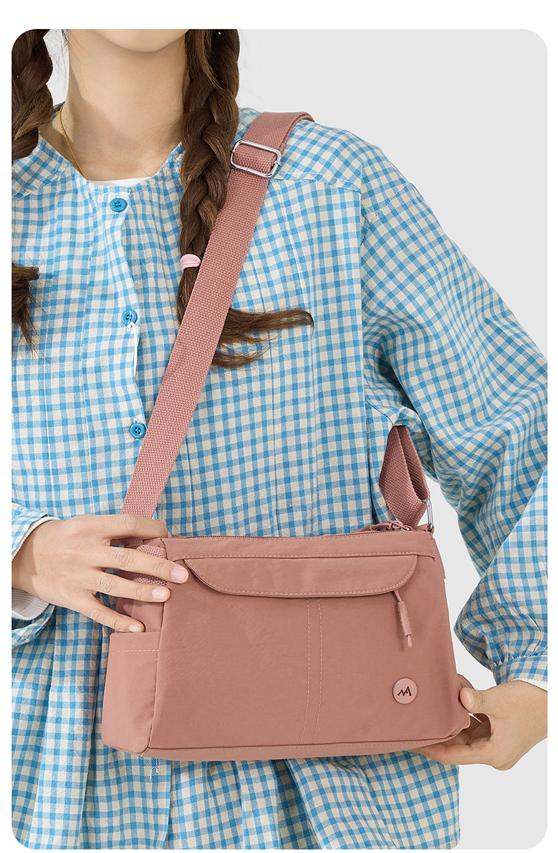 休闲时尚女新款纯色简约百搭单肩包大容量防泼水通勤包轻便斜挎包