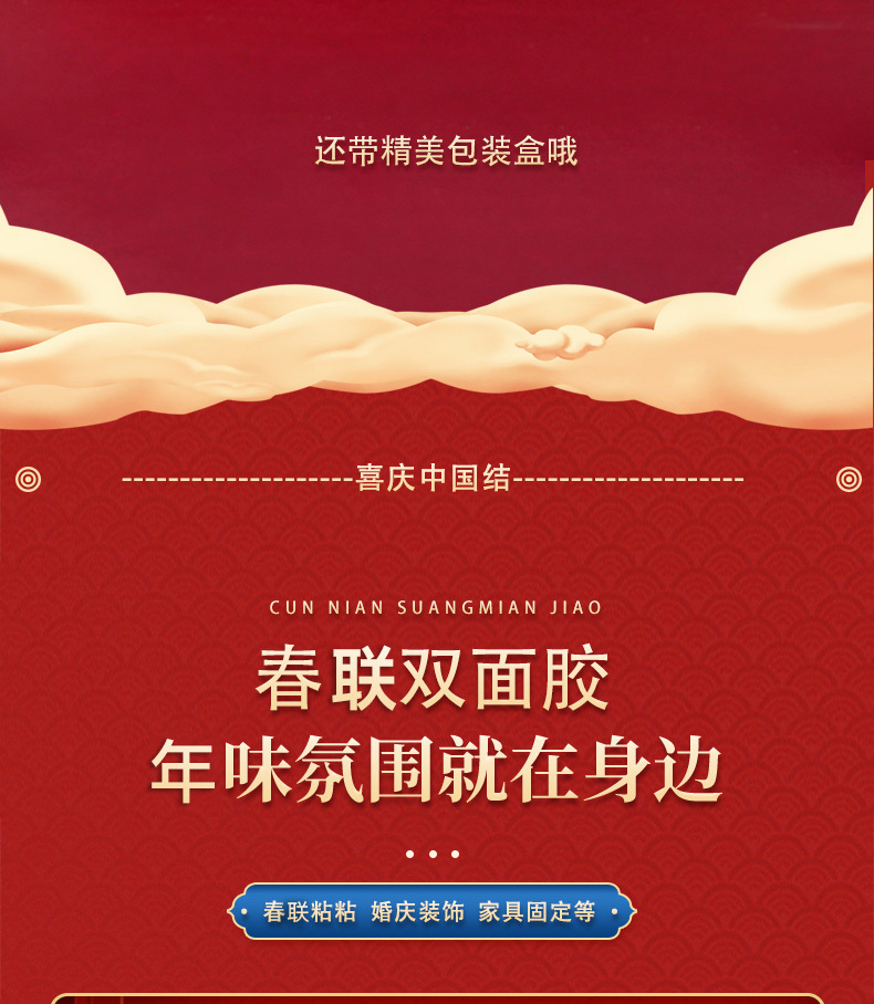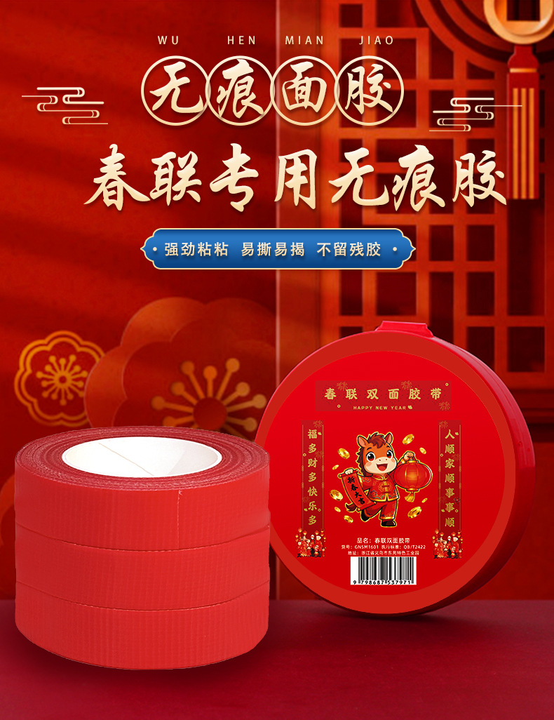 2026马年春联双面胶网红同款不残留布基网格高粘福字对联专用胶带
