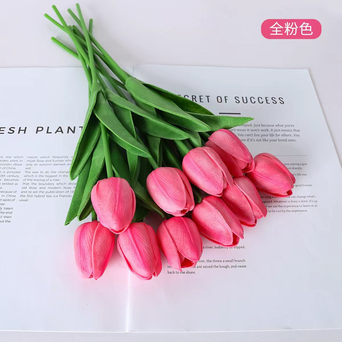仿真PU迷你郁金香仿真假花卉跨境婚庆花束家居手感保湿郁金香批发