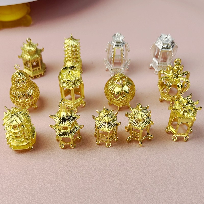 宫灯配件饰品合金立体兔子金鱼葫芦花篮镂空灯笼黄鹤楼亭子