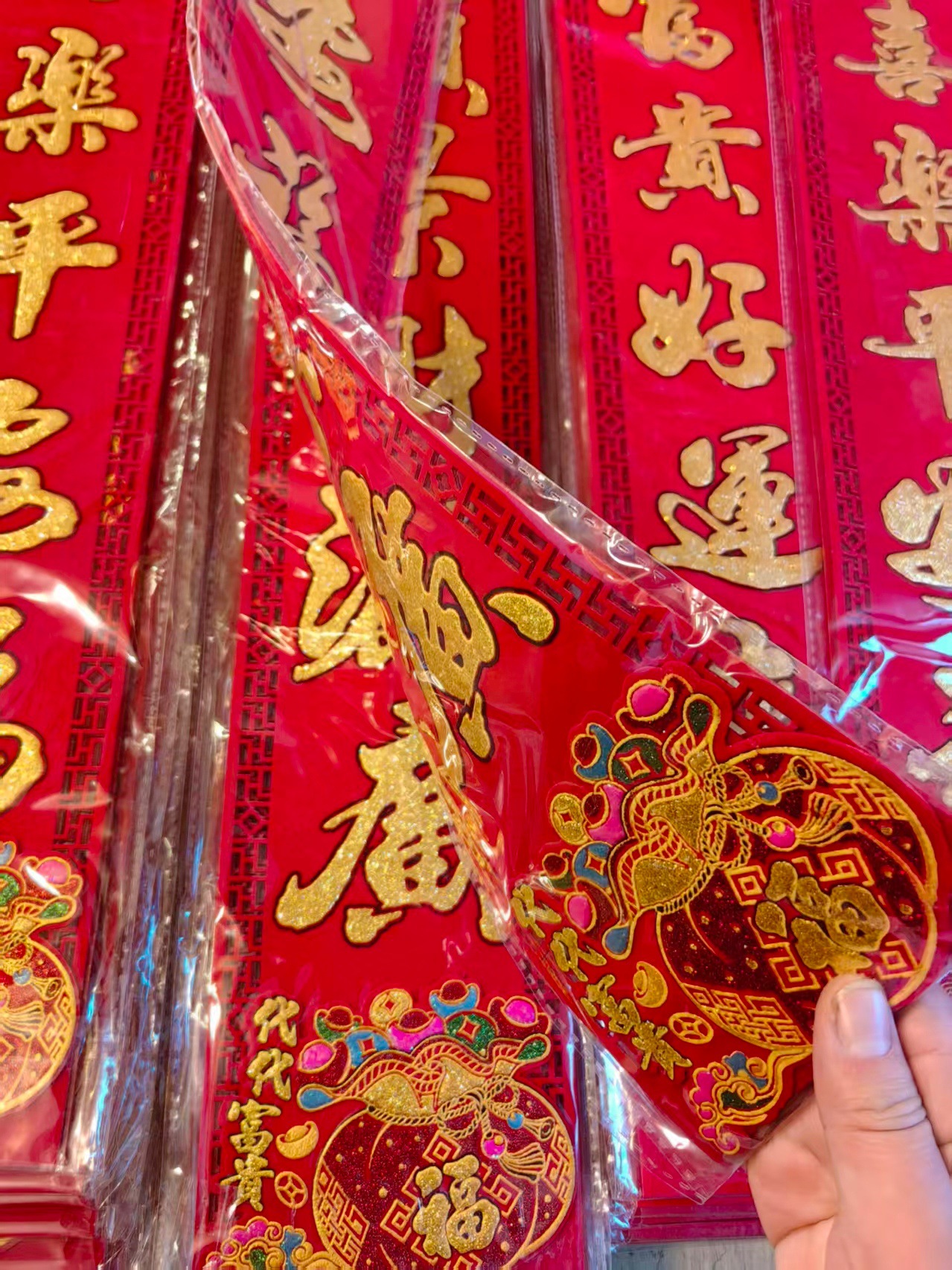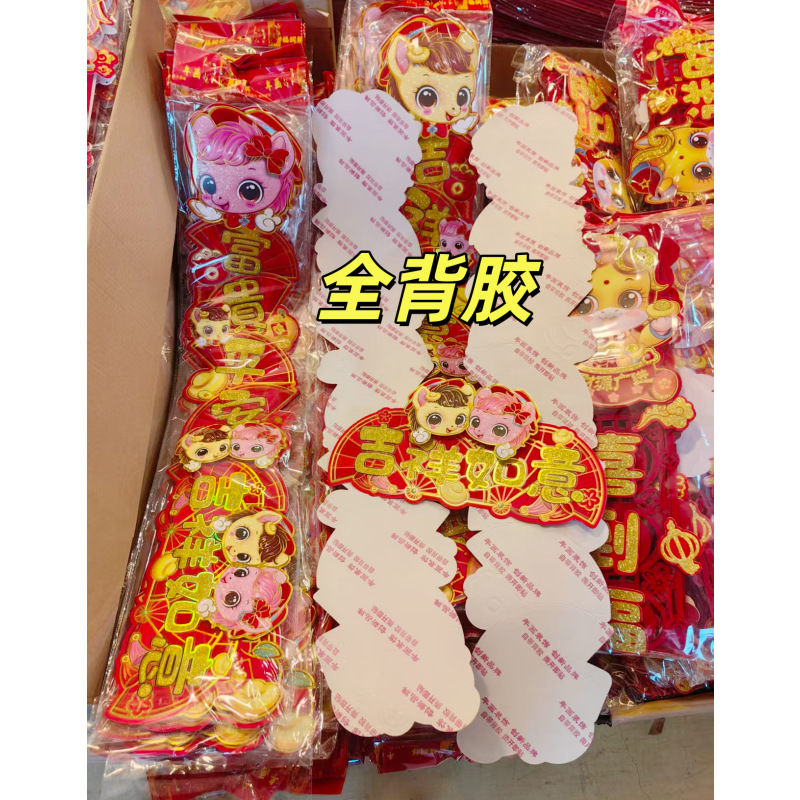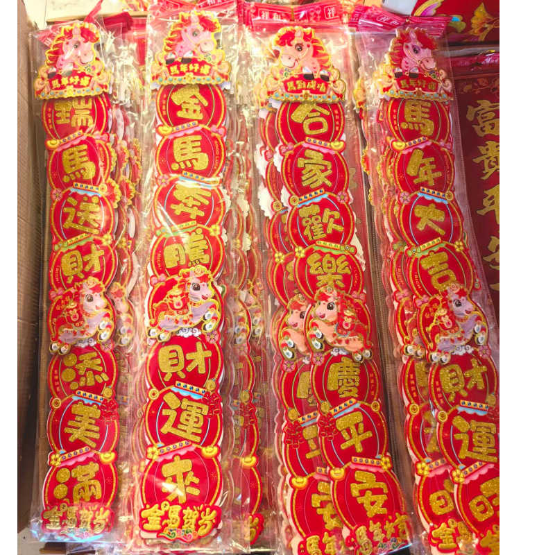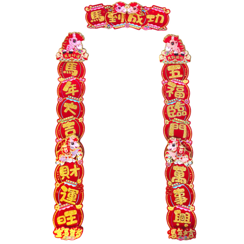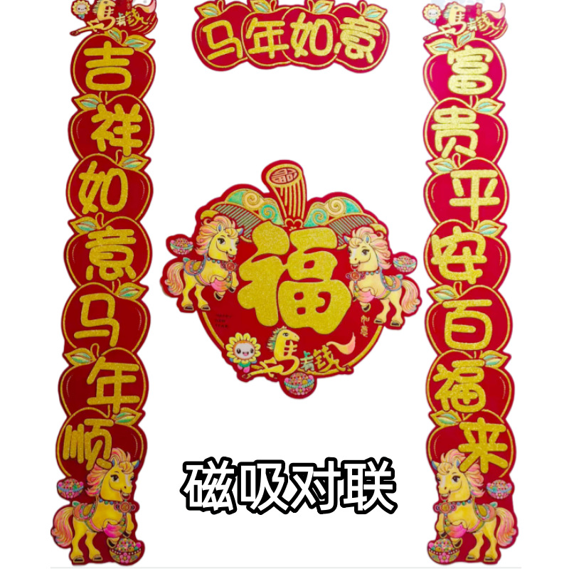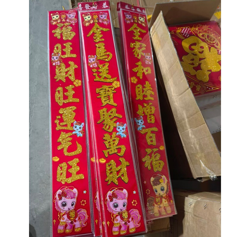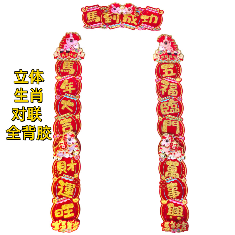 2026马年春节植绒金粉立体生肖背胶对联纸板金字植绒春联楼房对联
