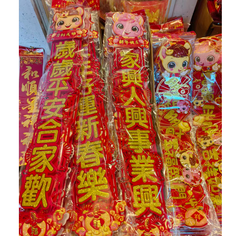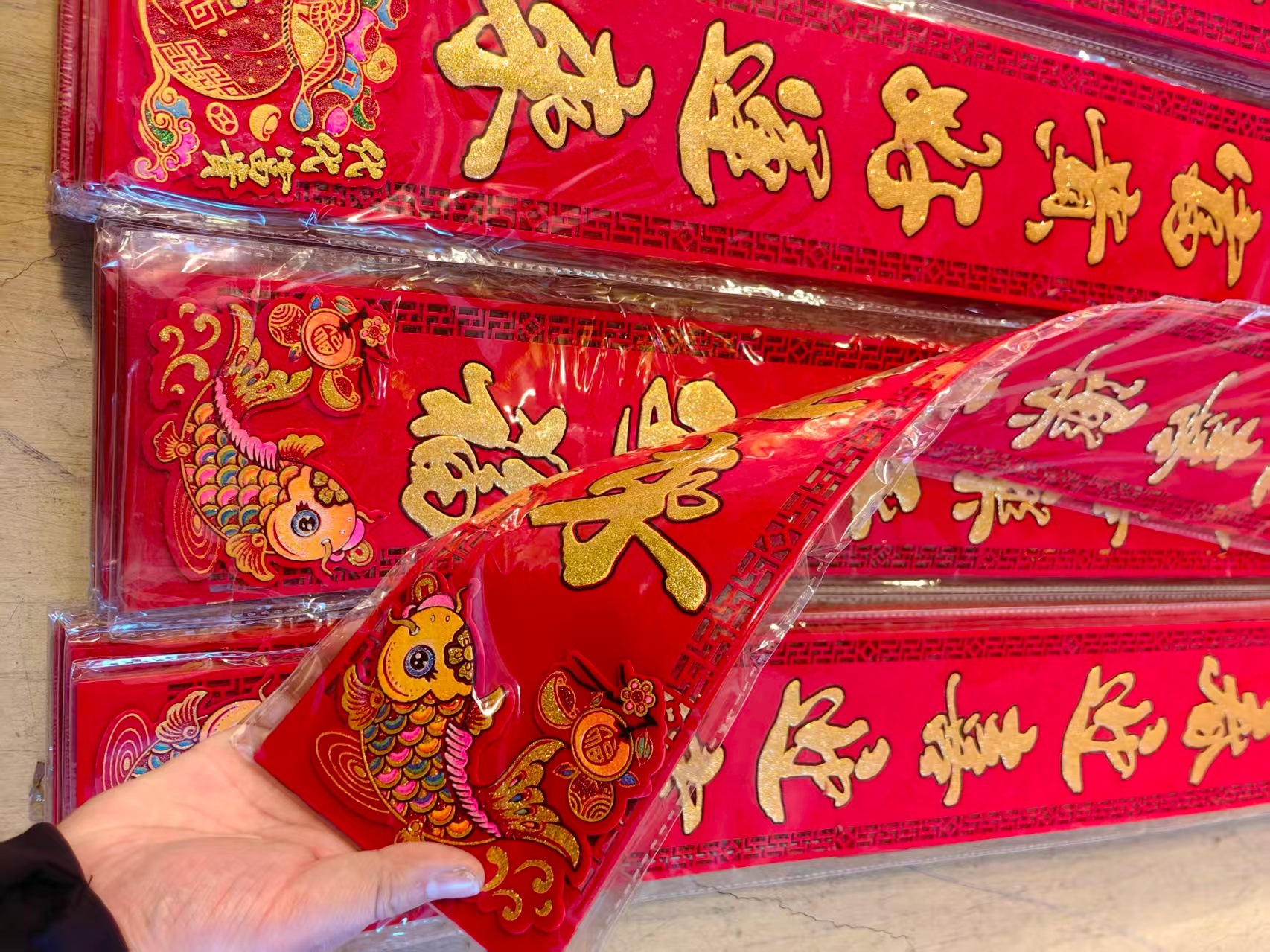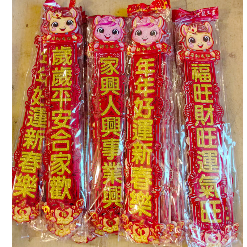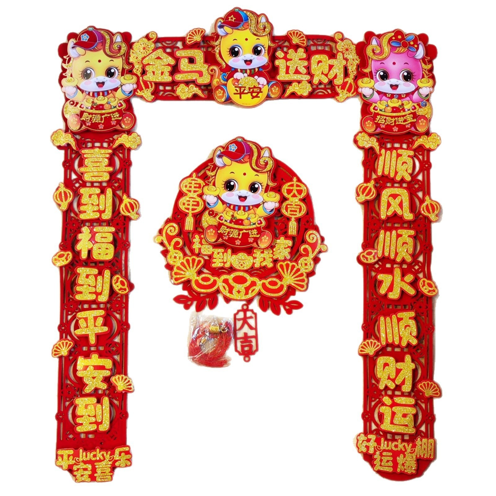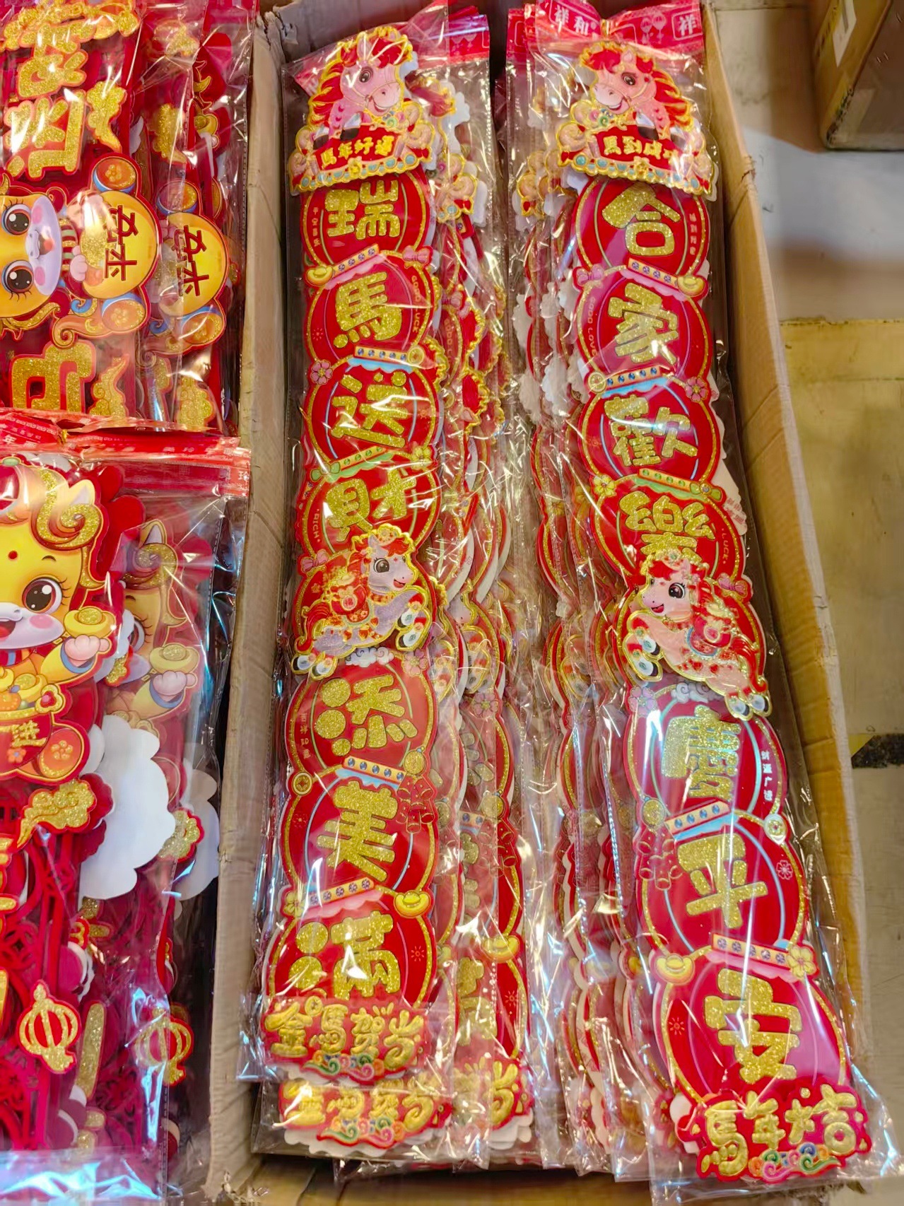 2026马年春节植绒金粉立体生肖背胶对联纸板金字植绒春联楼房对联
