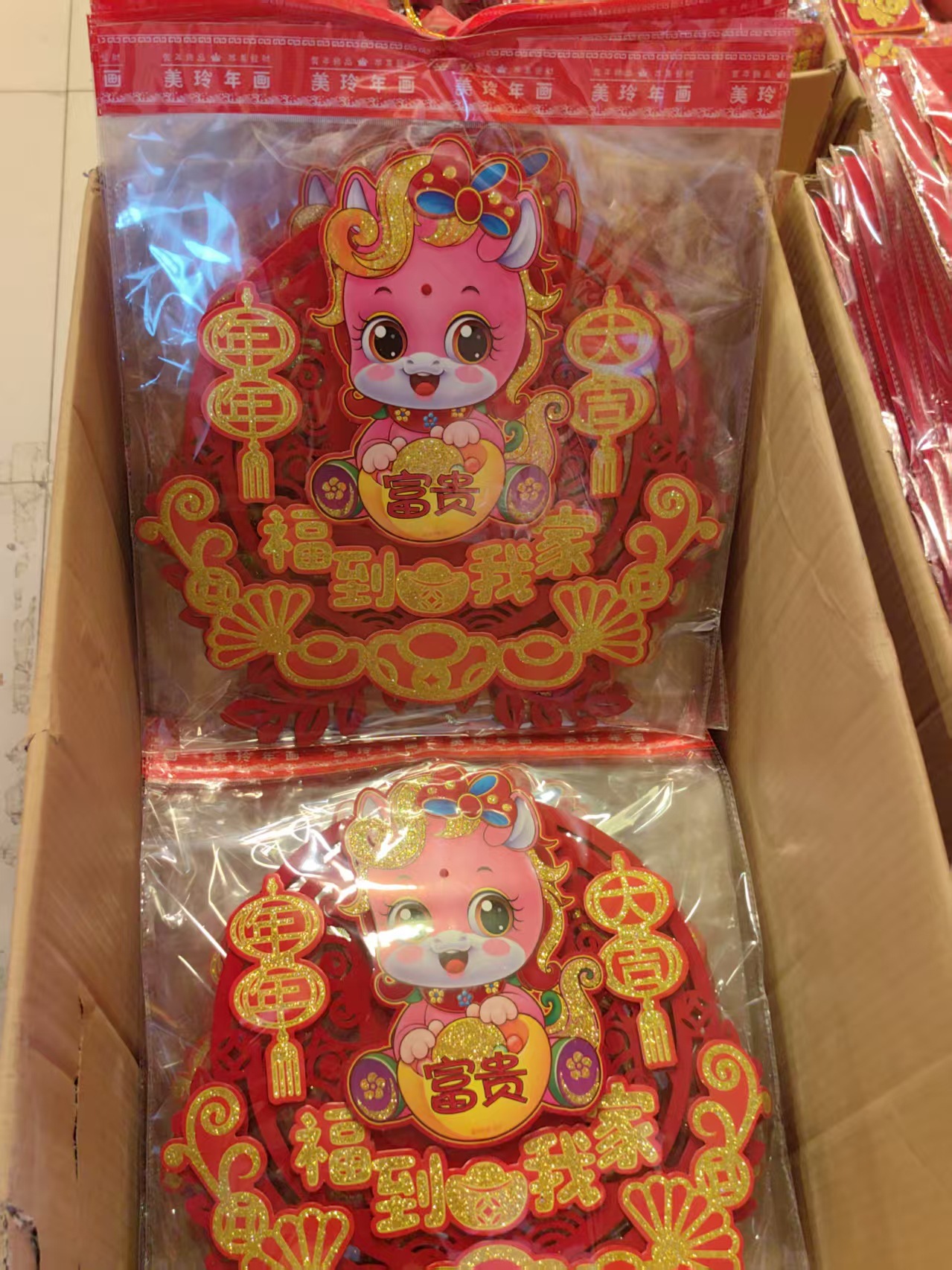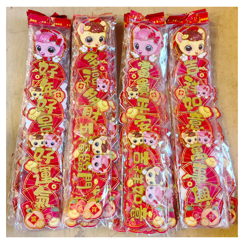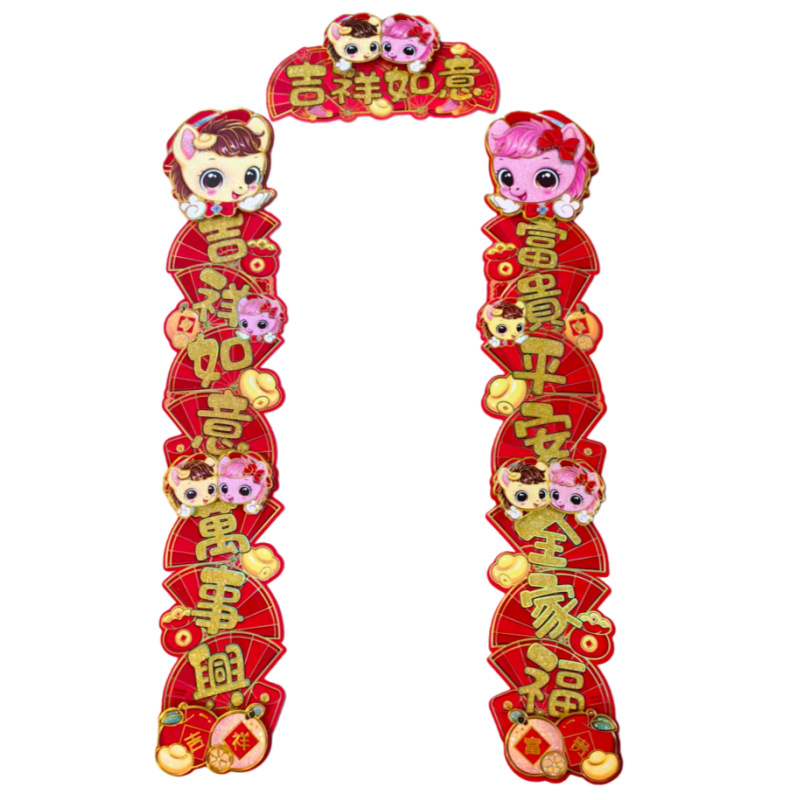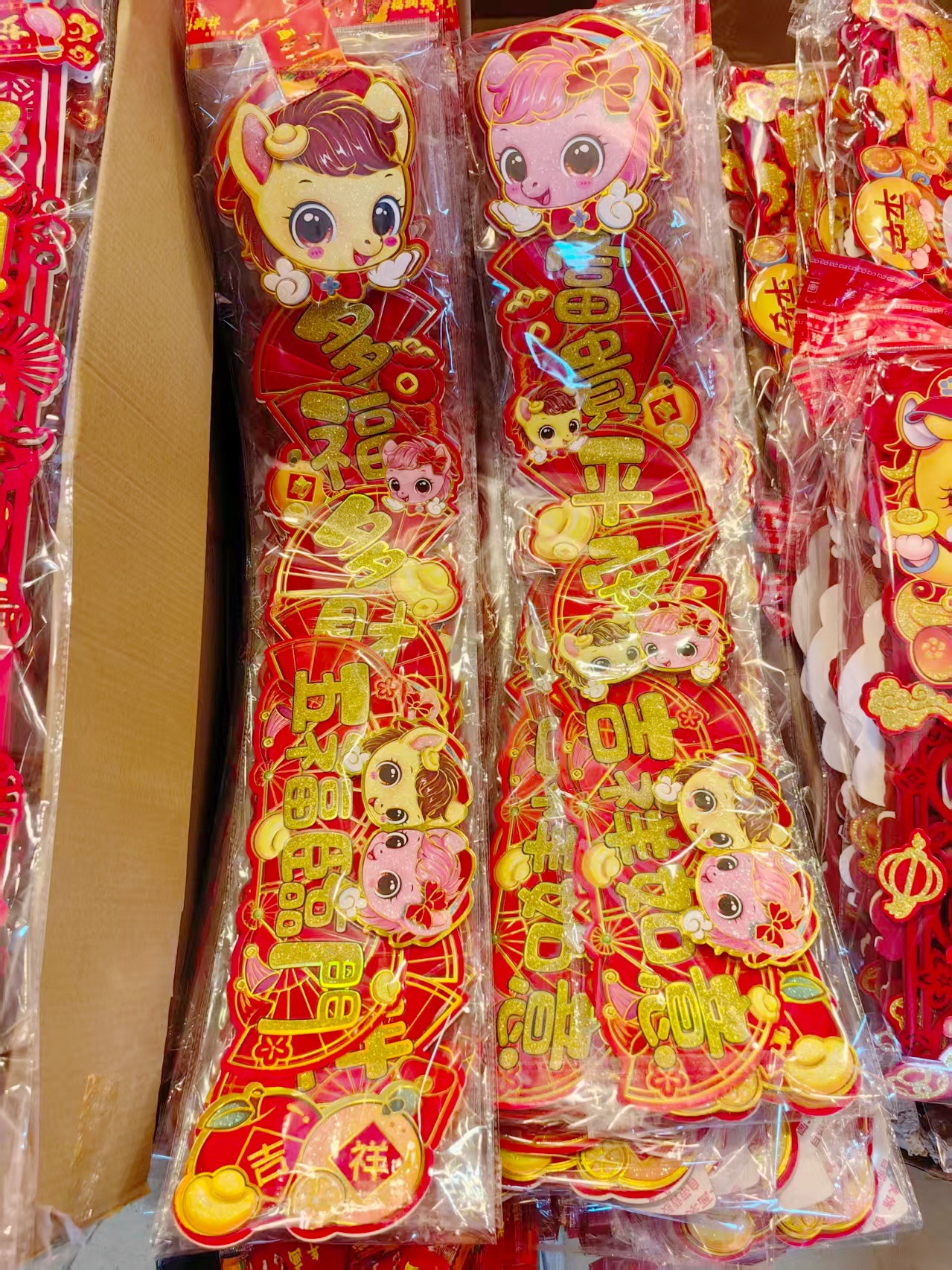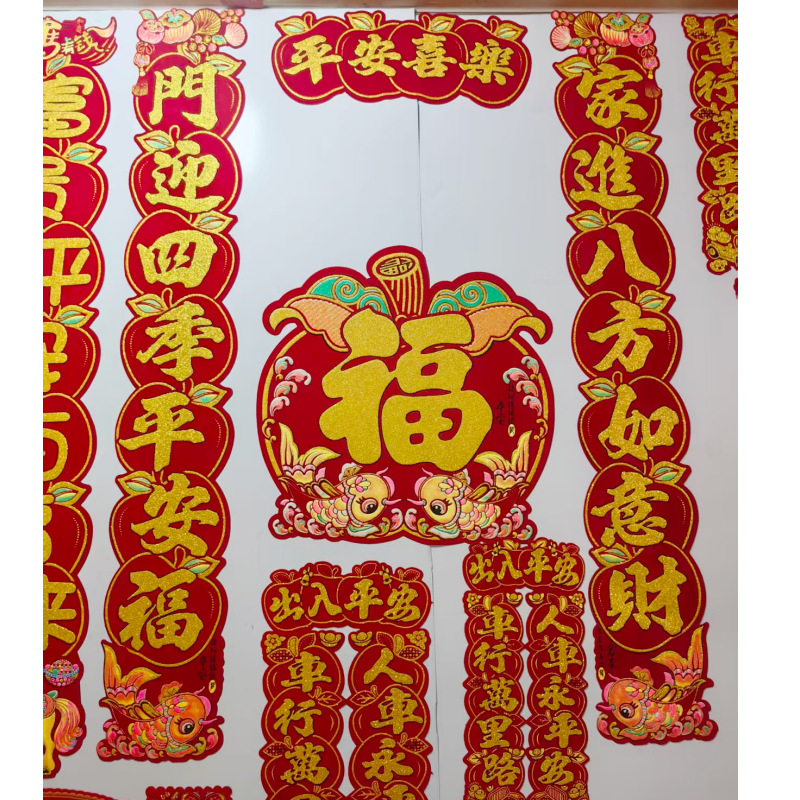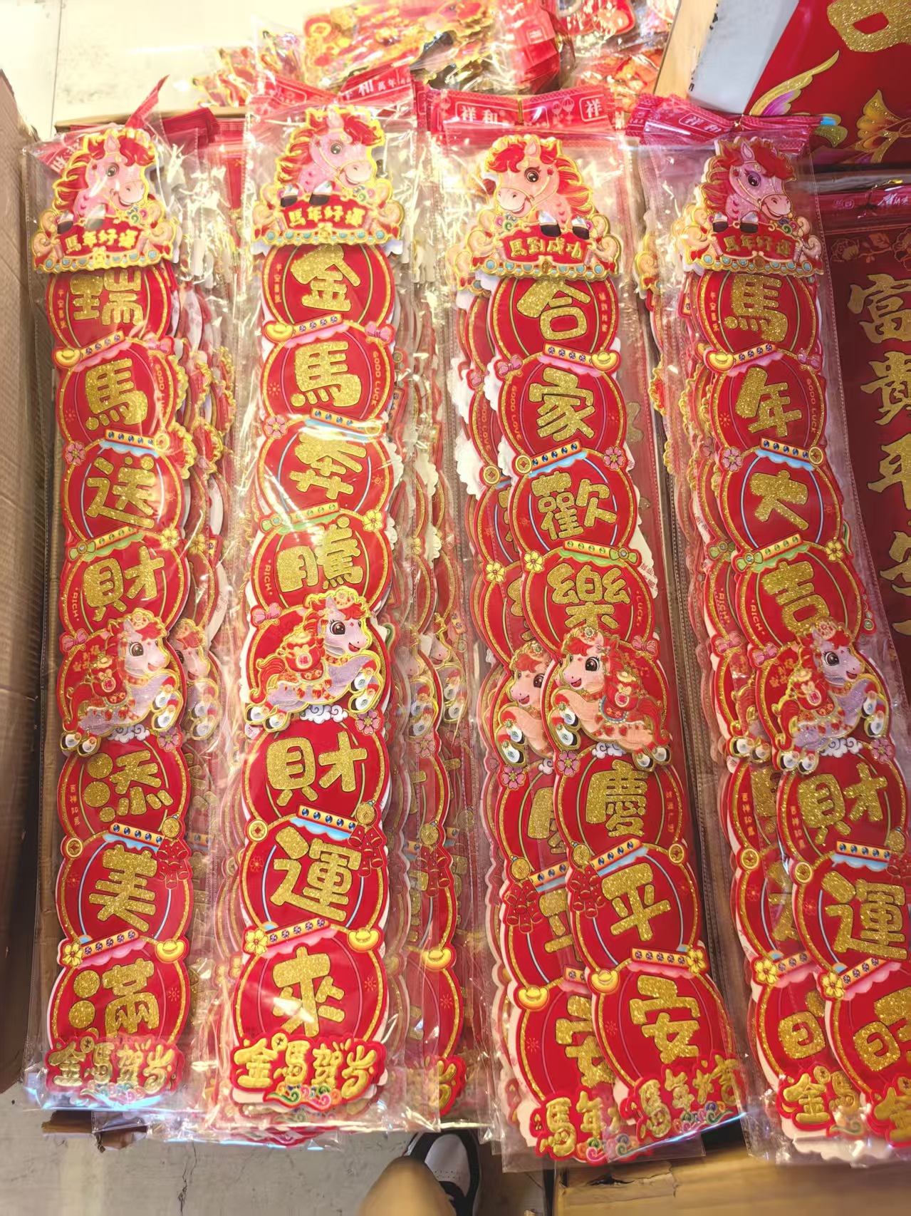 2026马年春节植绒金粉立体生肖背胶对联纸板金字植绒春联楼房对联