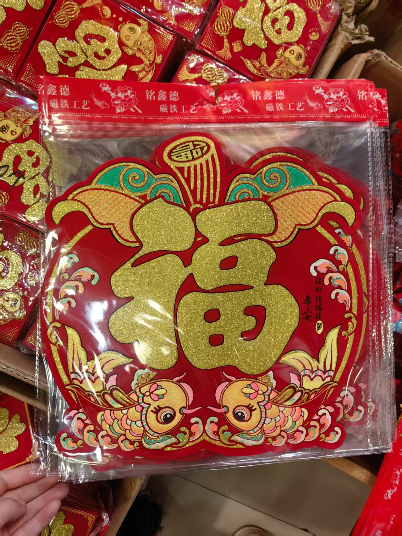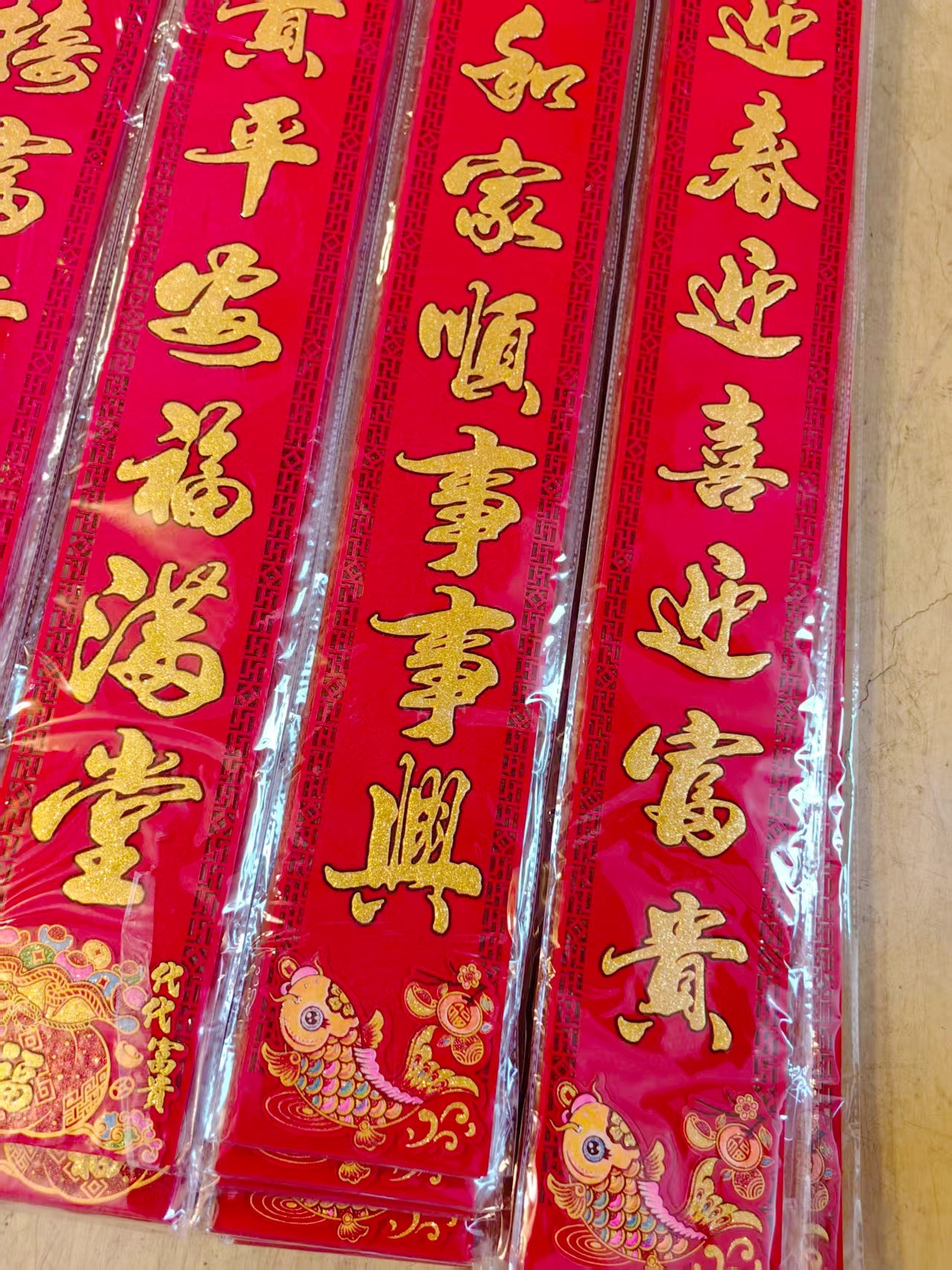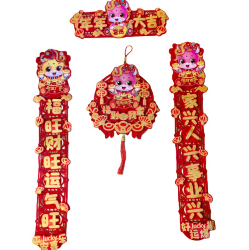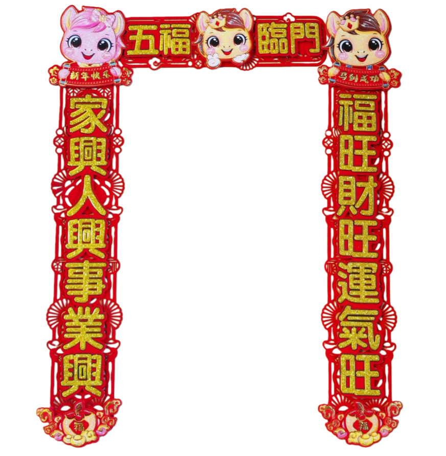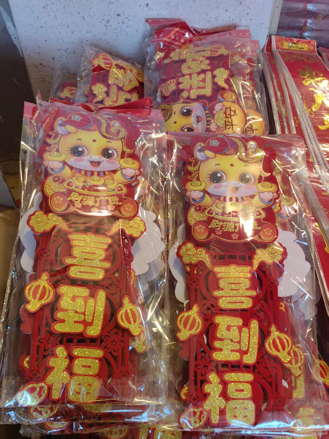 2026马年春节植绒金粉立体生肖背胶对联纸板金字植绒春联楼房对联