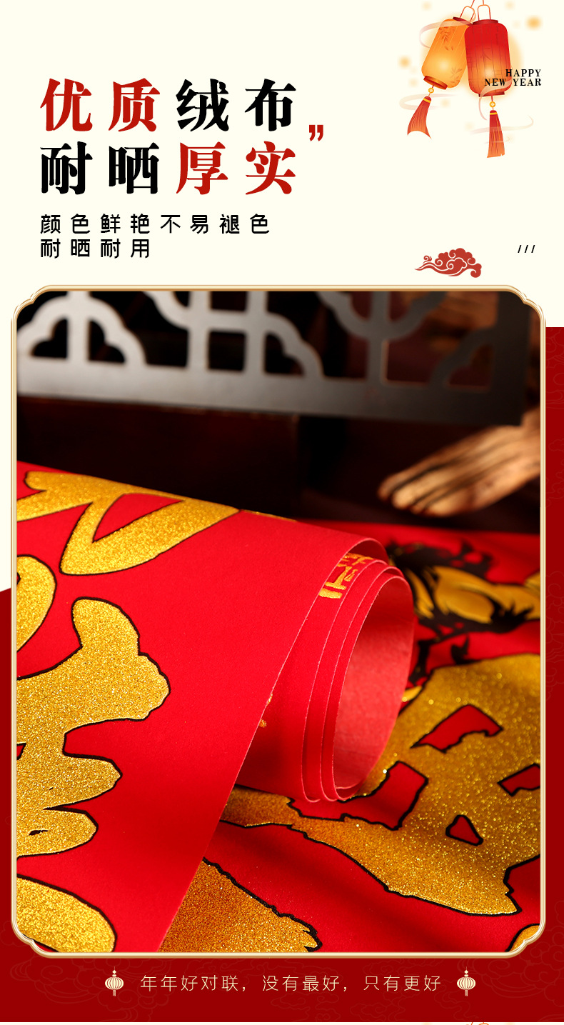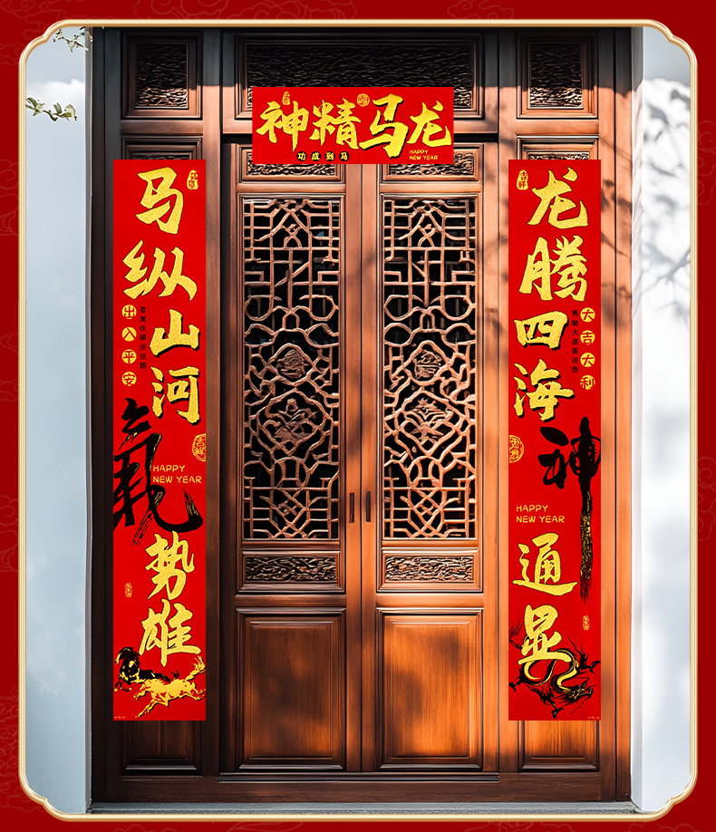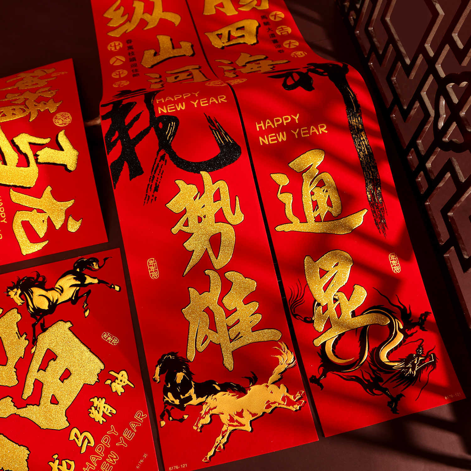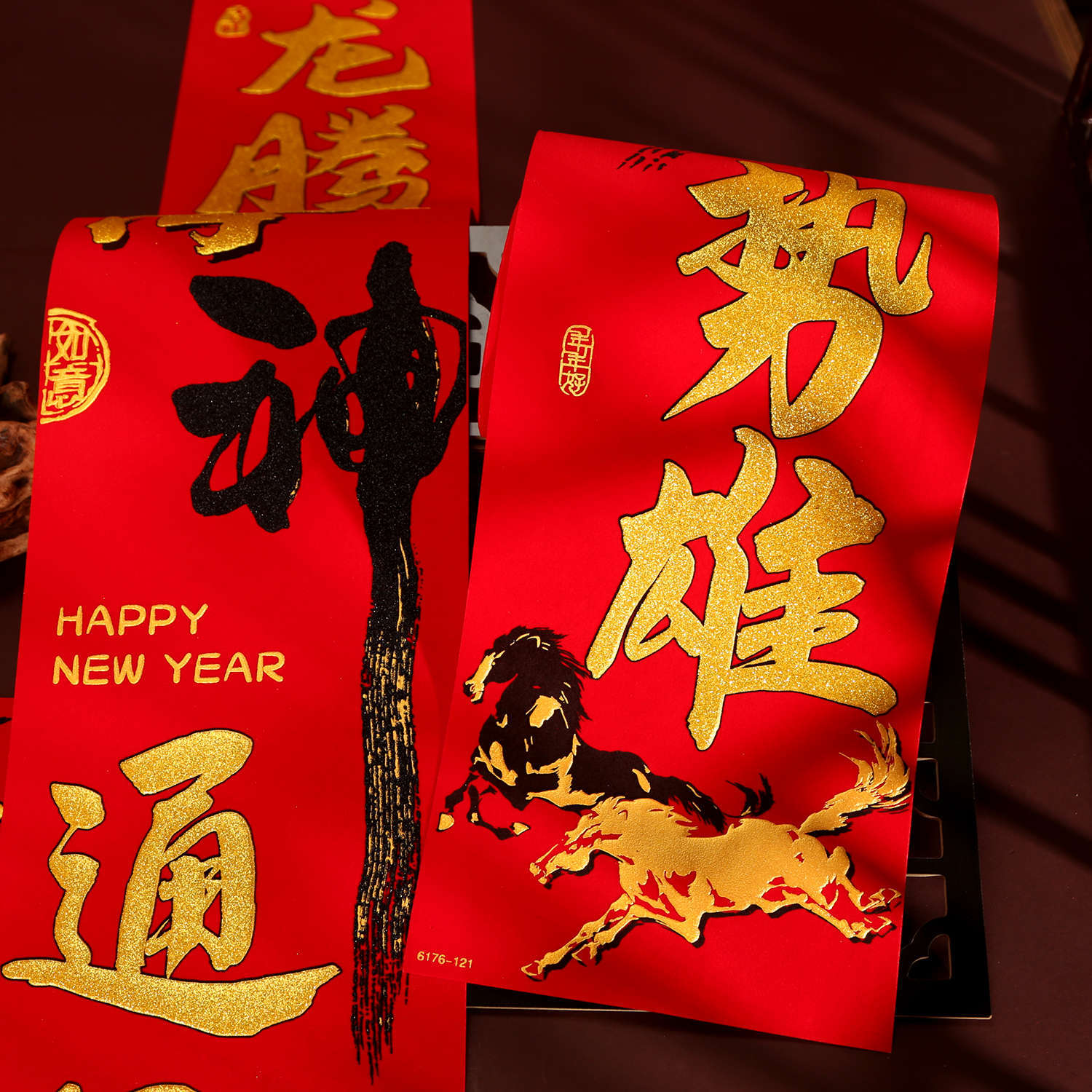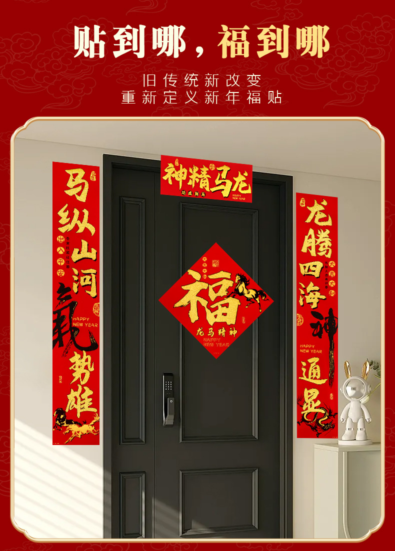 马年创意对联装饰新年门贴自粘2026新款自带背胶绒布高档春联批发