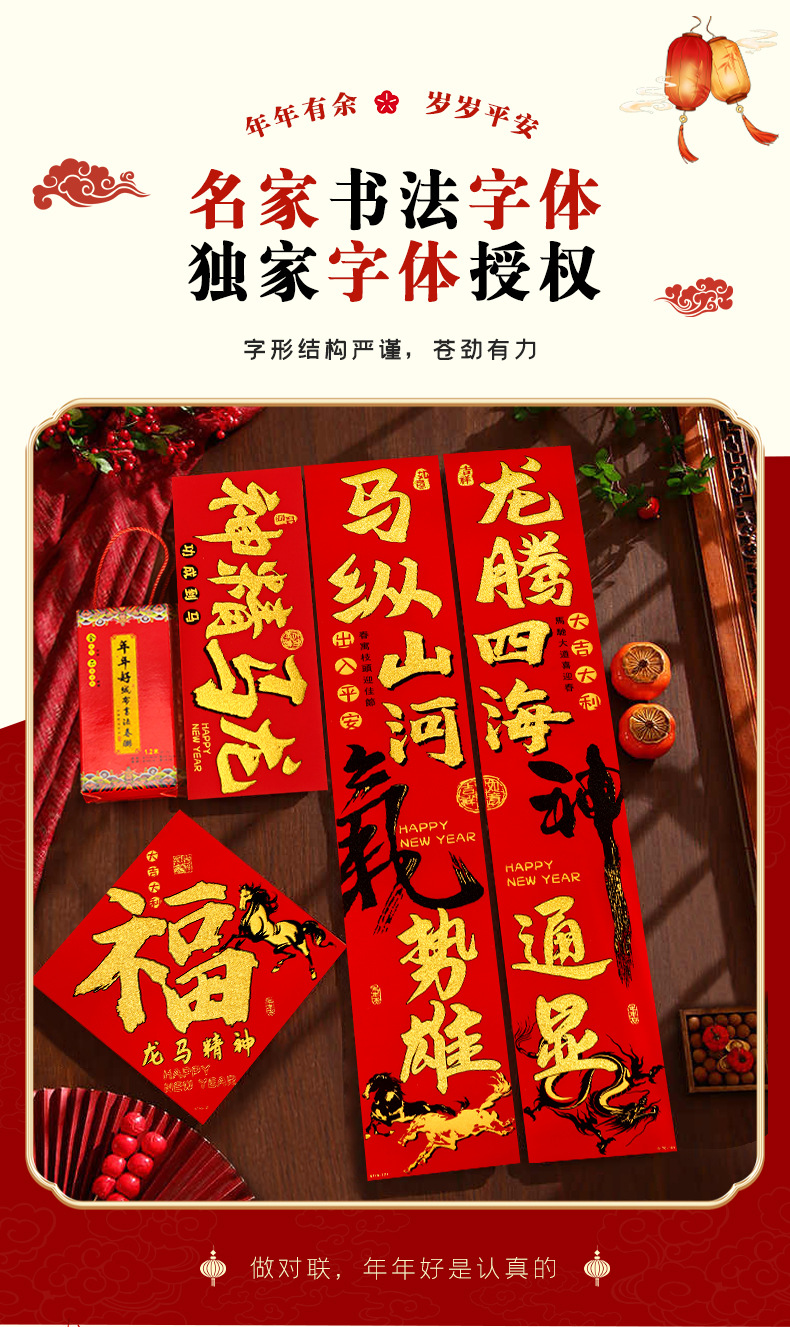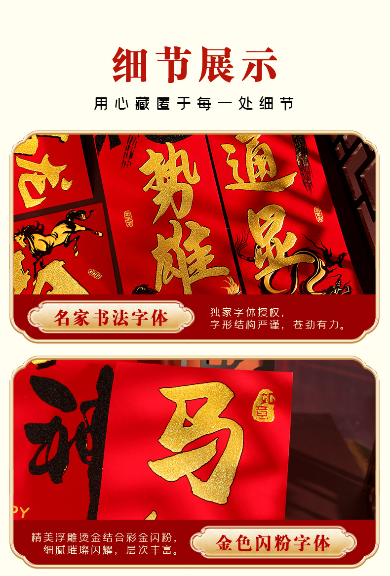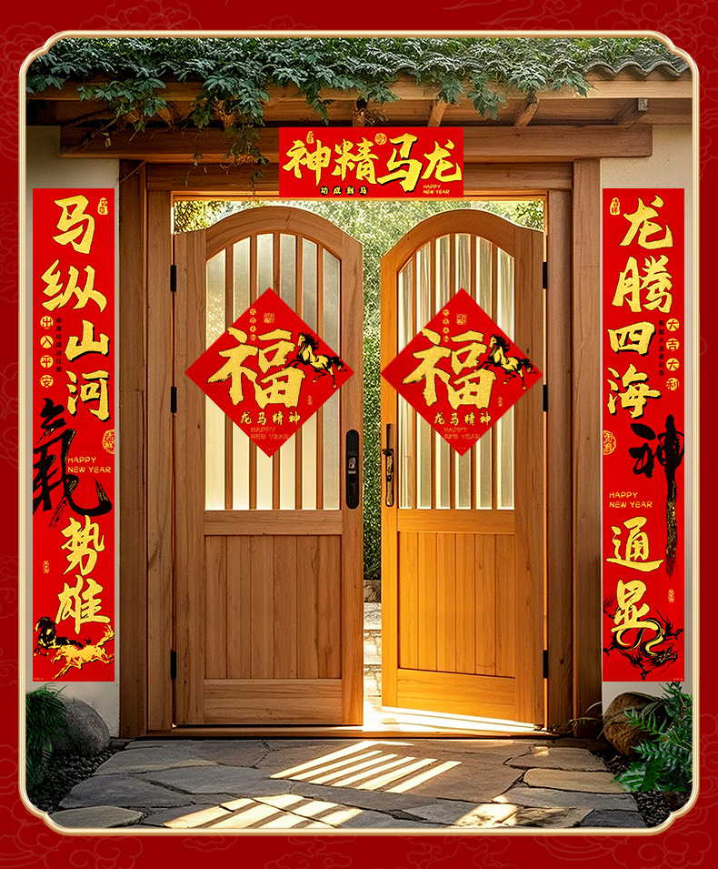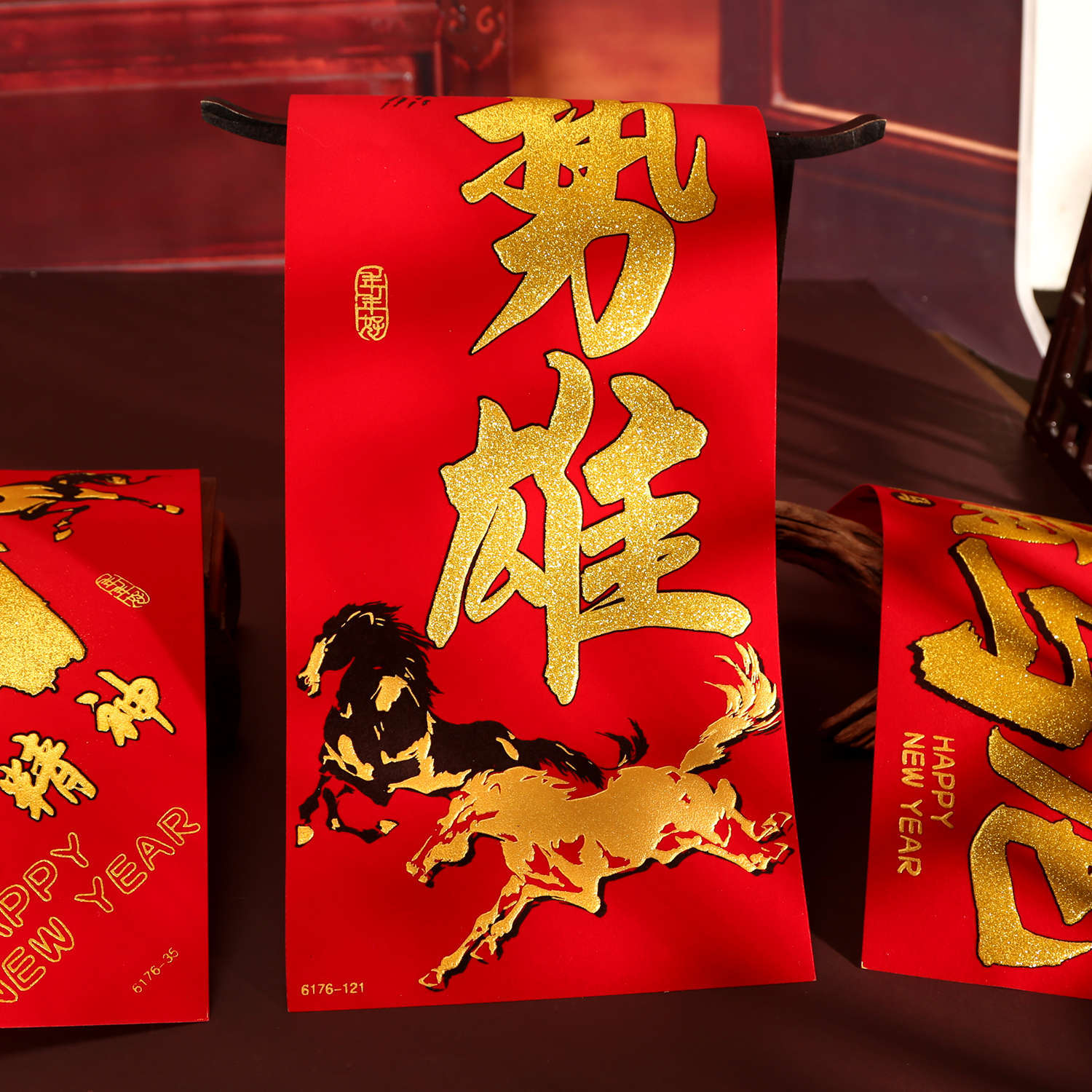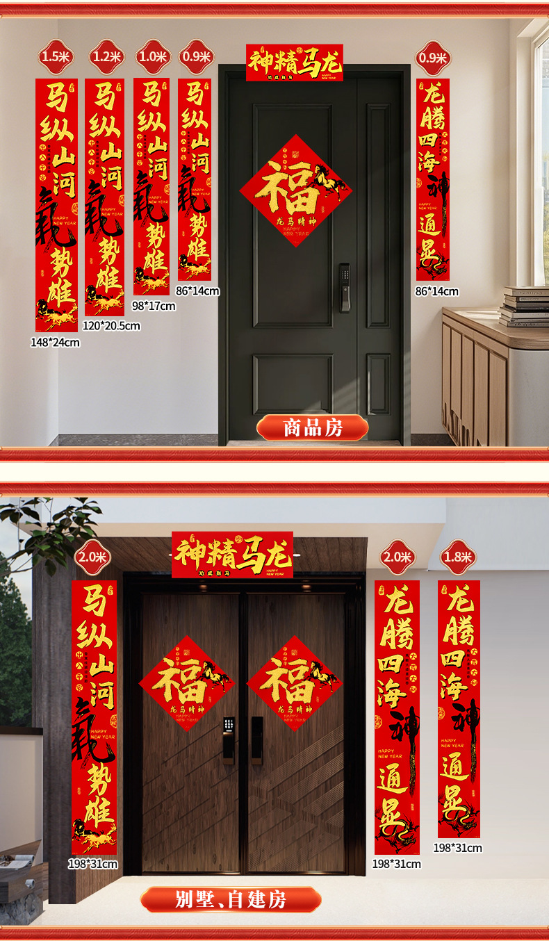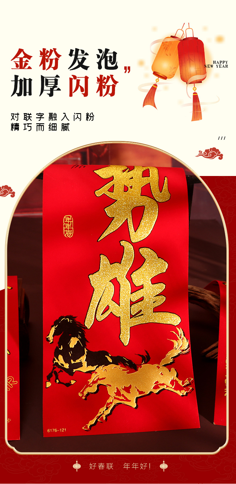 马年创意对联装饰新年门贴自粘2026新款自带背胶绒布高档春联批发