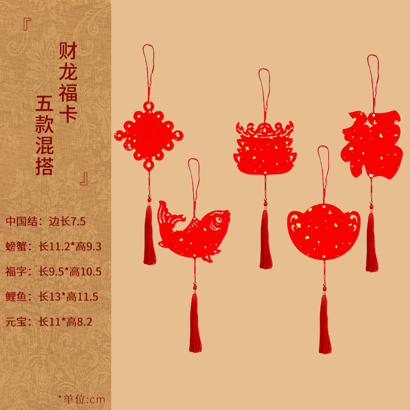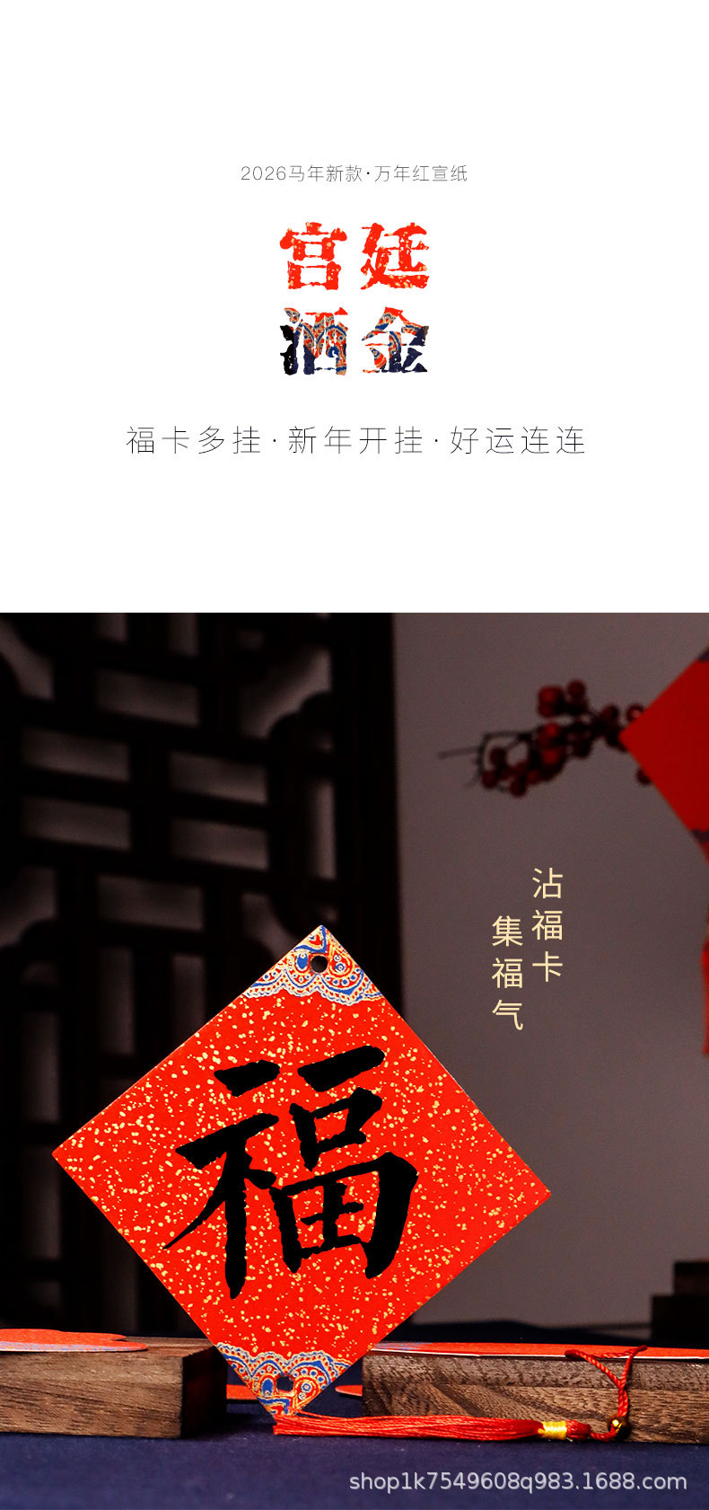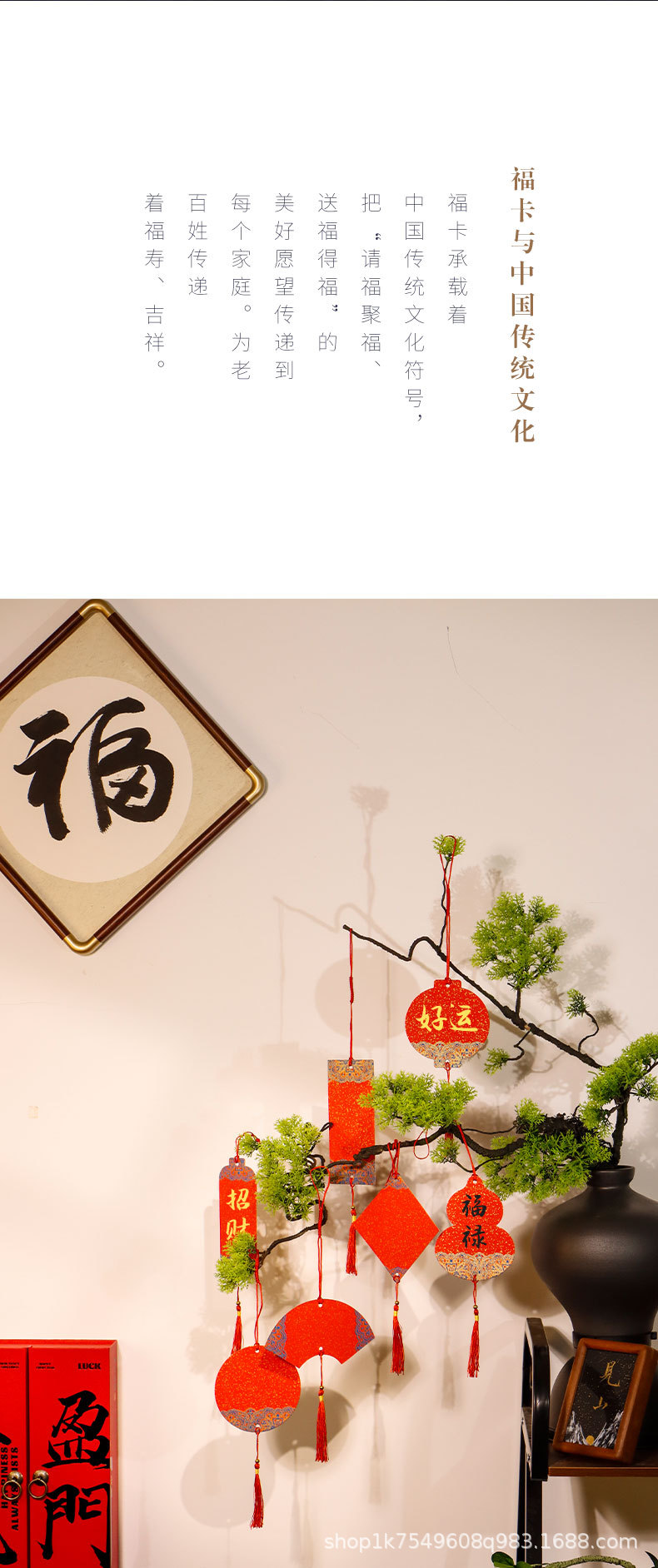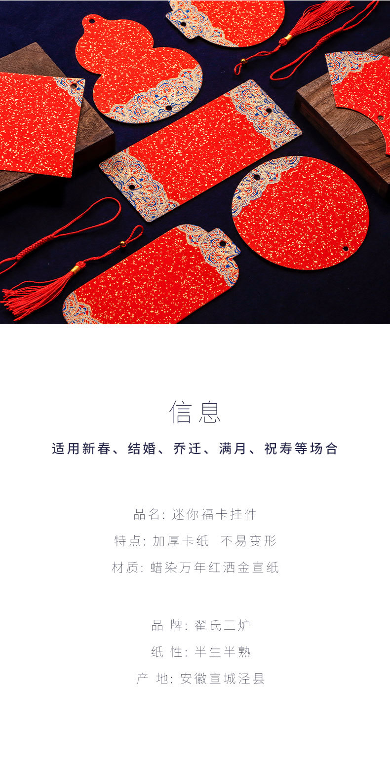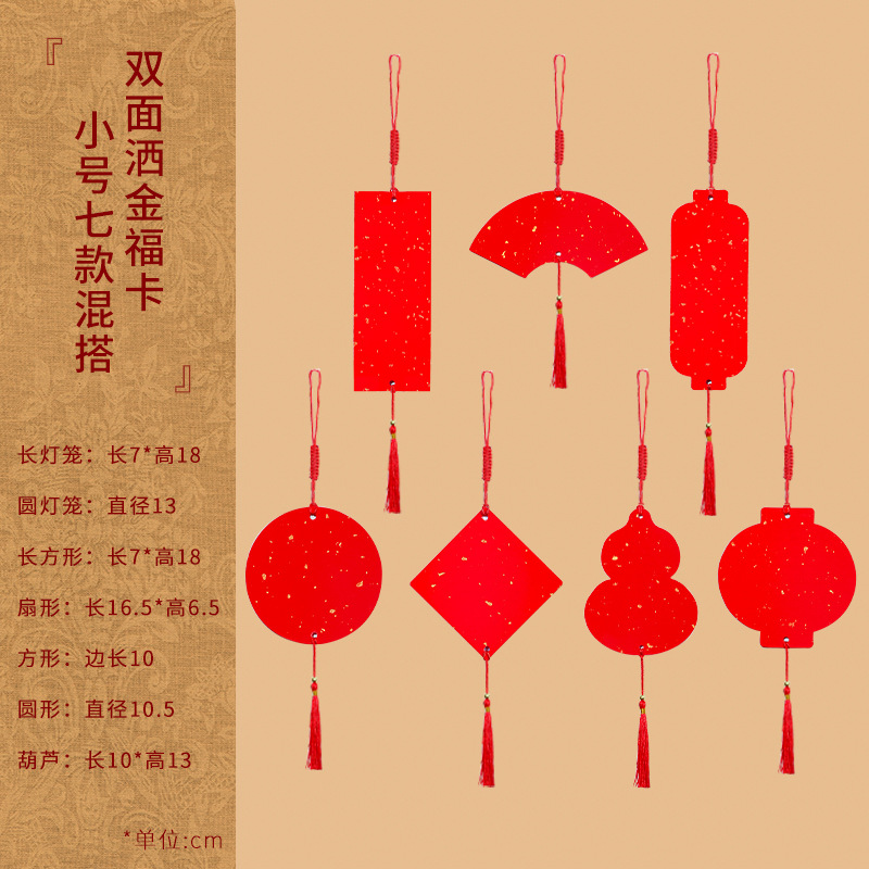 迷你洒金福卡挂件万年红蜡染宣纸挂件新年春节洒金对联纸福卡挂件