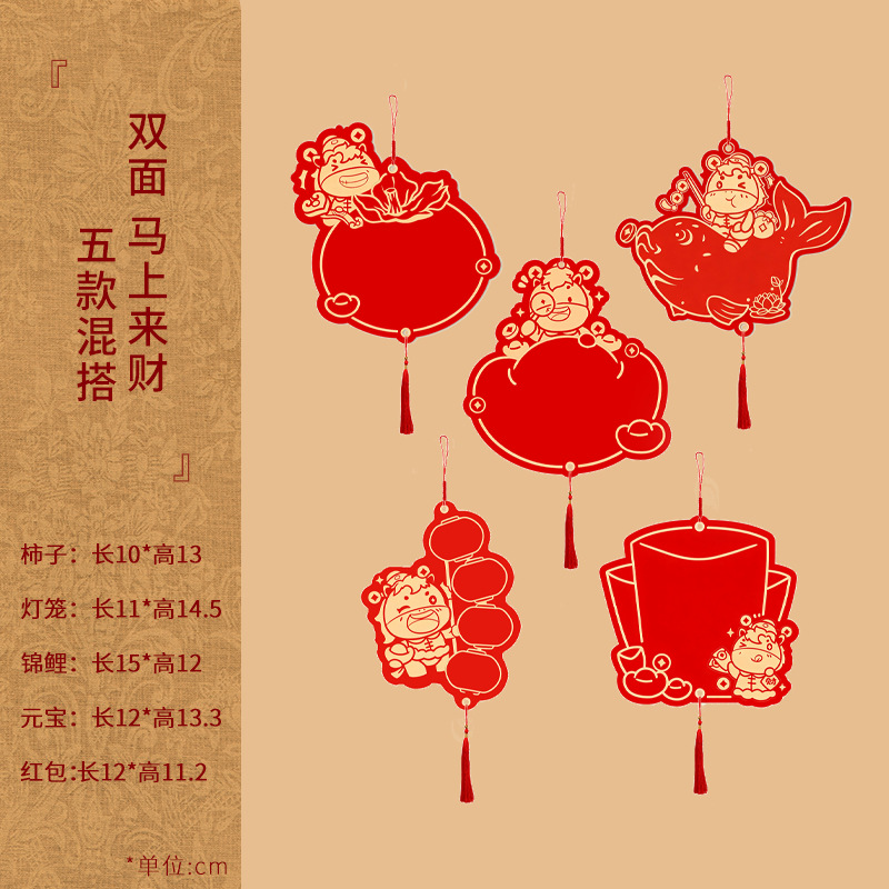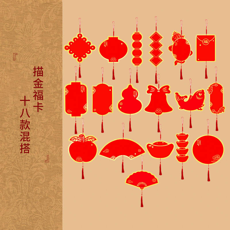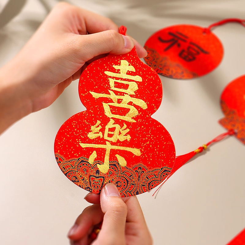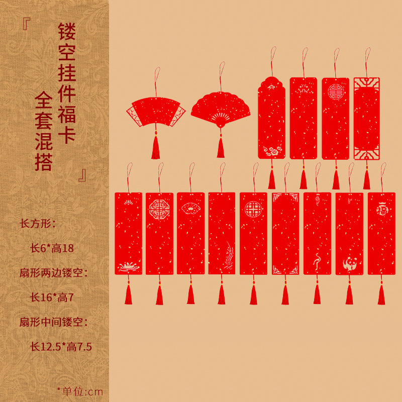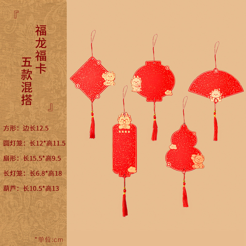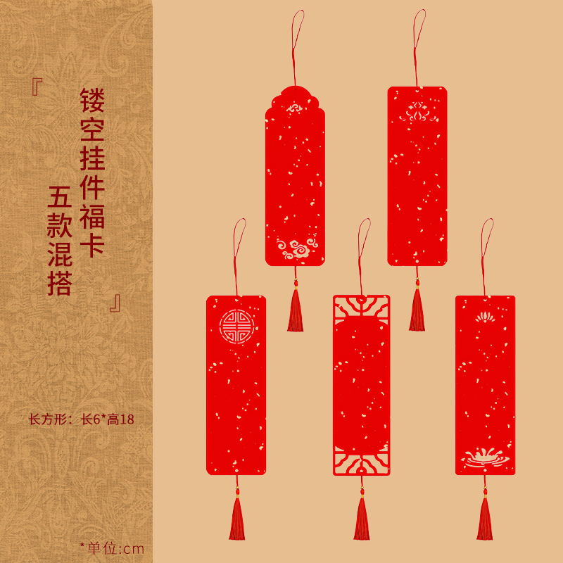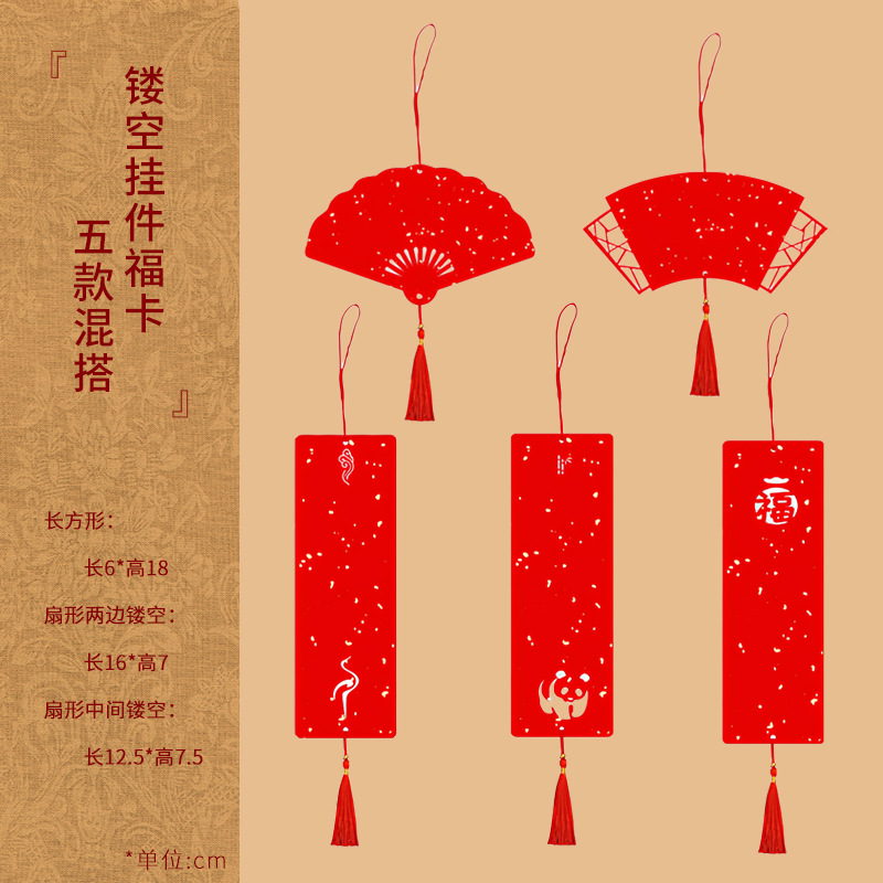 迷你洒金福卡挂件万年红蜡染宣纸挂件新年春节洒金对联纸福卡挂件