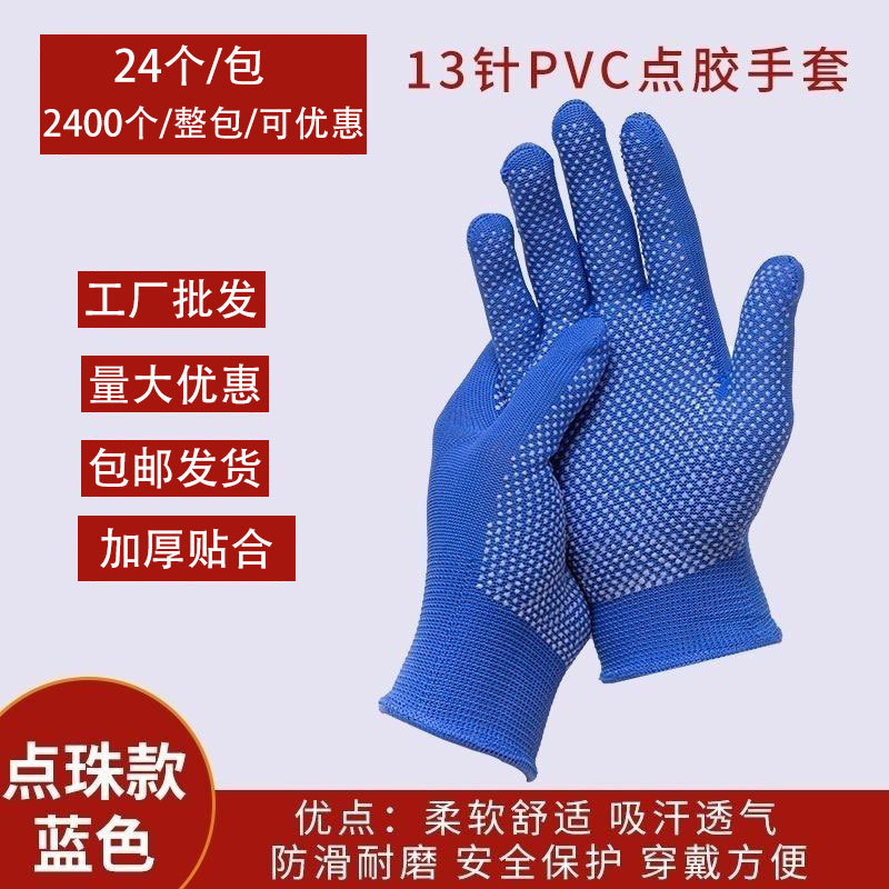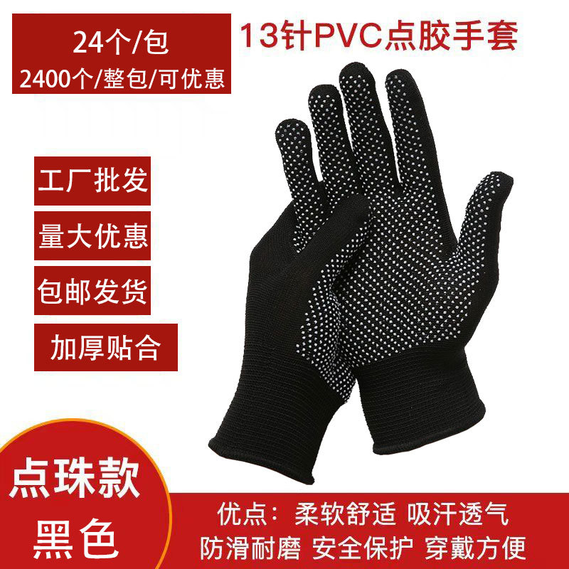 点胶点珠手套十针白手套劳保手套耐磨手套工地上用厂家自营包邮发