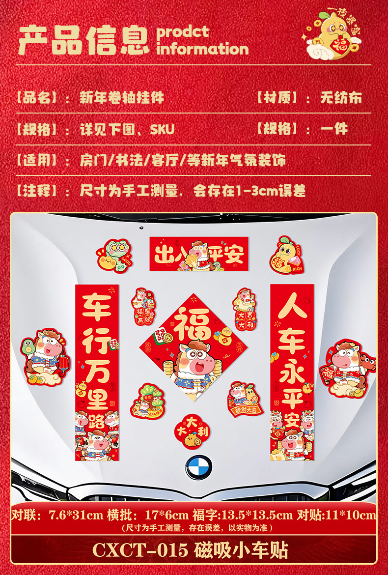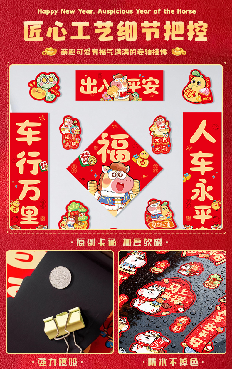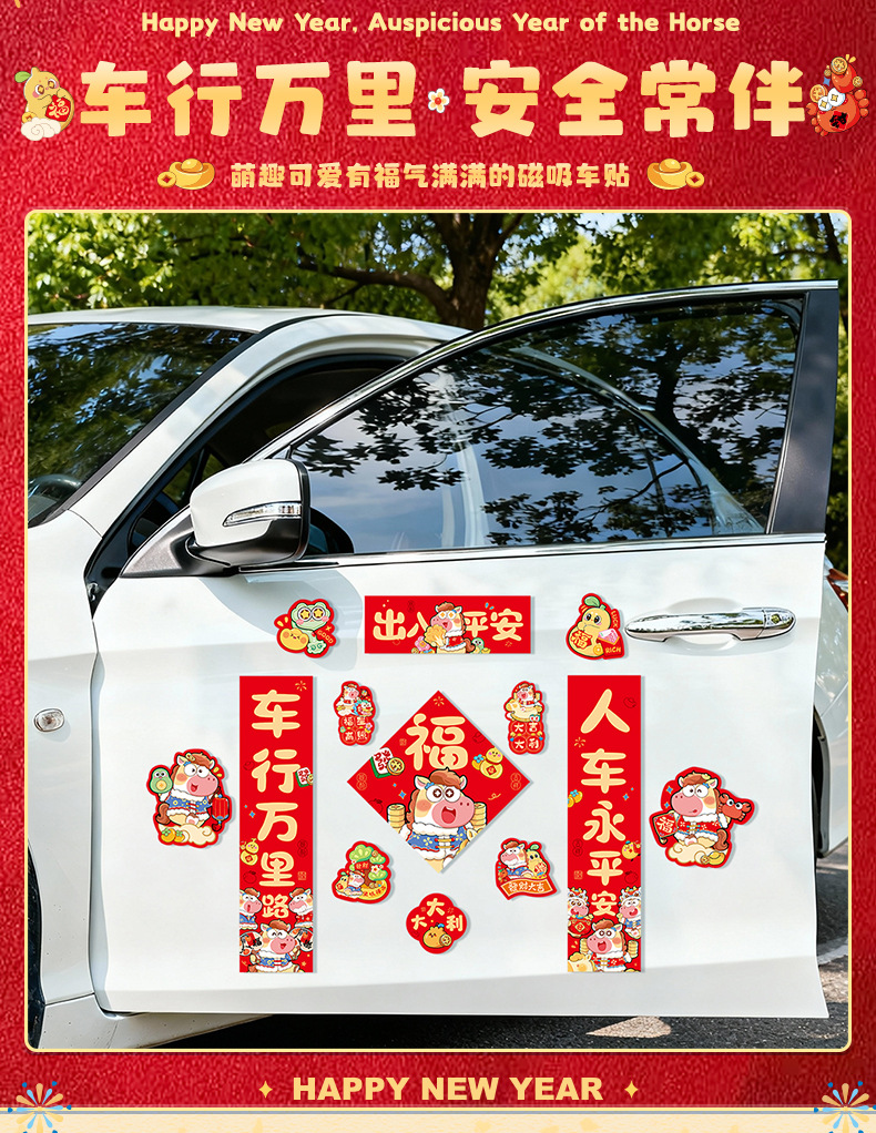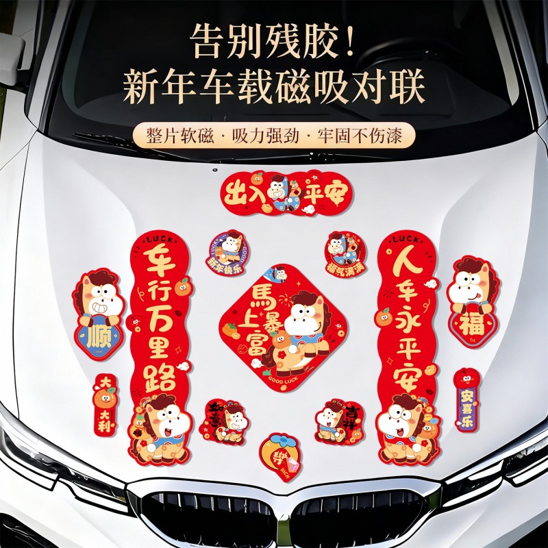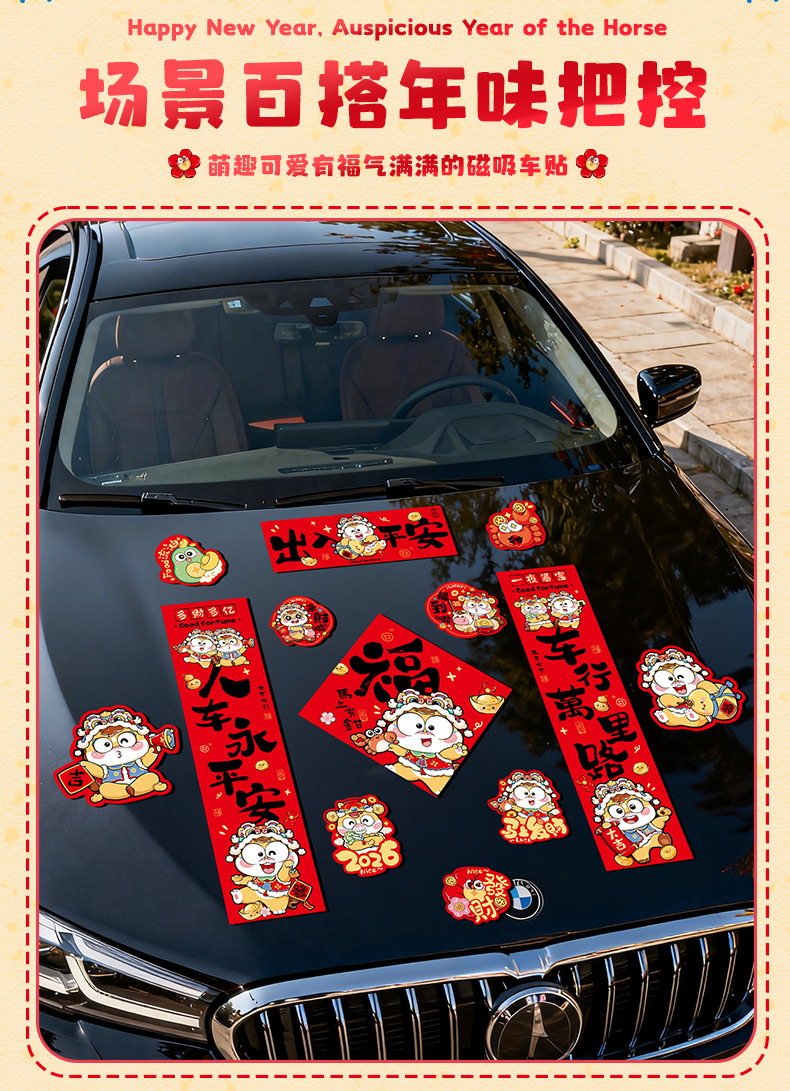 2026马年磁吸车对联新款磁吸春联卡车轿车出入平安磁吸车贴小对联