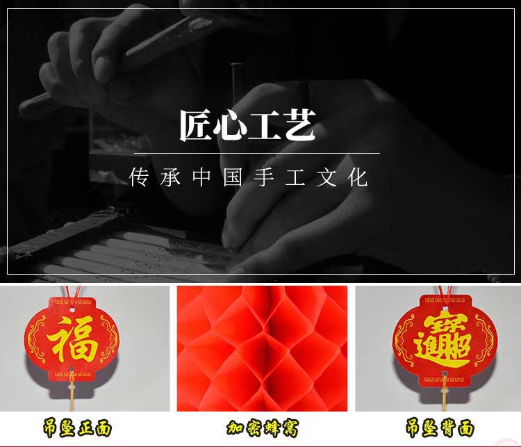 连串红灯笼挂饰结婚礼喜字灯笼新年春节开业装饰塑纸蜂窝小纸灯笼