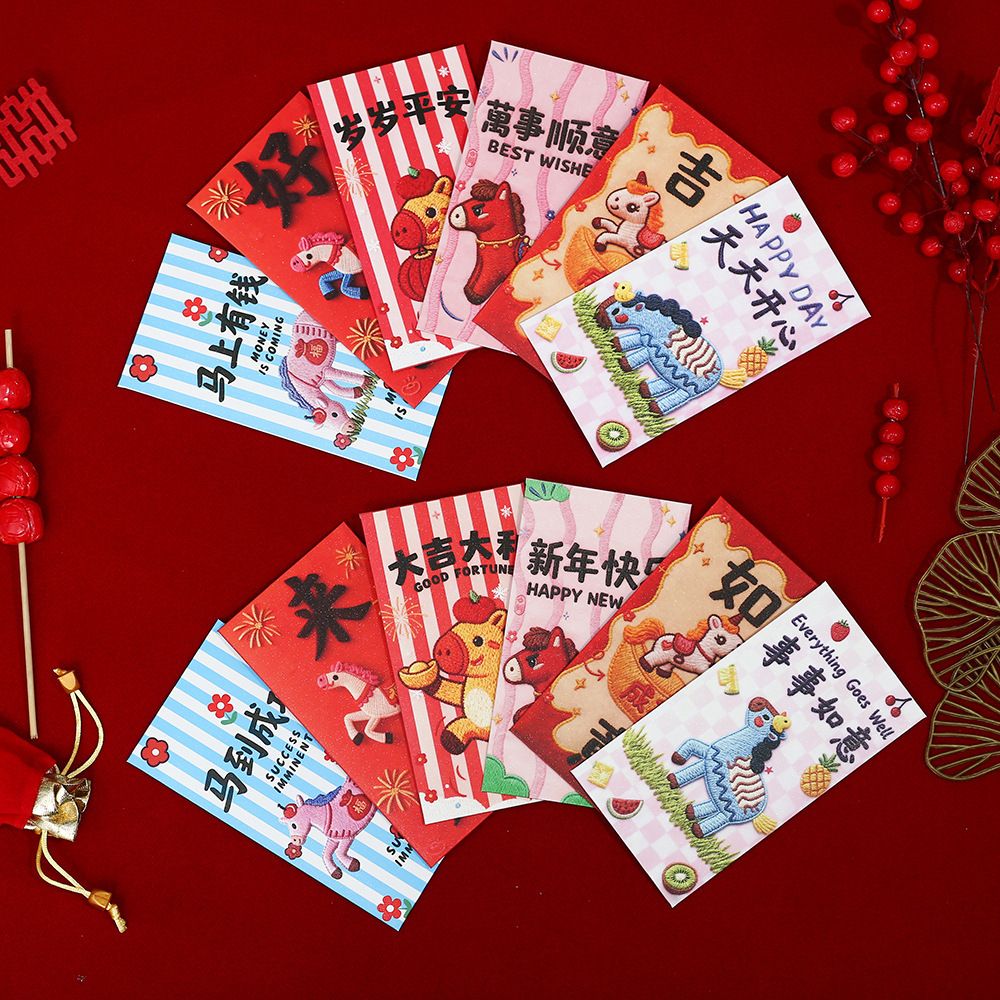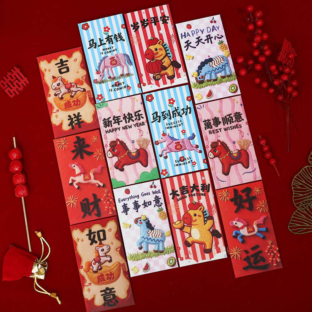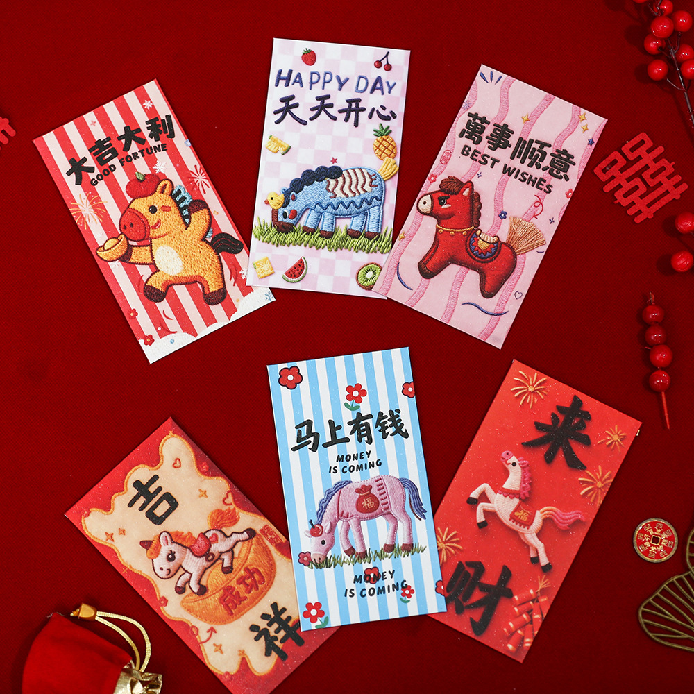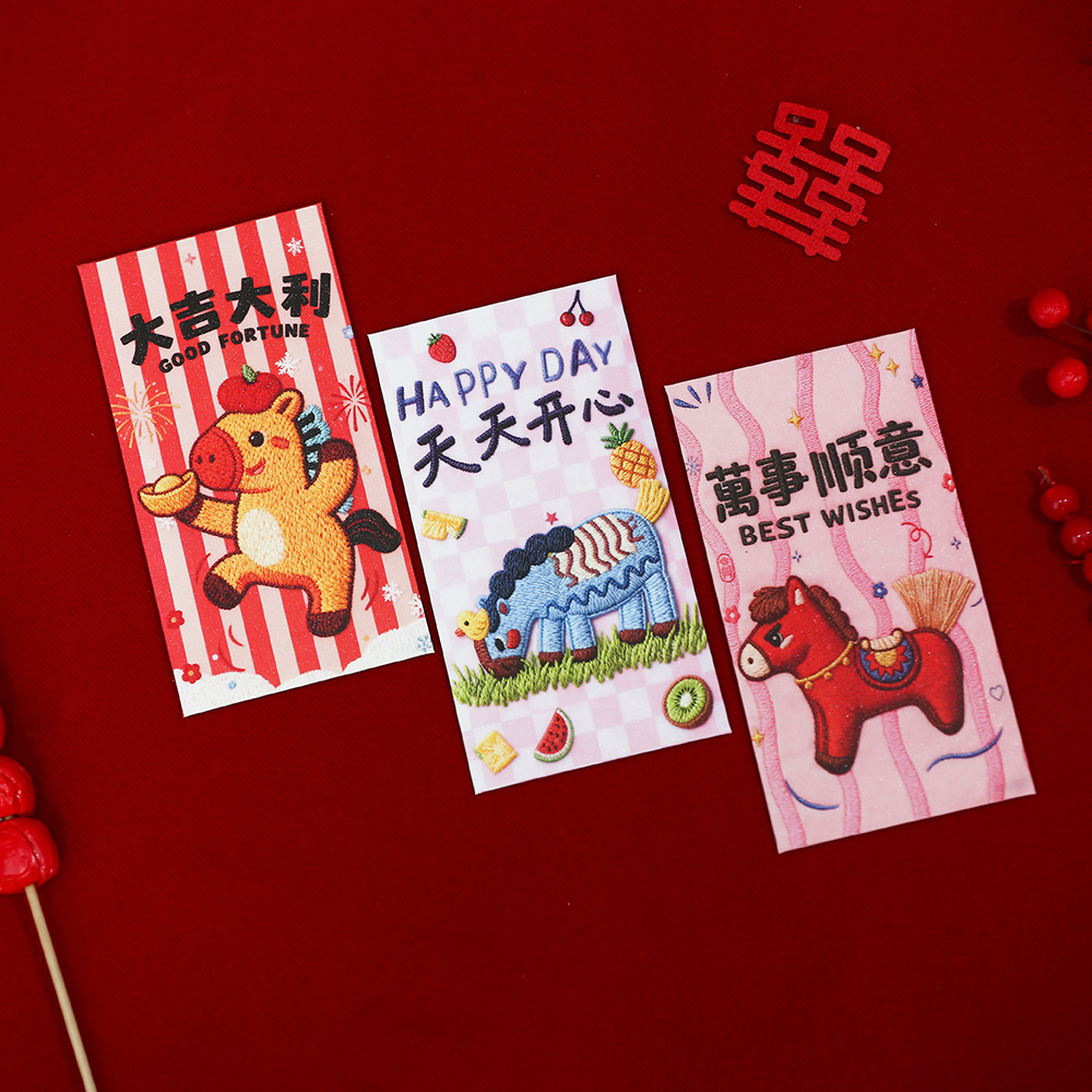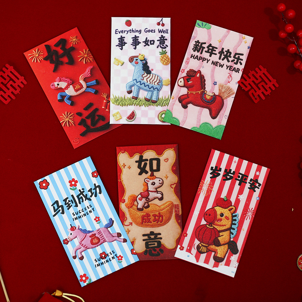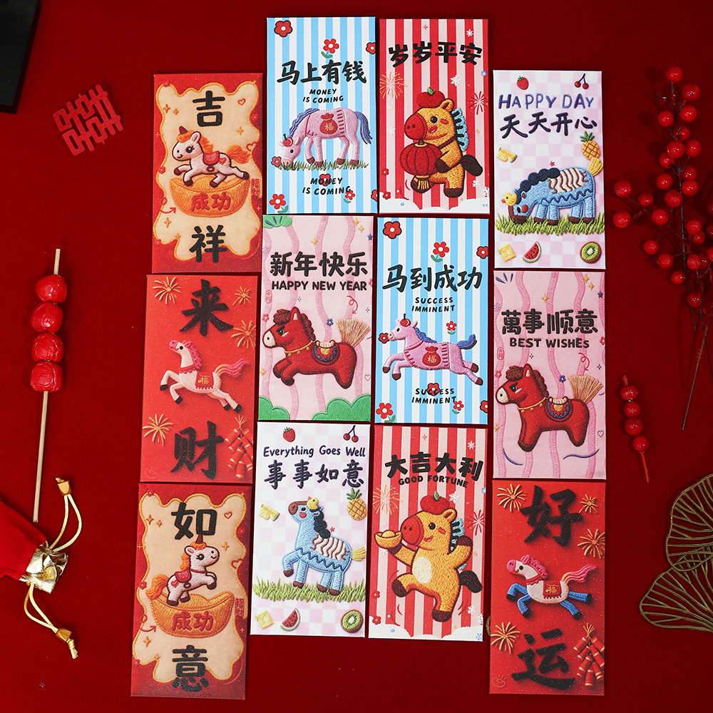 【抖音爆款】刺绣小马新年通用利是封喜庆春节卡通儿童压岁红包袋