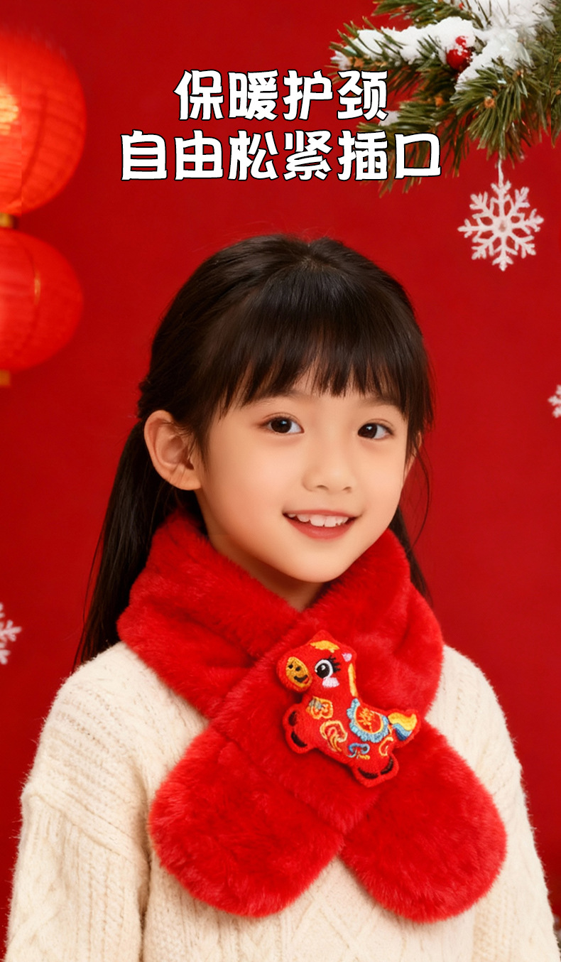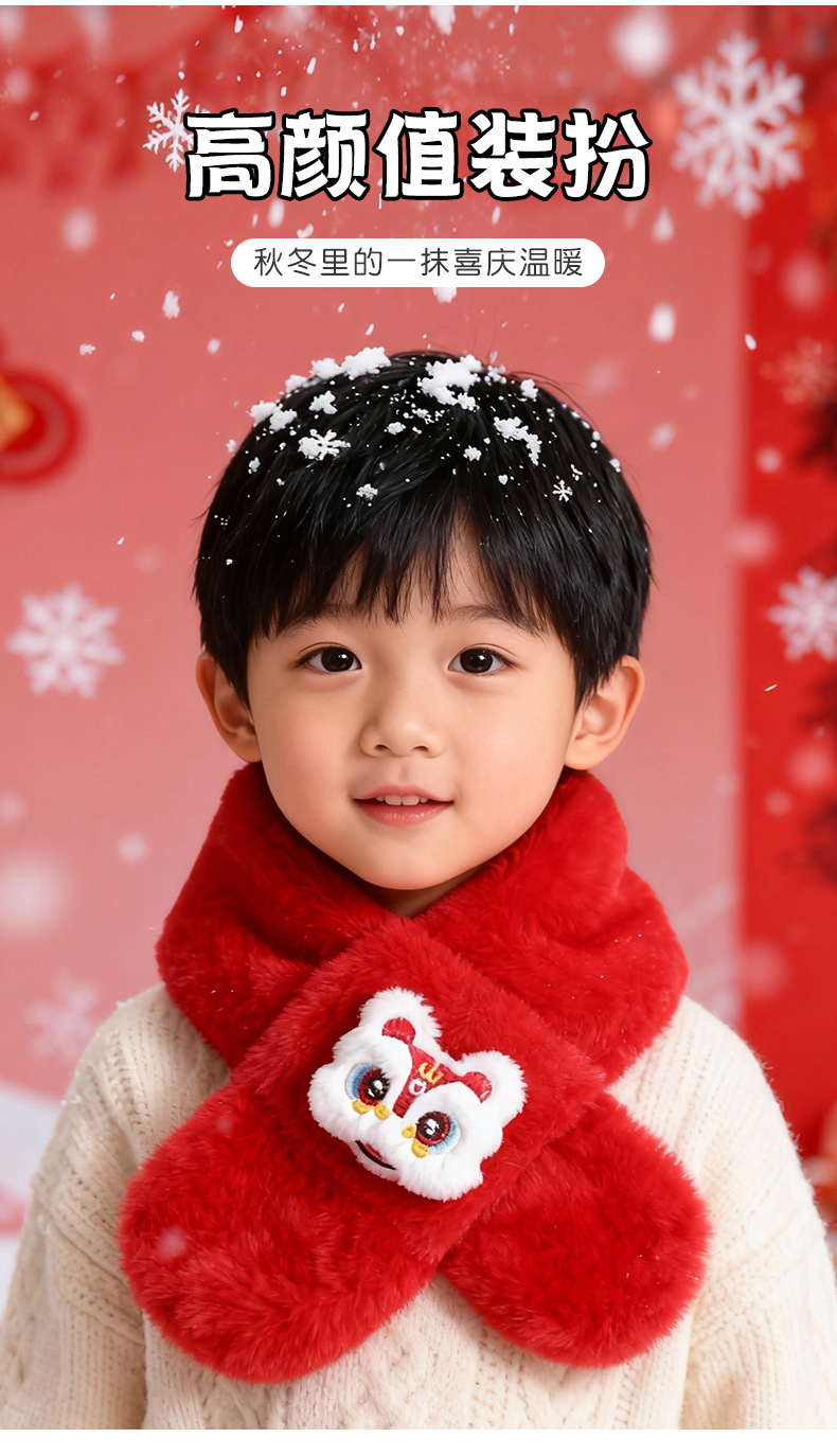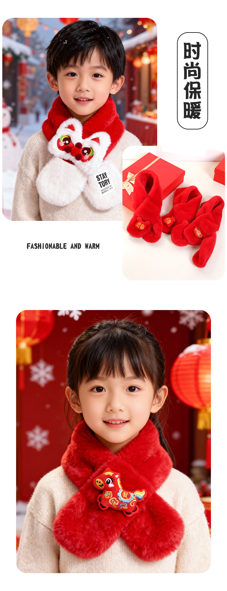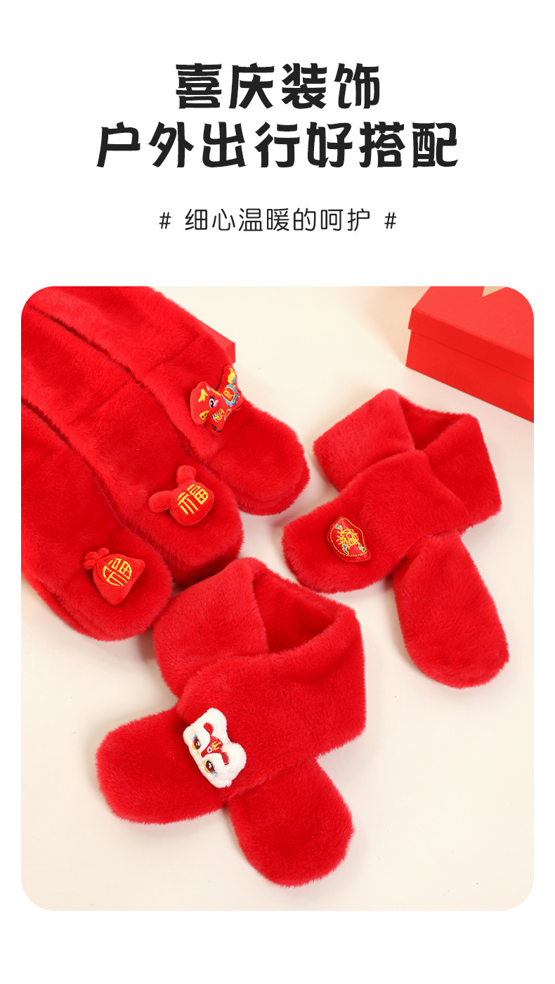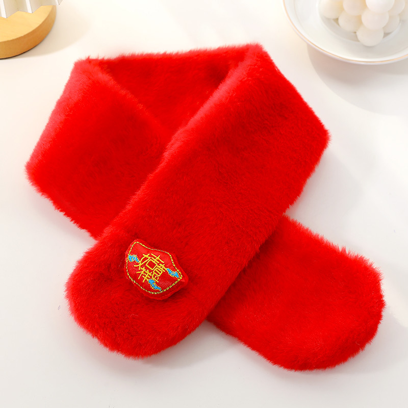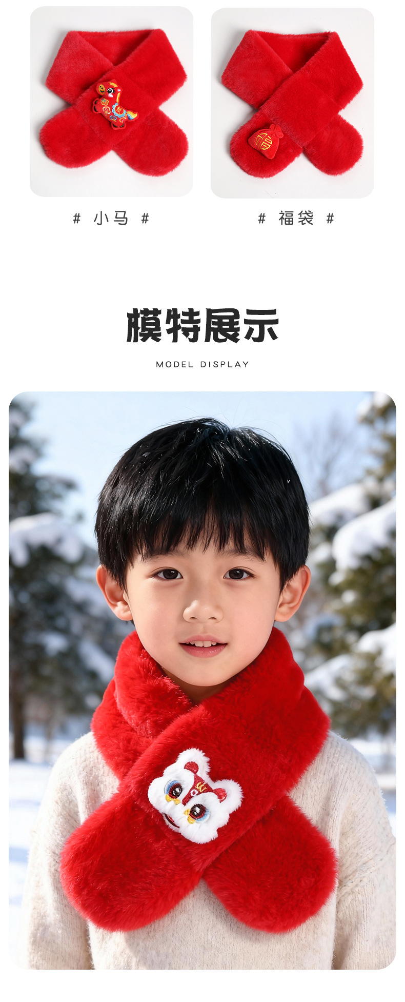 红色新年过年儿童围巾冬季喜庆氛围感男女童加厚毛绒保暖宝宝围脖