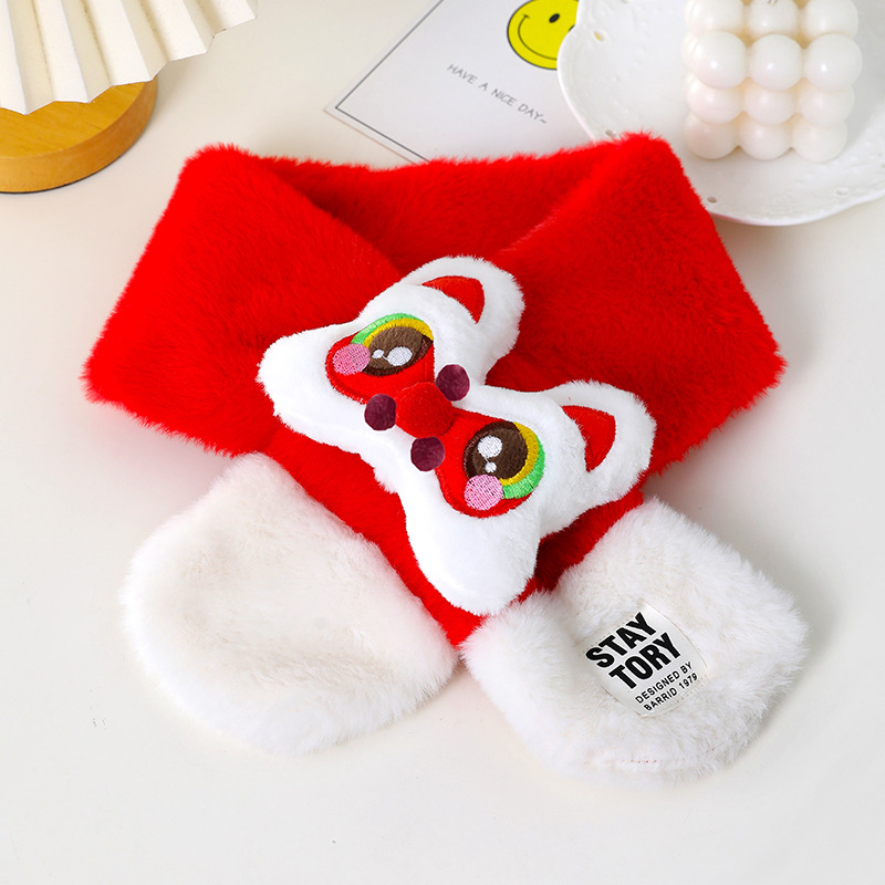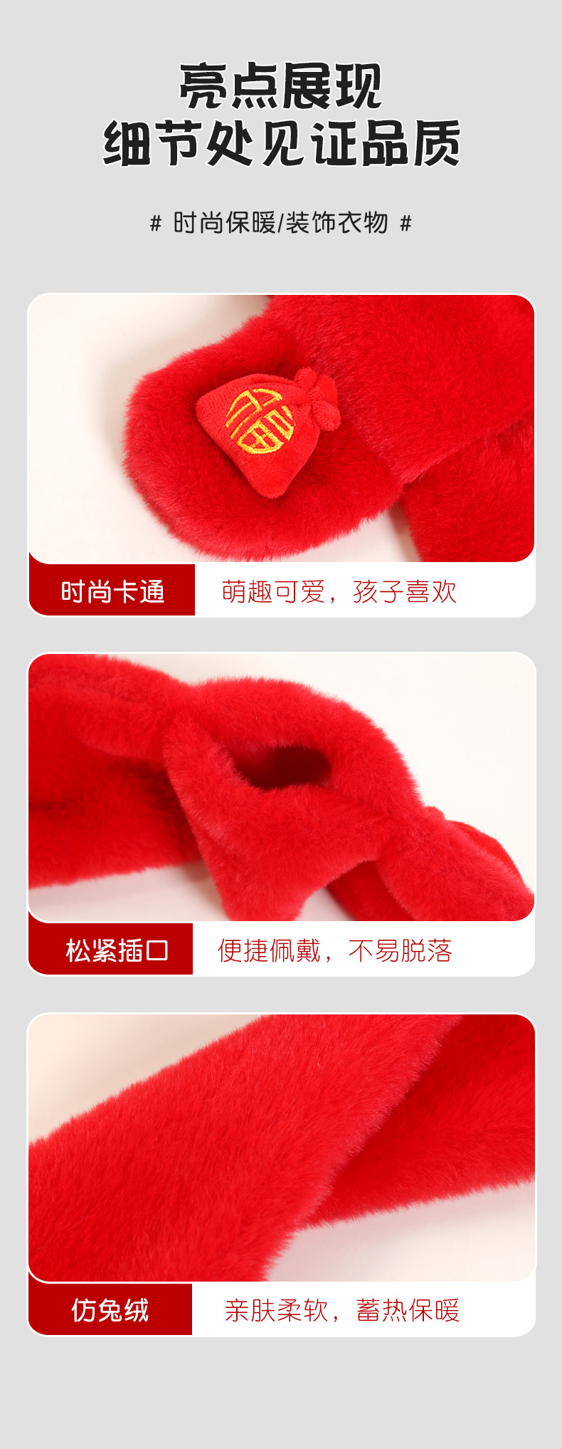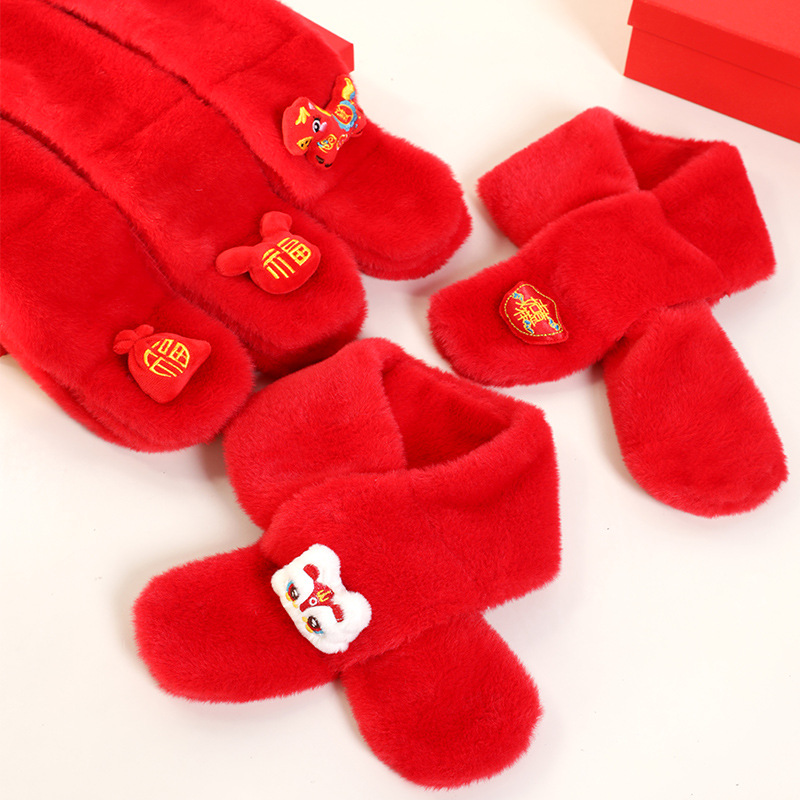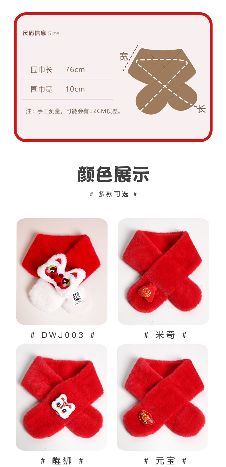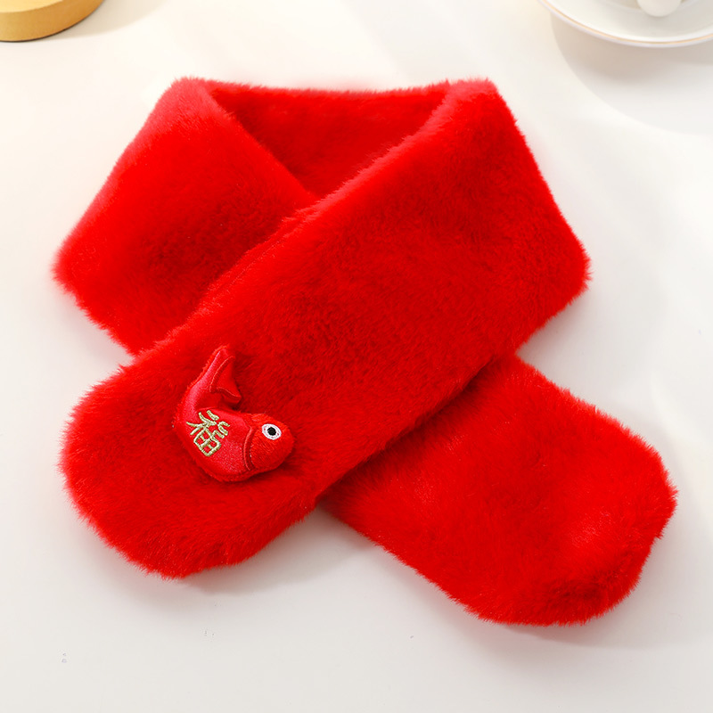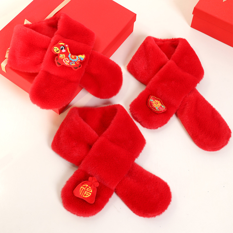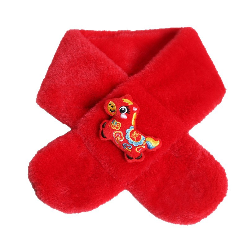 红色新年过年儿童围巾冬季喜庆氛围感男女童加厚毛绒保暖宝宝围脖