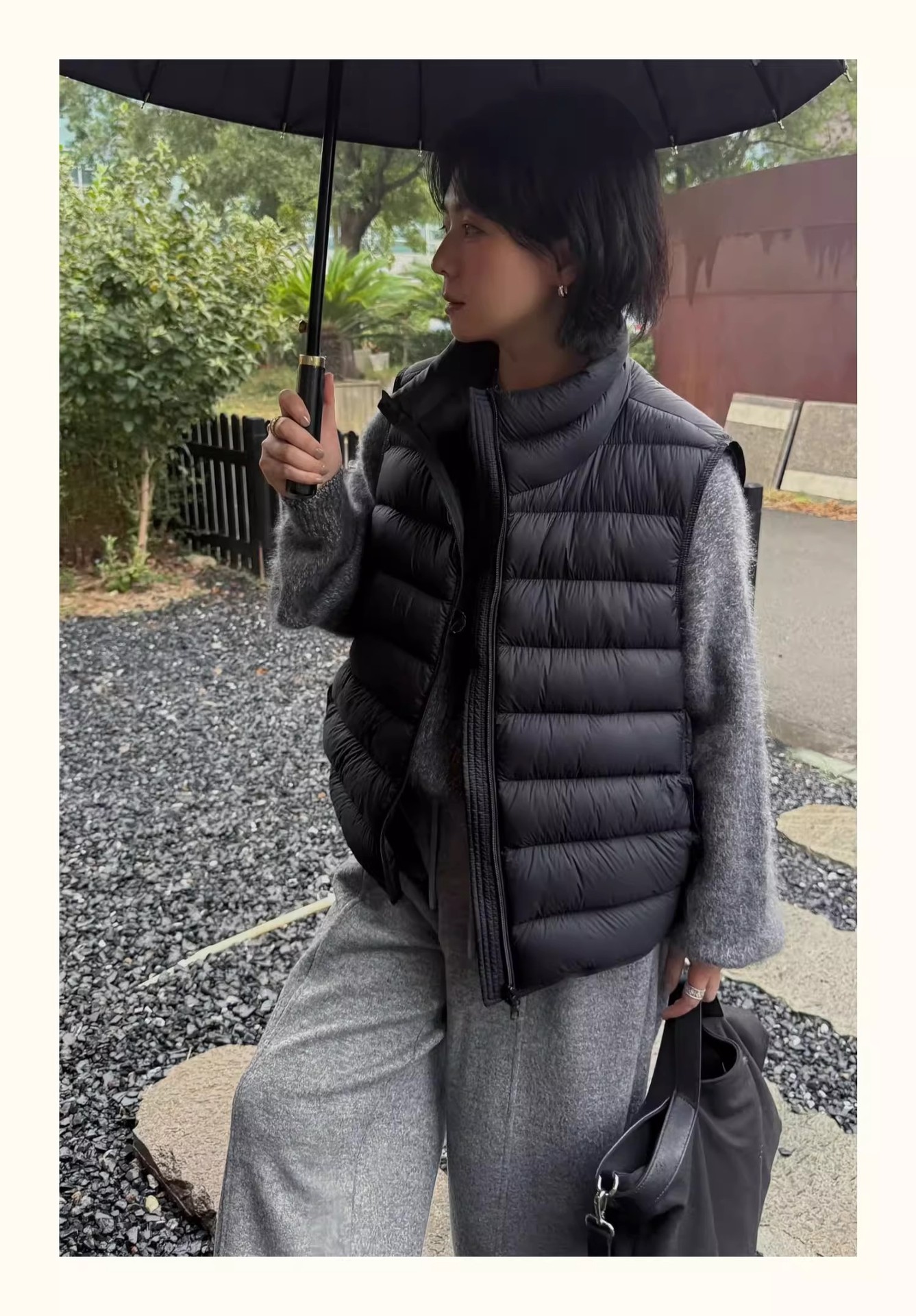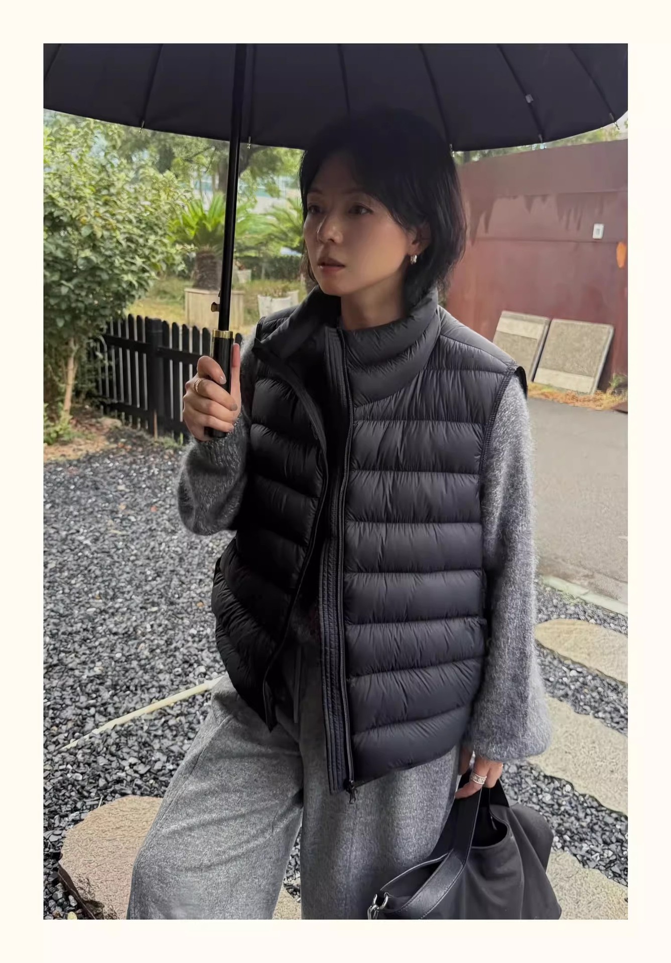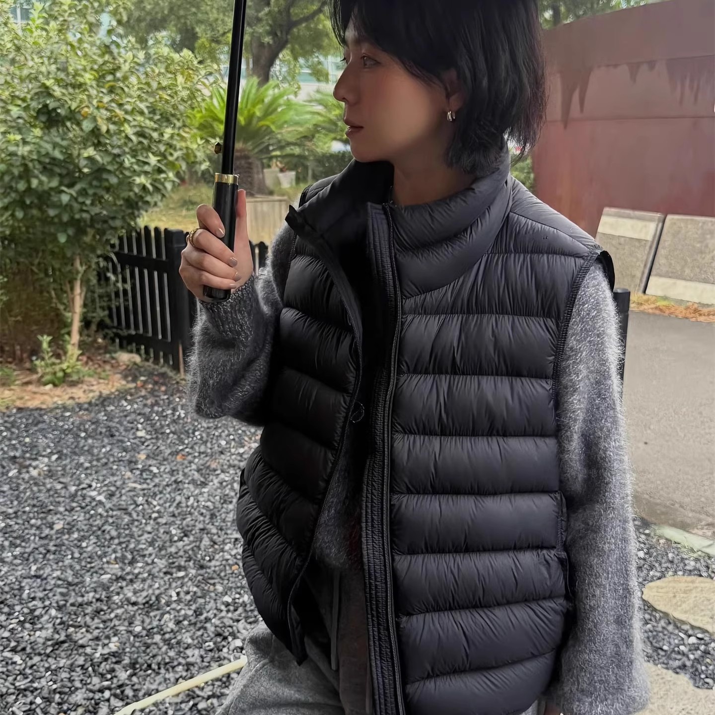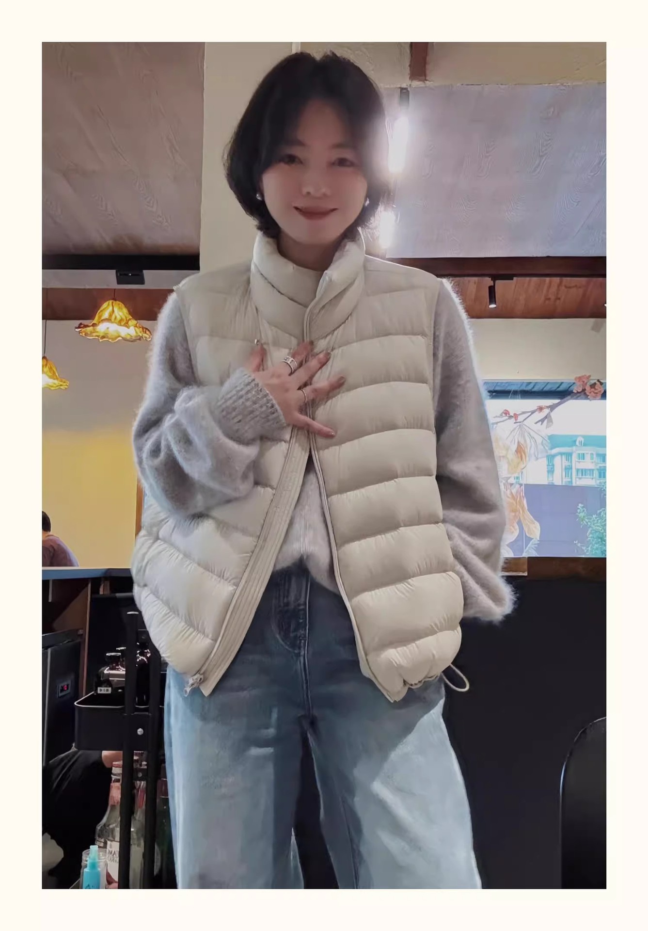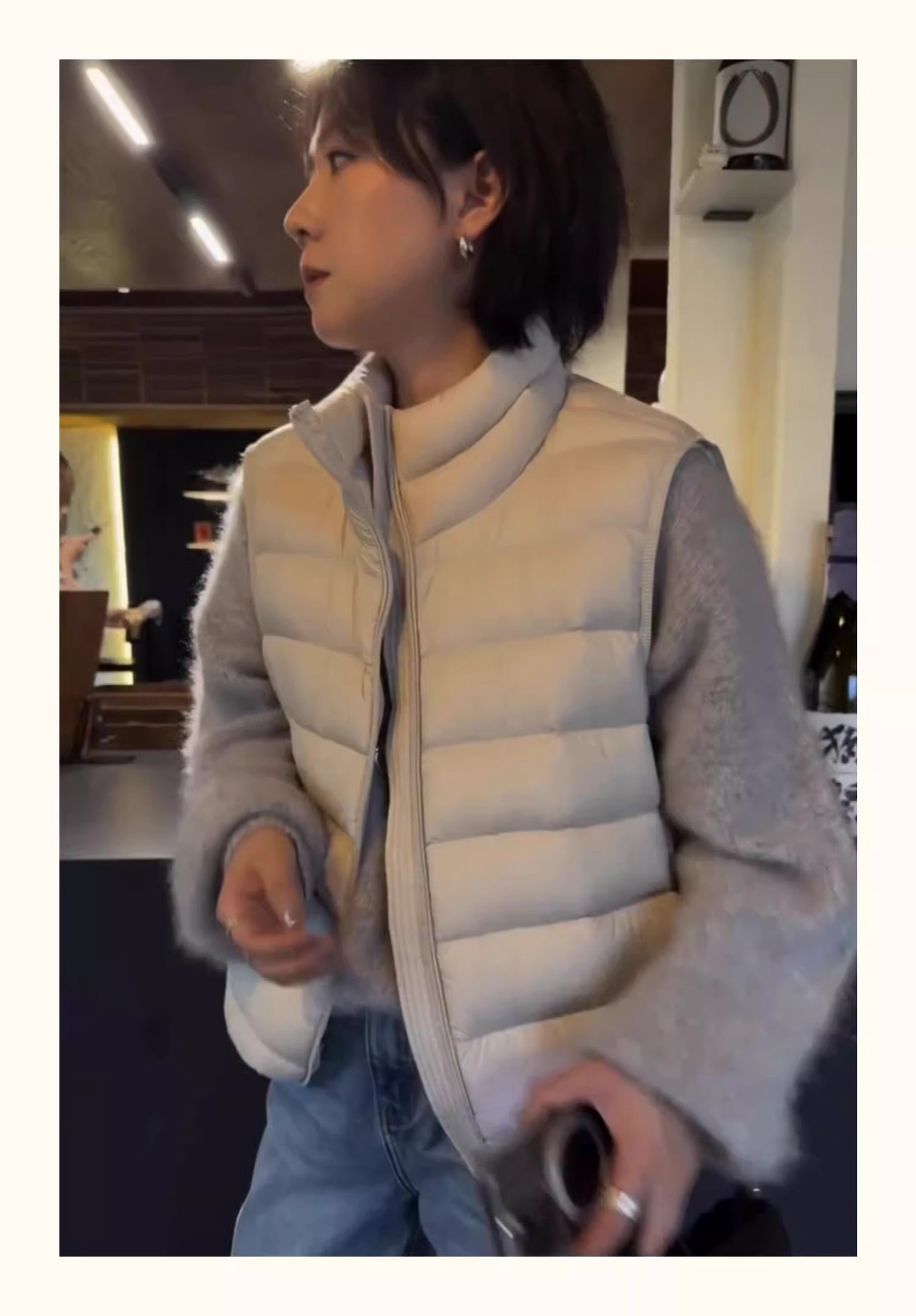 白鸭绒羽绒马甲女短款背心秋冬2025新款韩版宽松高级感小个子坎肩