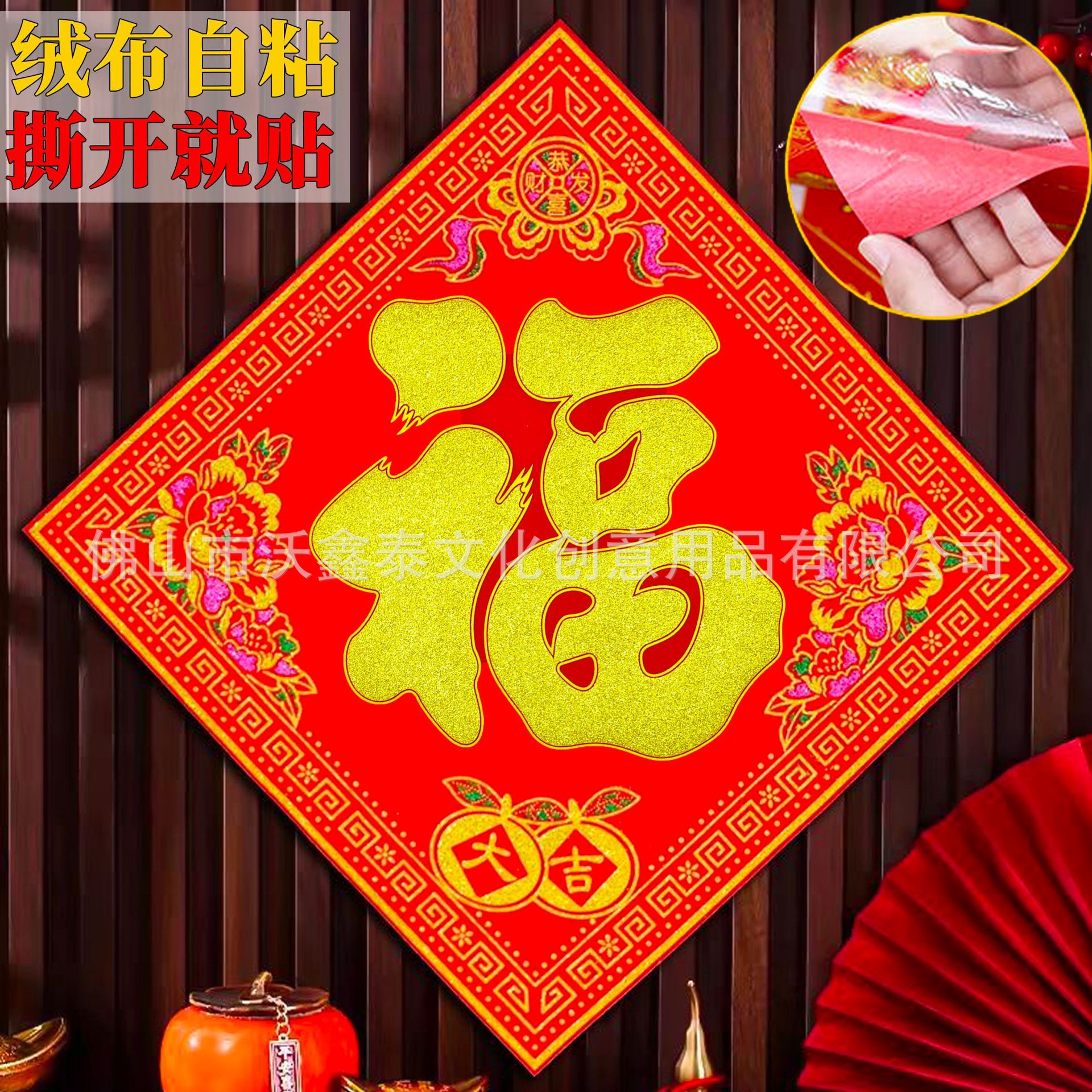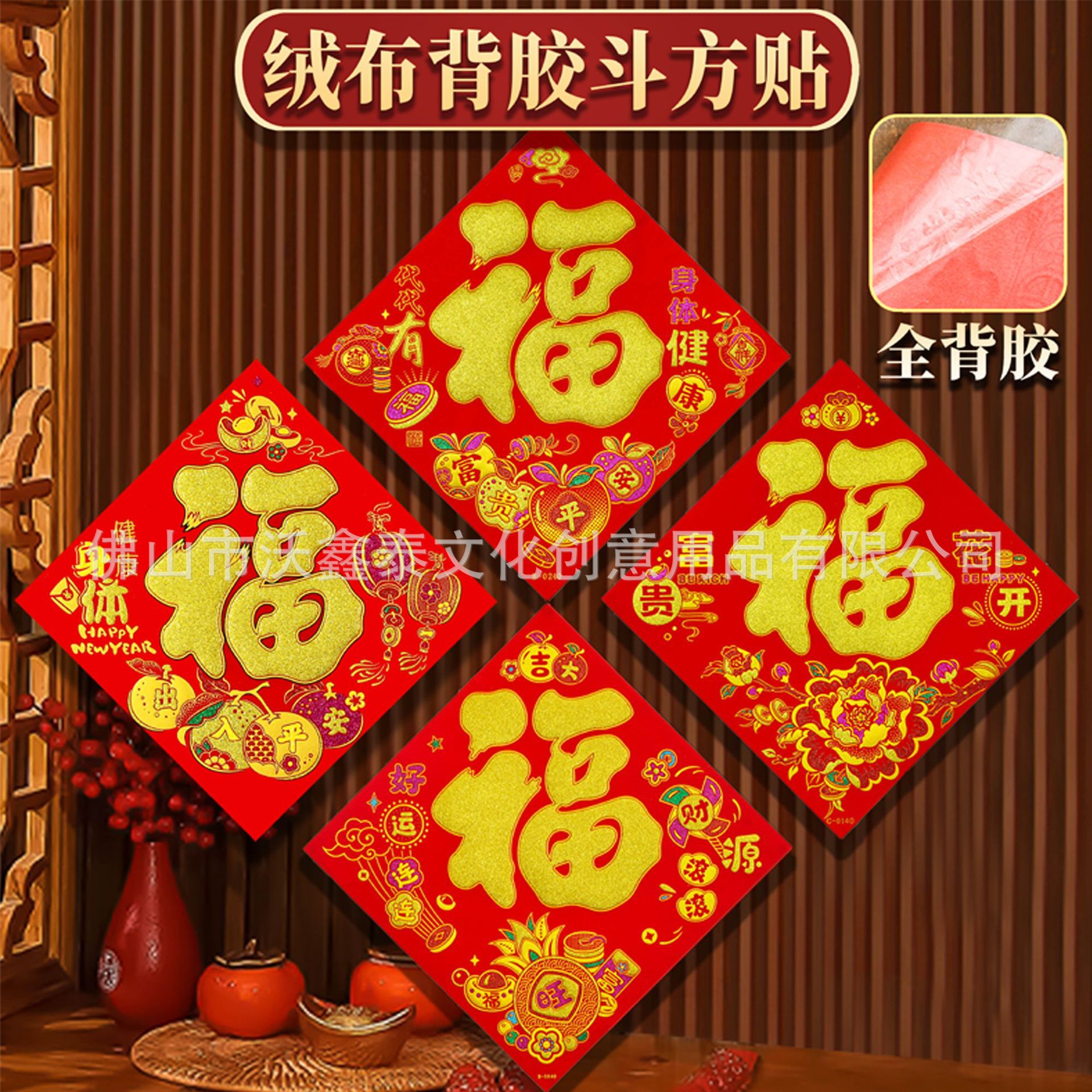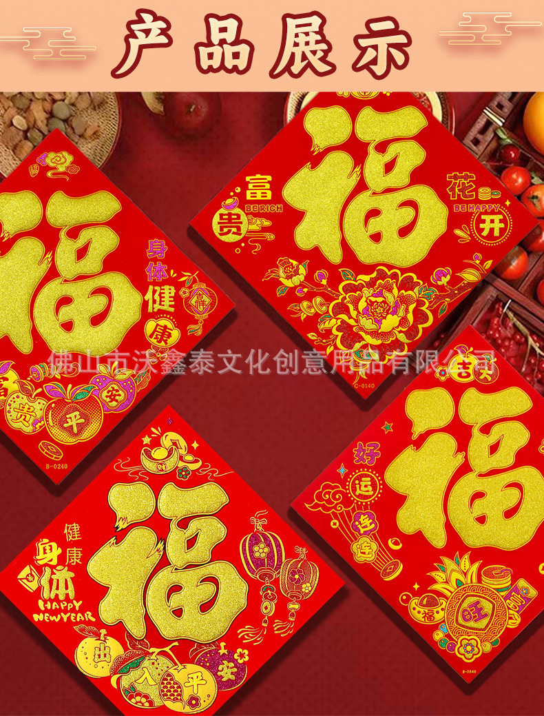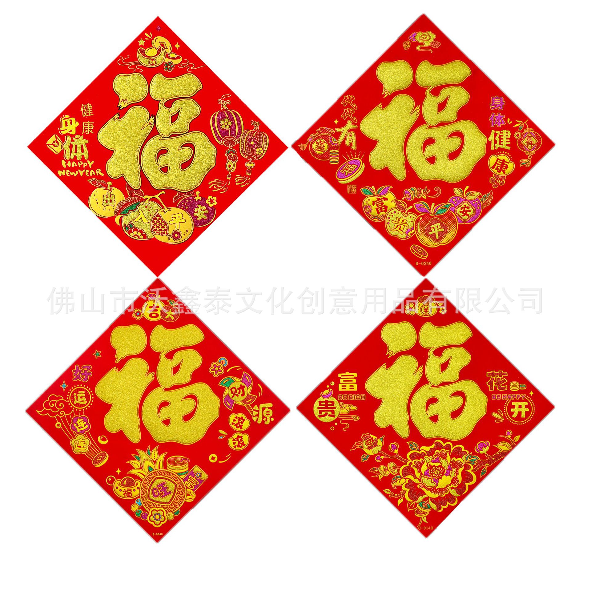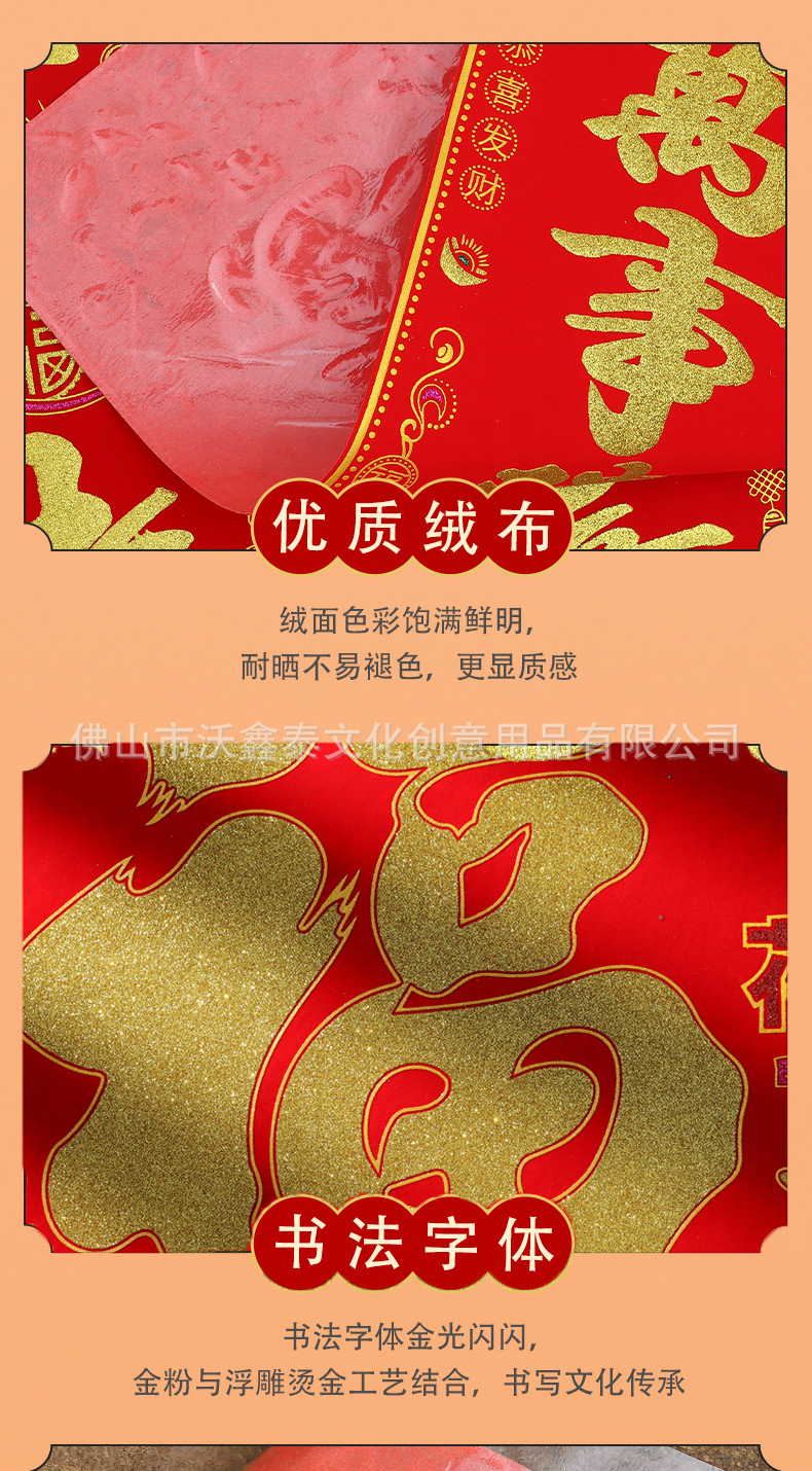 新年绒布福字贴福斗方自粘2026年马年大门贴喜庆装饰门对联批货