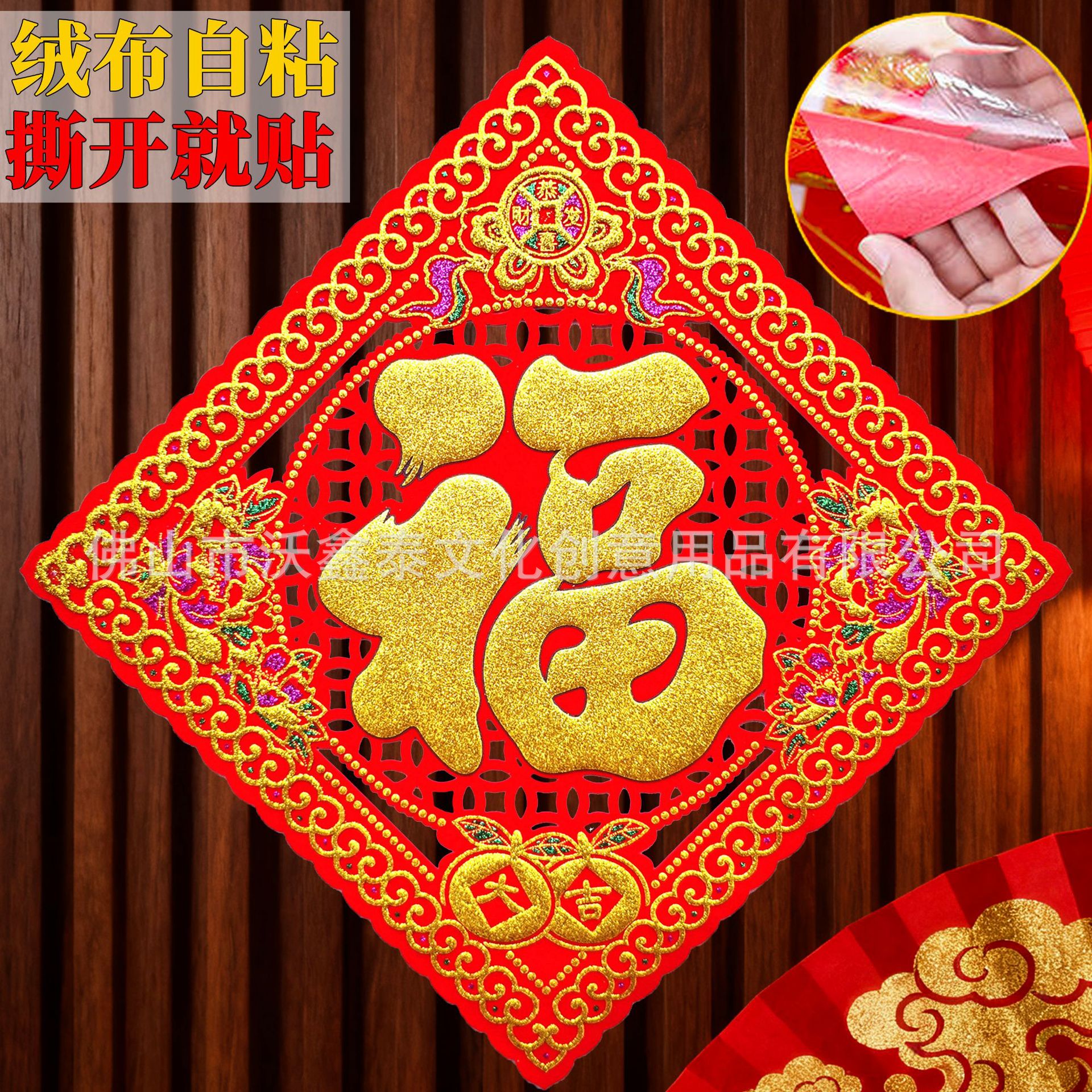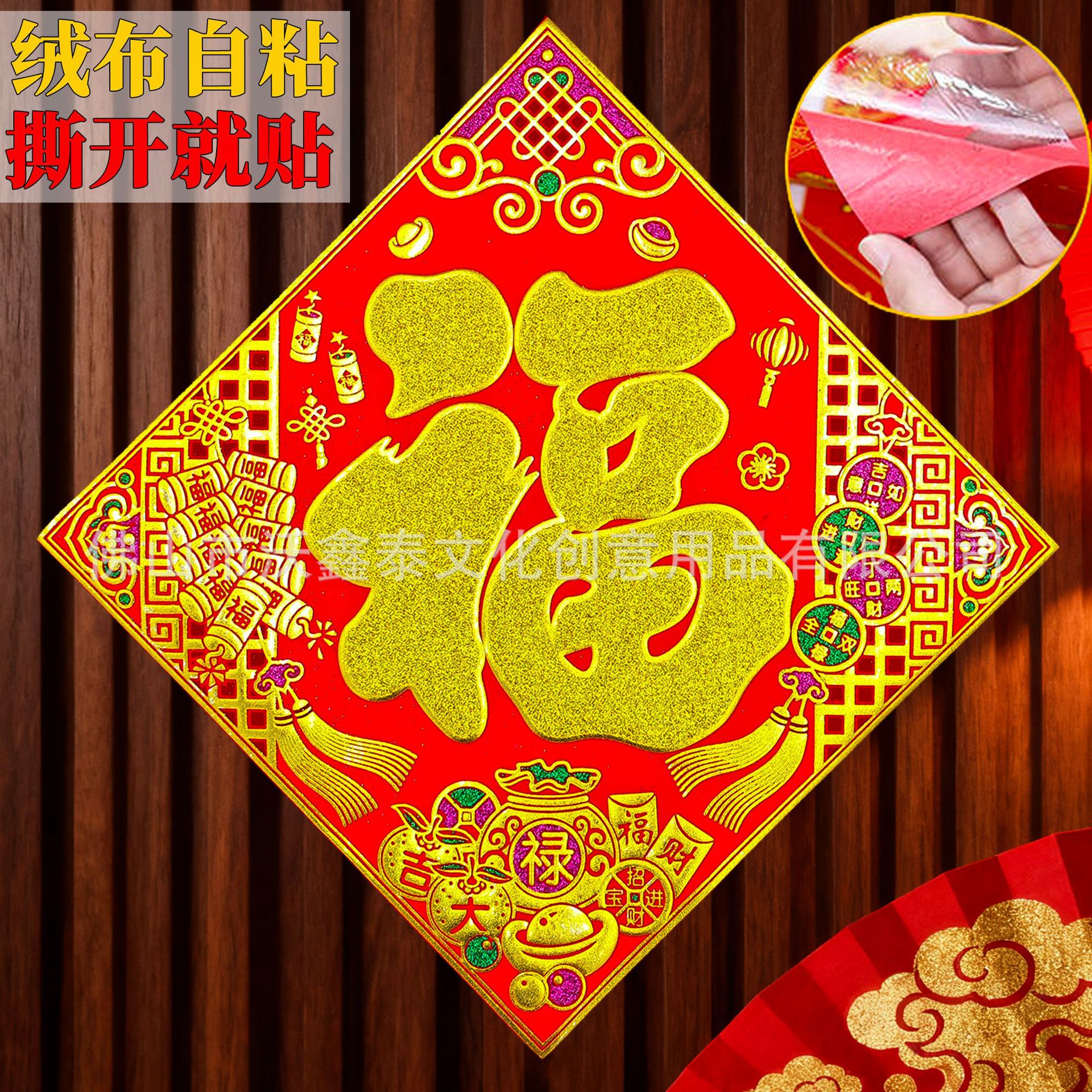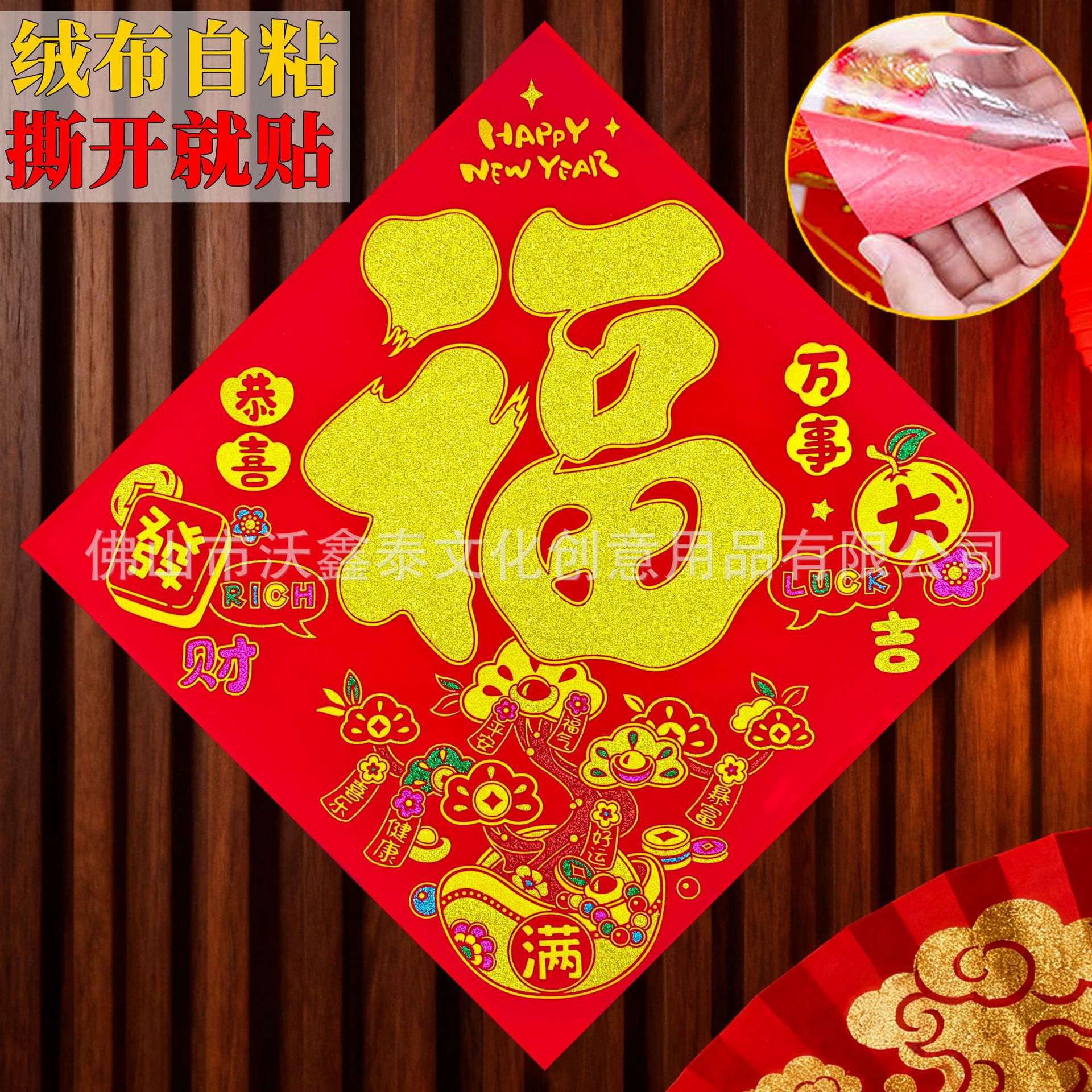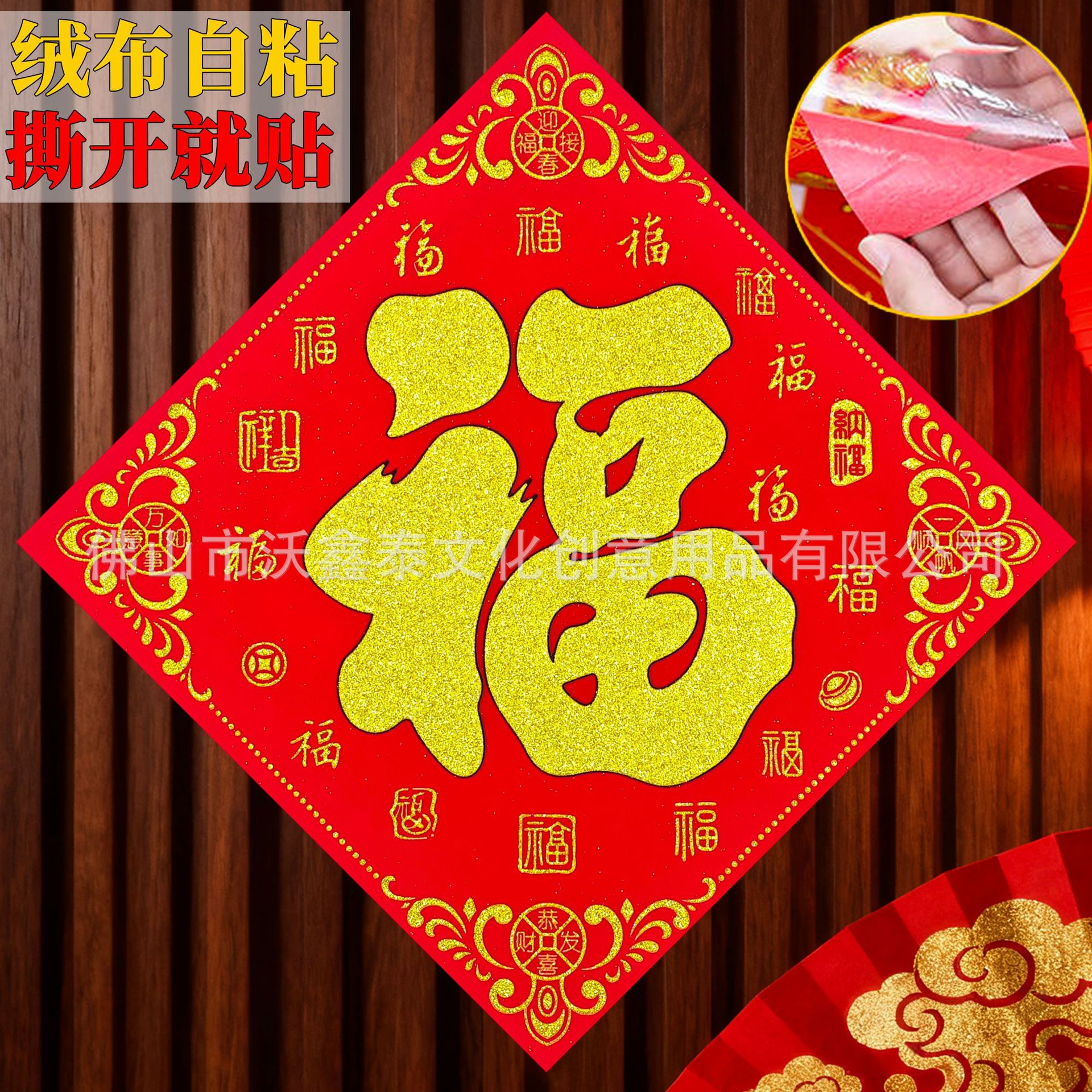 新年绒布福字贴福斗方自粘2026年马年大门贴喜庆装饰门对联批货