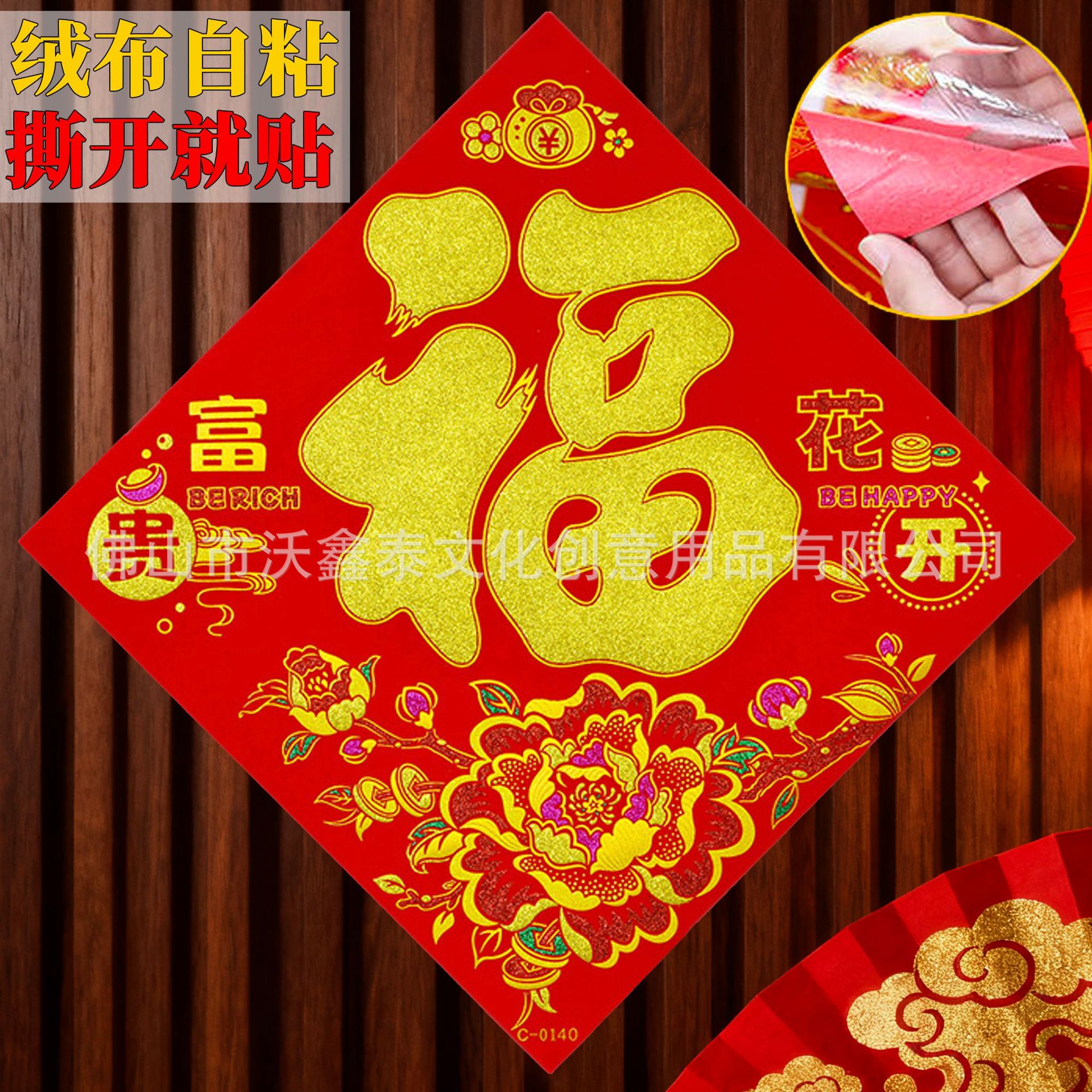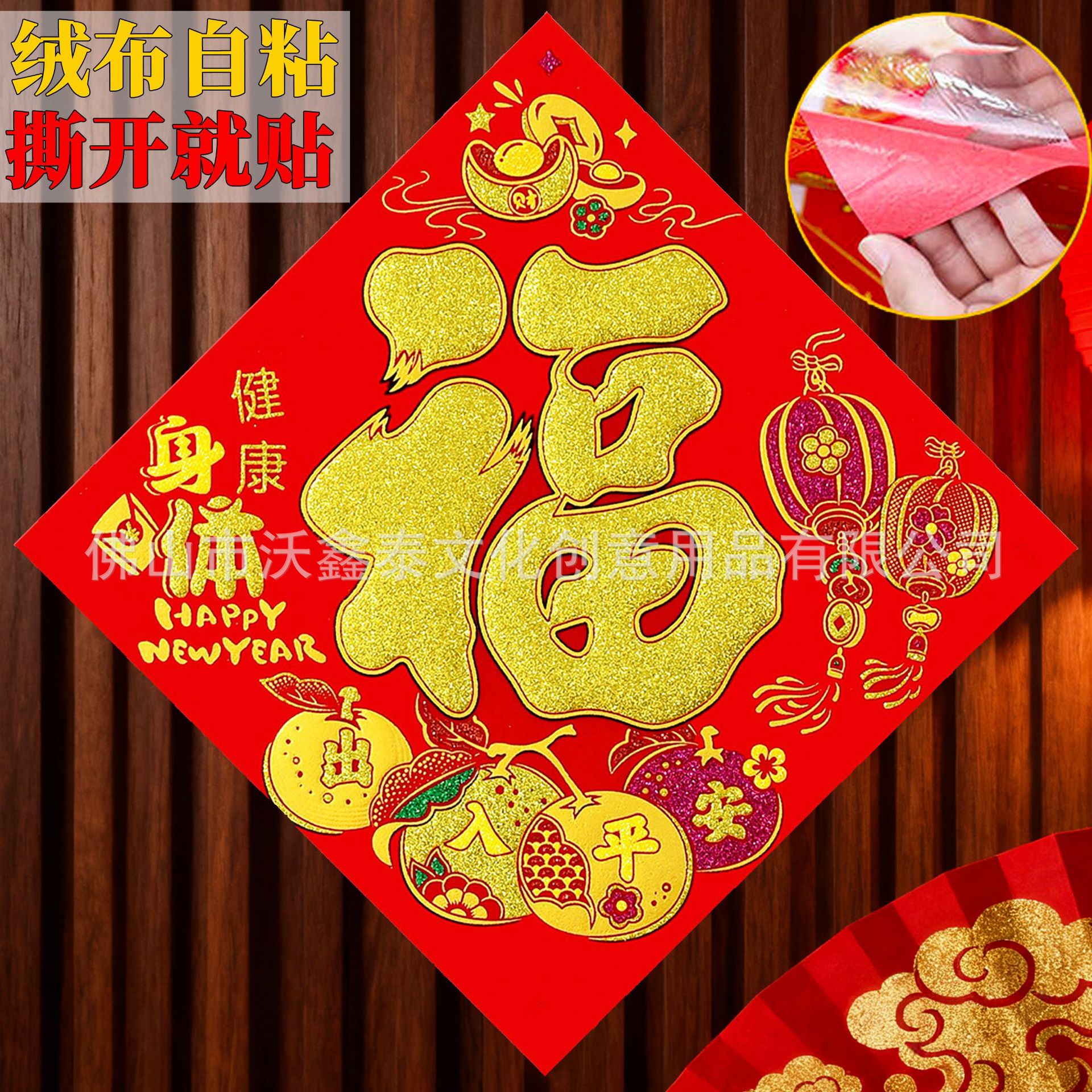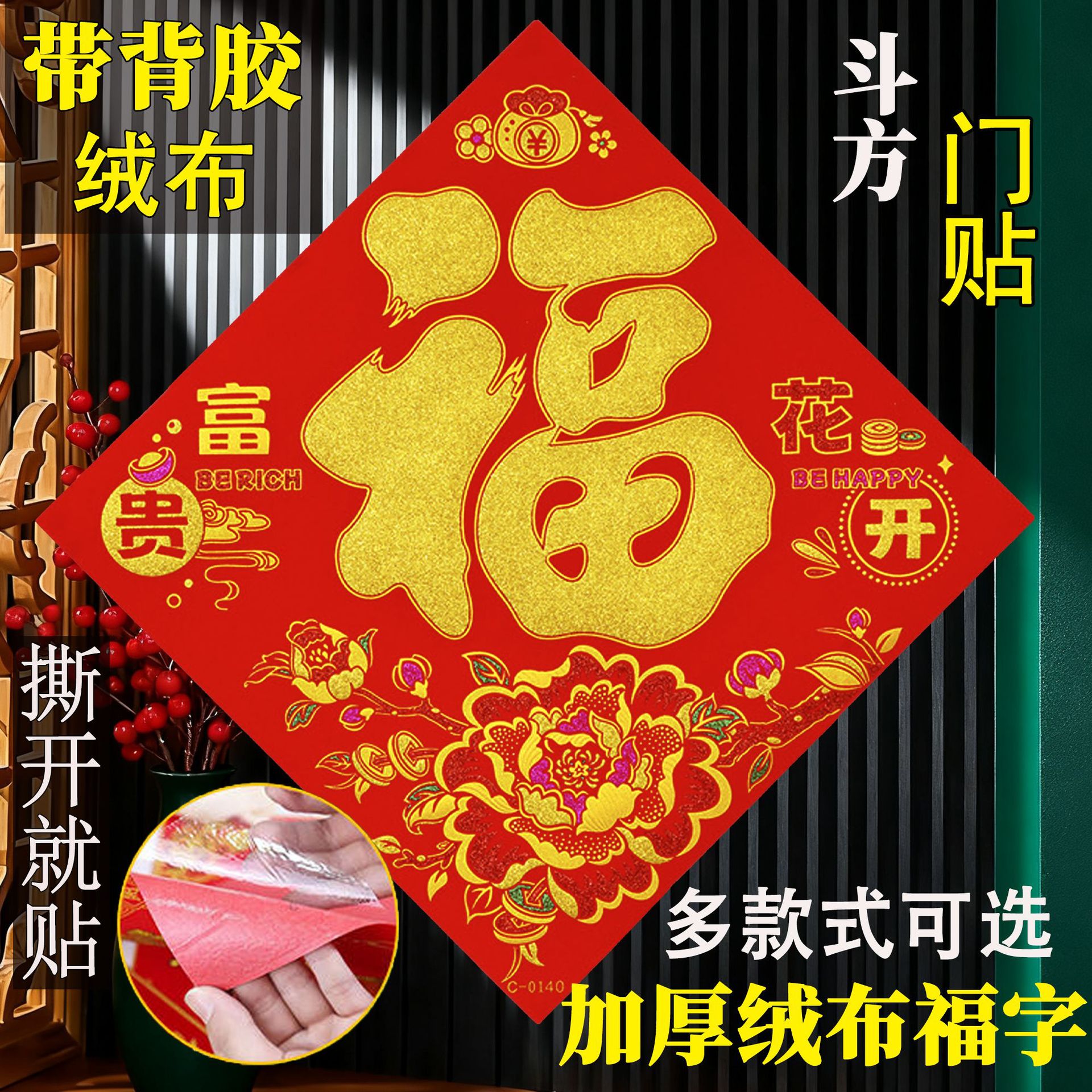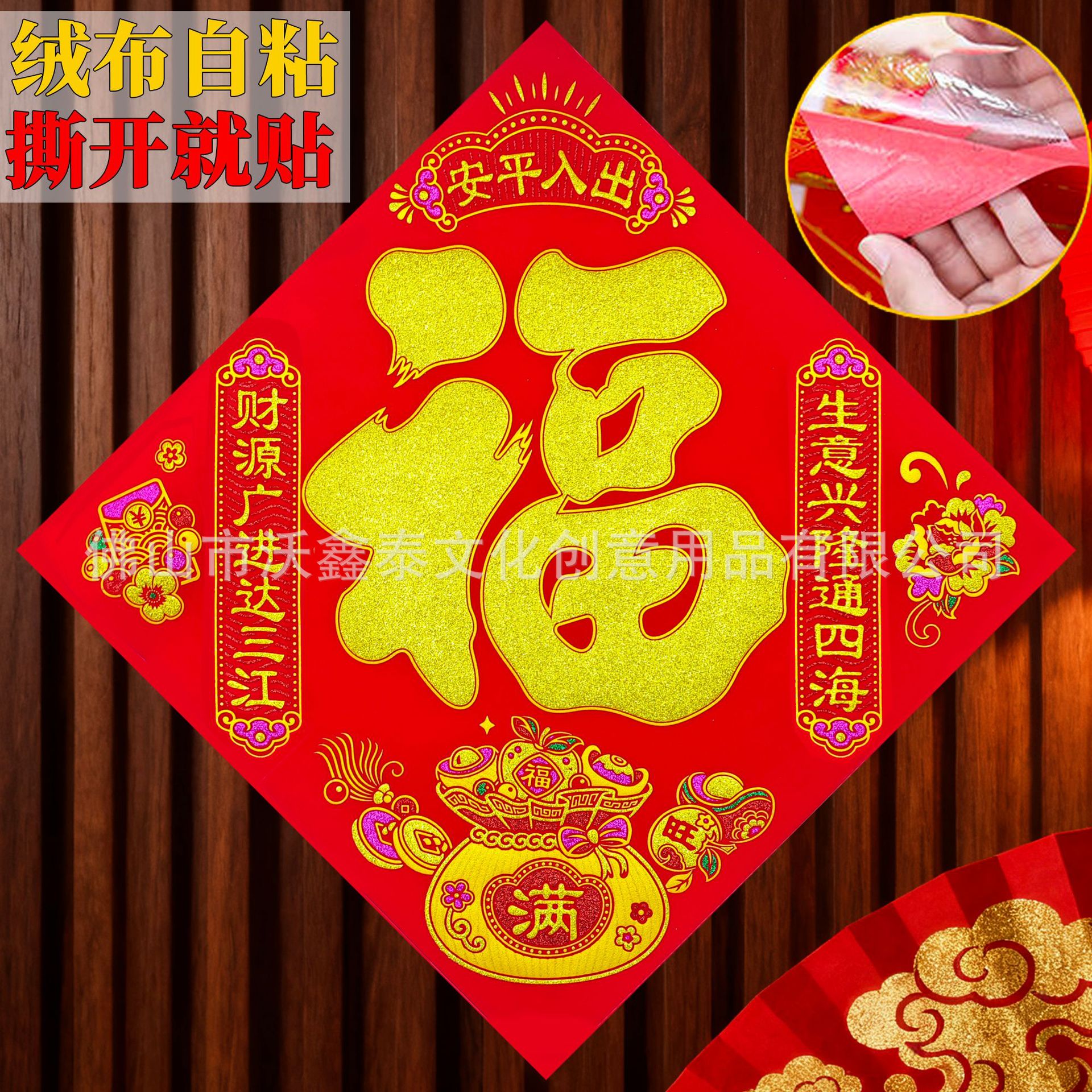 新年绒布福字贴福斗方自粘2026年马年大门贴喜庆装饰门对联批货
