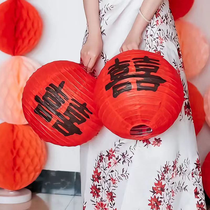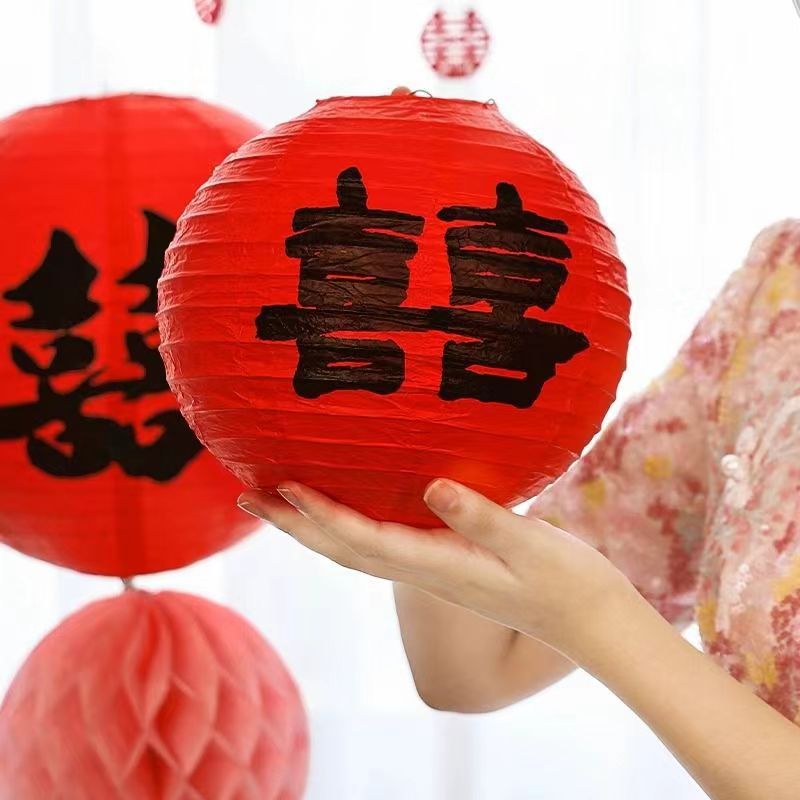 结婚红色喜字灯笼中式婚礼树挂摆件新娘拍照道具布置装饰挂件批发