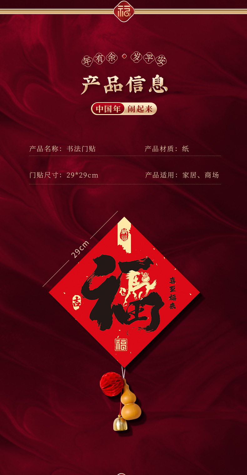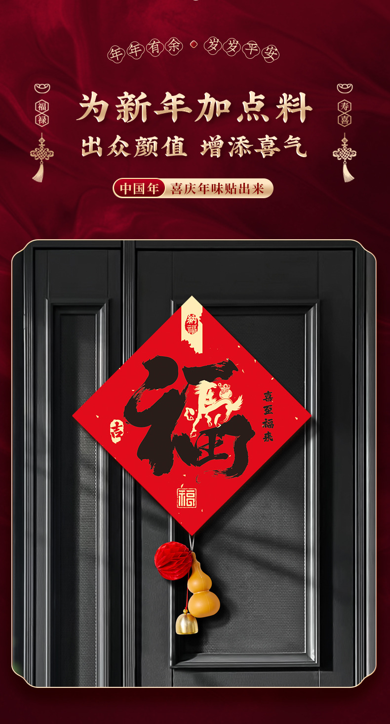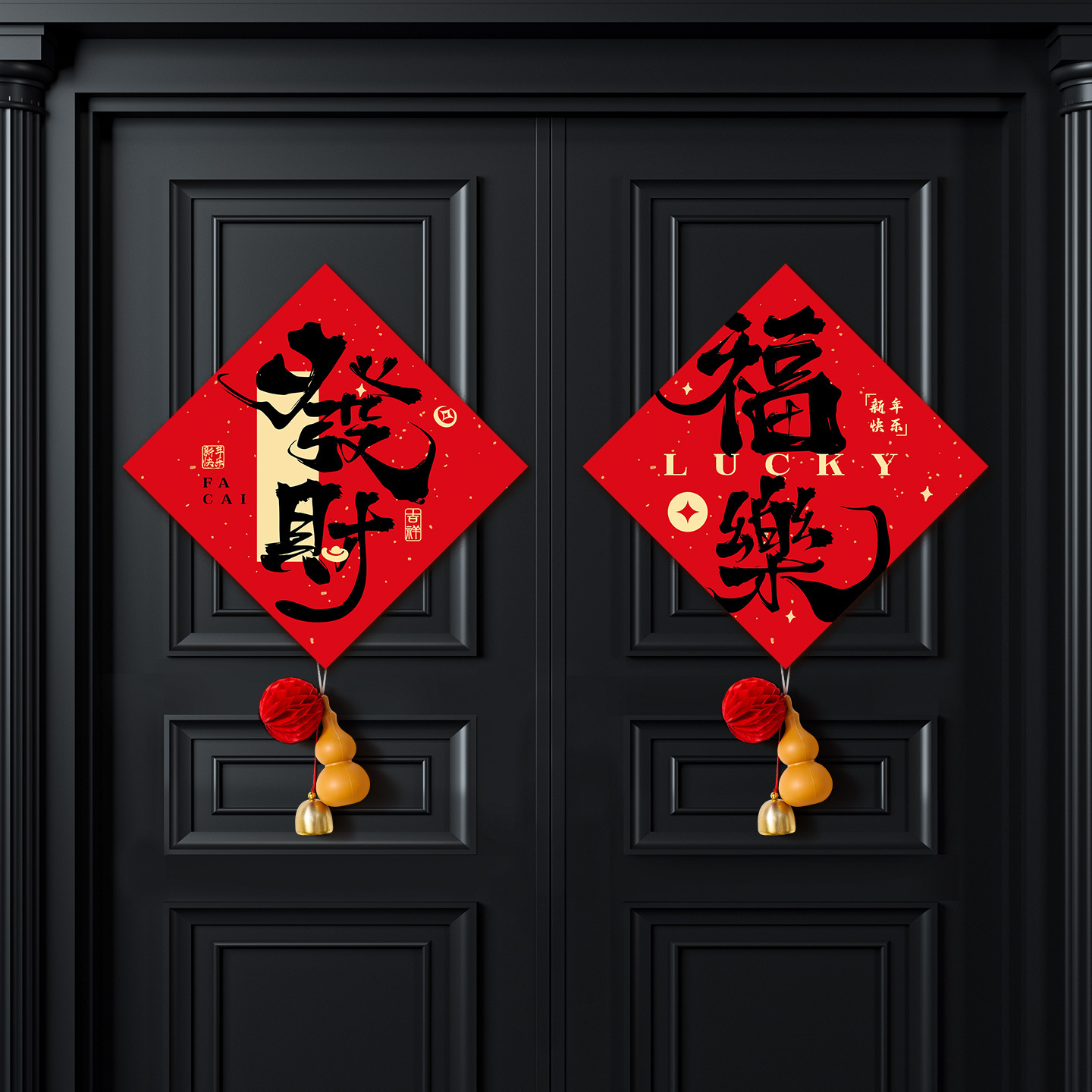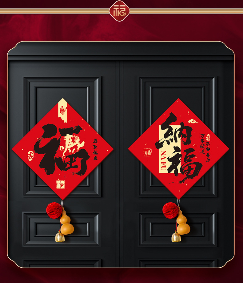 新年元旦春节装饰福字门贴2026马年入户门贴纸斗方福挂件场景布置