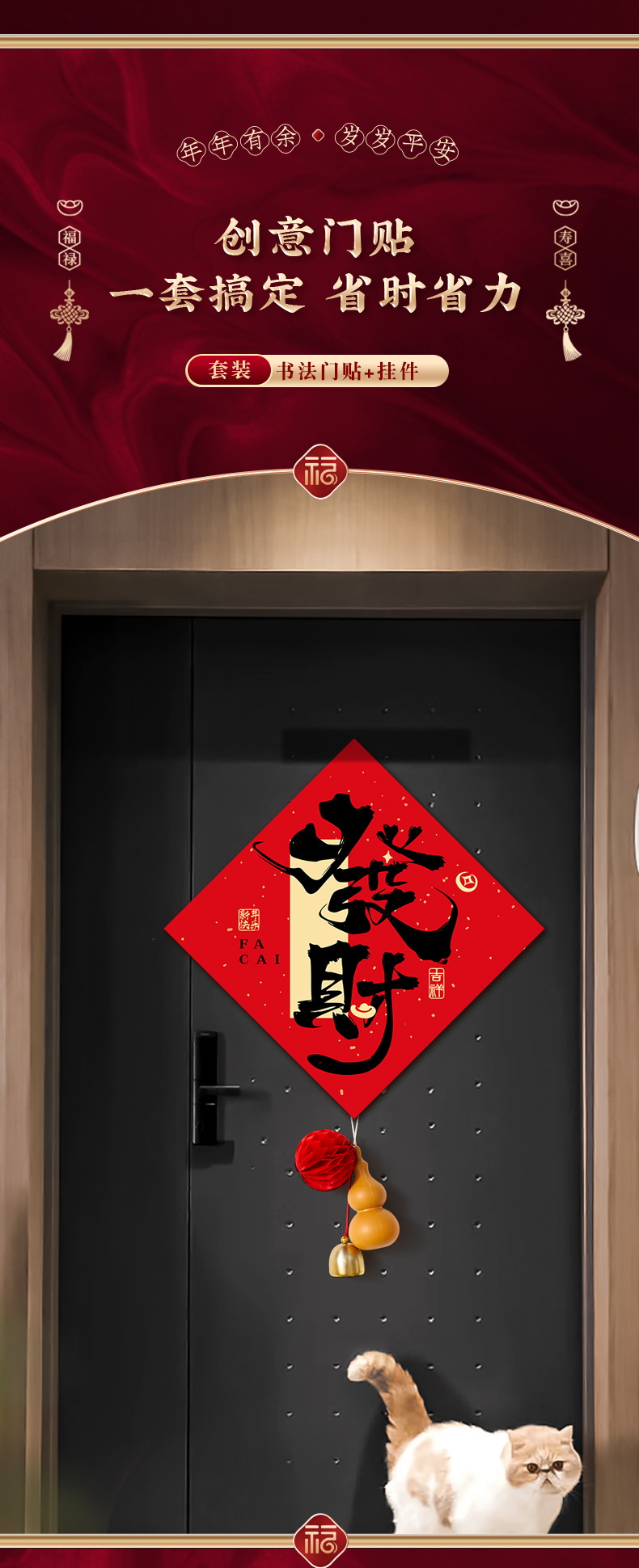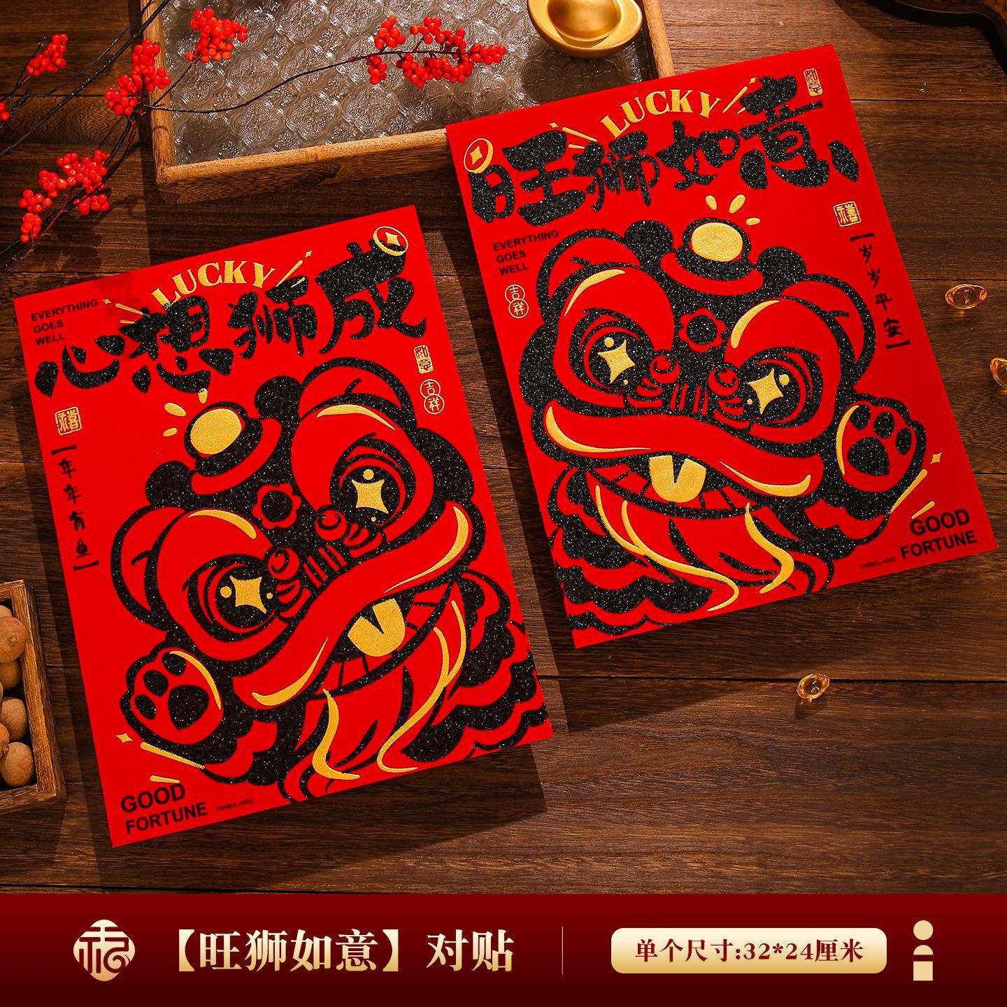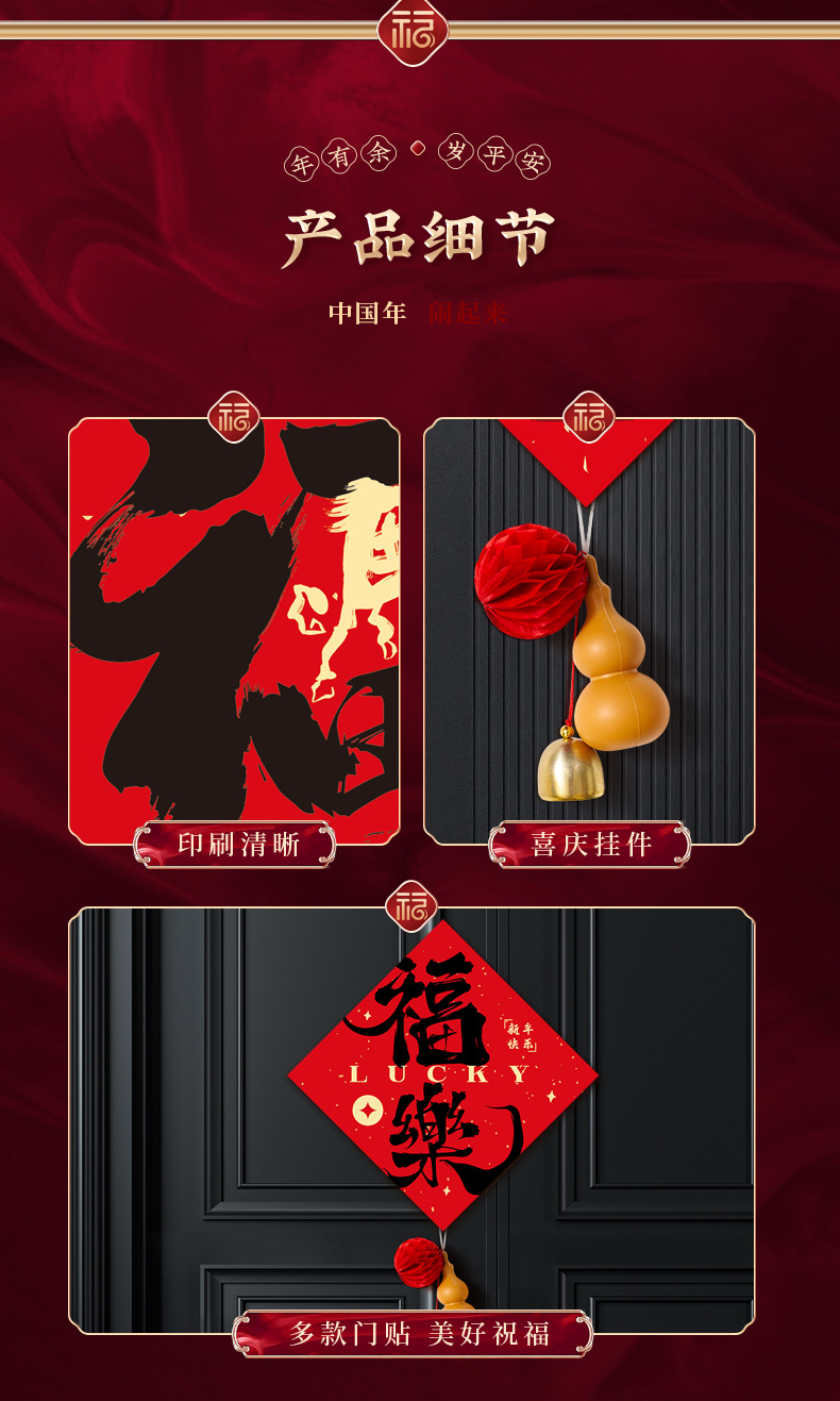 新年元旦春节装饰福字门贴2026马年入户门贴纸斗方福挂件场景布置