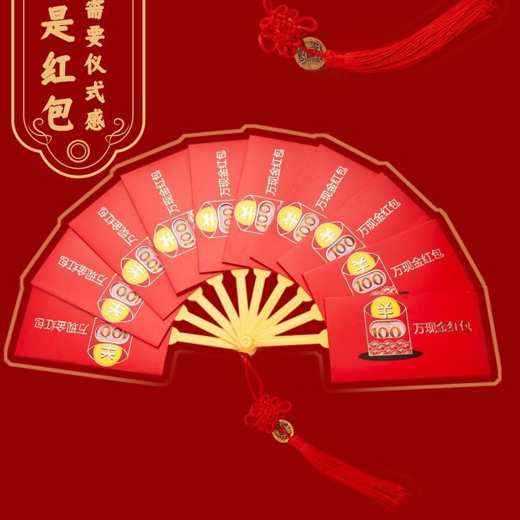 2026年新款马年醒狮红包镂空狮子头红包袋个性扇形大吉大利