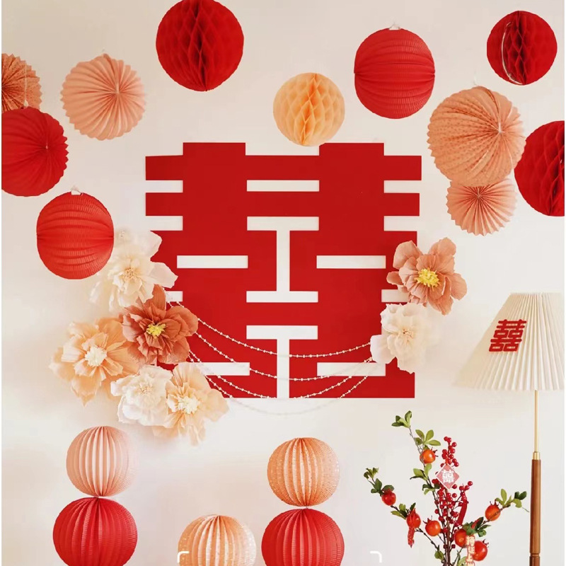 新年装饰红色系纸灯笼古风灯笼节日喜庆结婚囍字店铺商场橱窗挂饰
