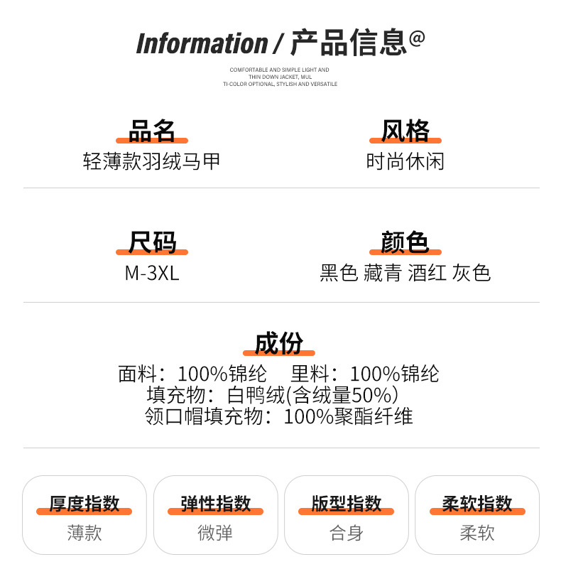 优衣同款男士羽绒马甲轻薄白鸭绒保暖马夹纯色立领背心坎肩羽绒服