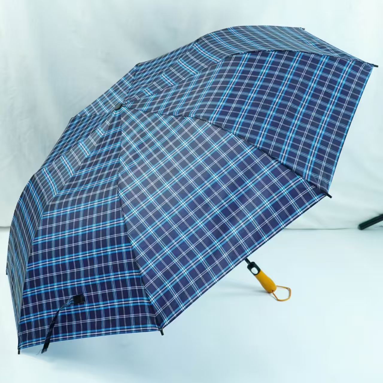 涤丝格子两折伞 27寸8骨高尔夫二折伞防木手柄大尺寸双人伞外贸