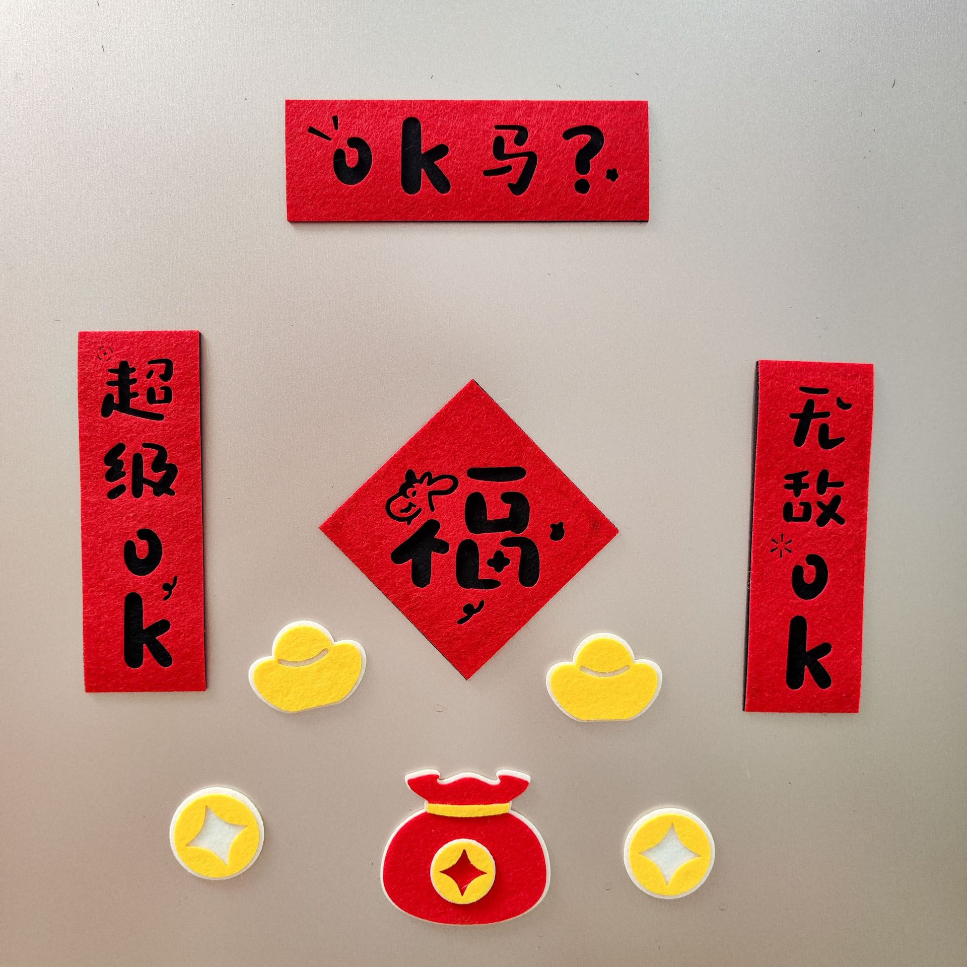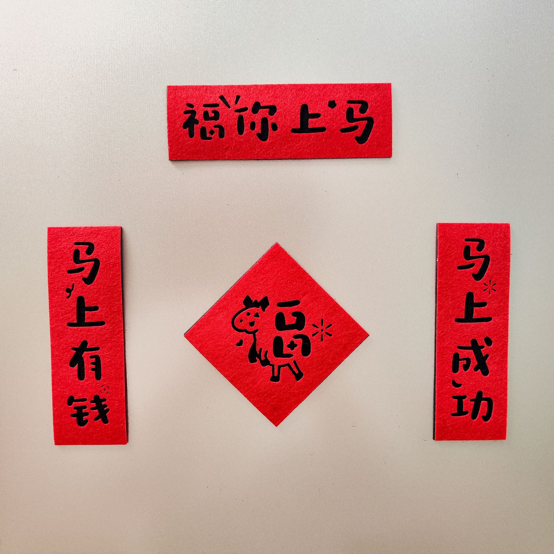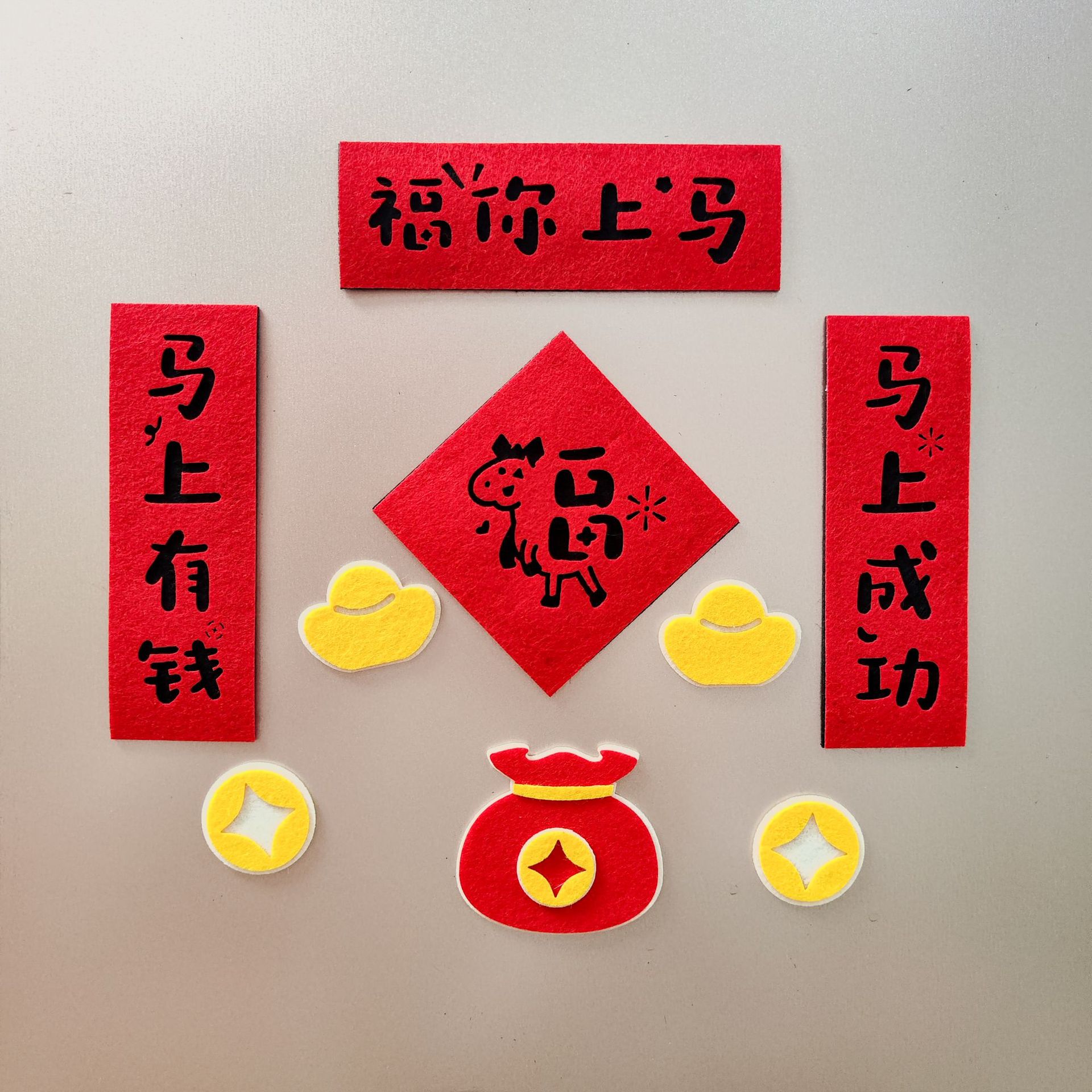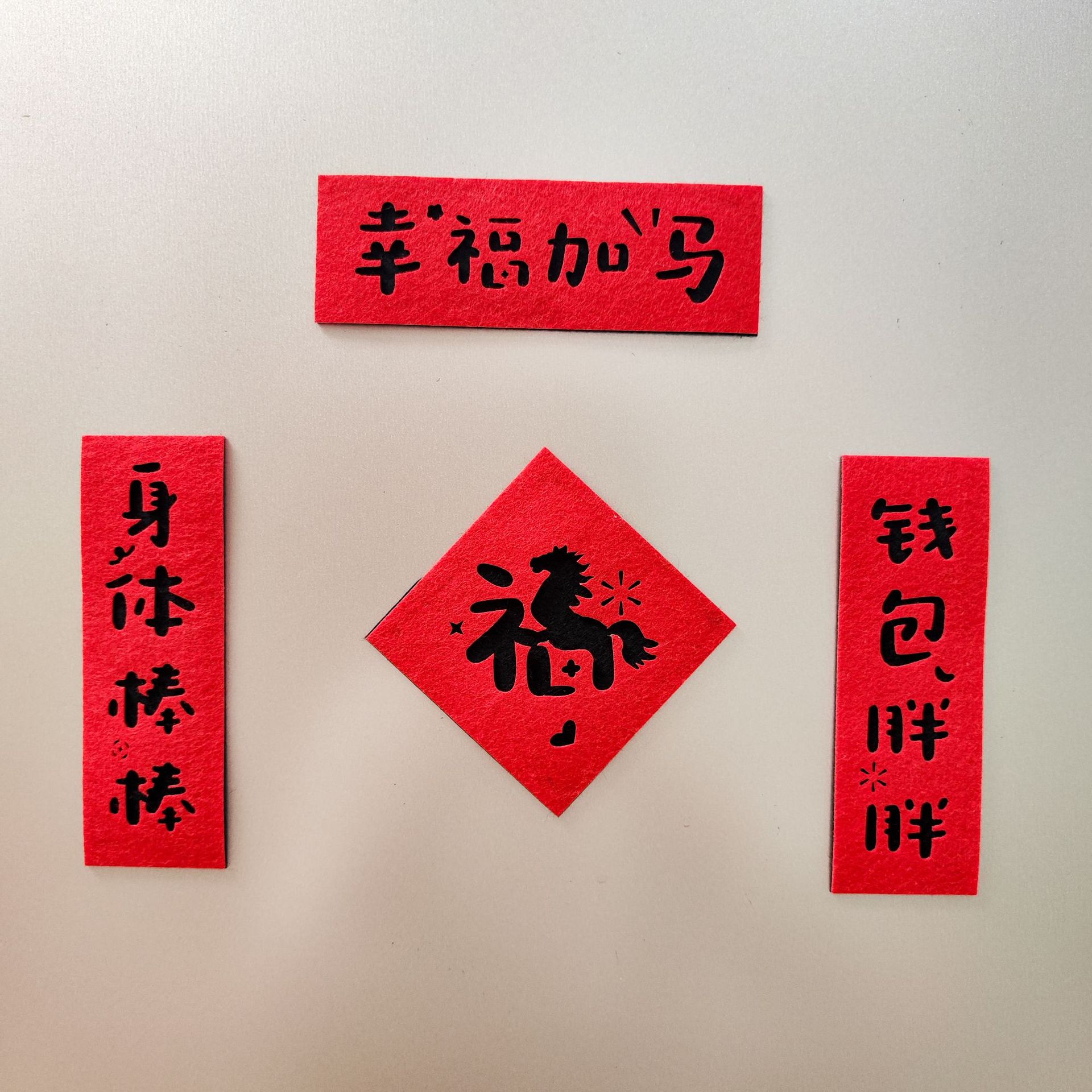 2026马年磁吸冰箱贴迷你对联新年装饰毛毡小春联搞笑门贴福字钱袋