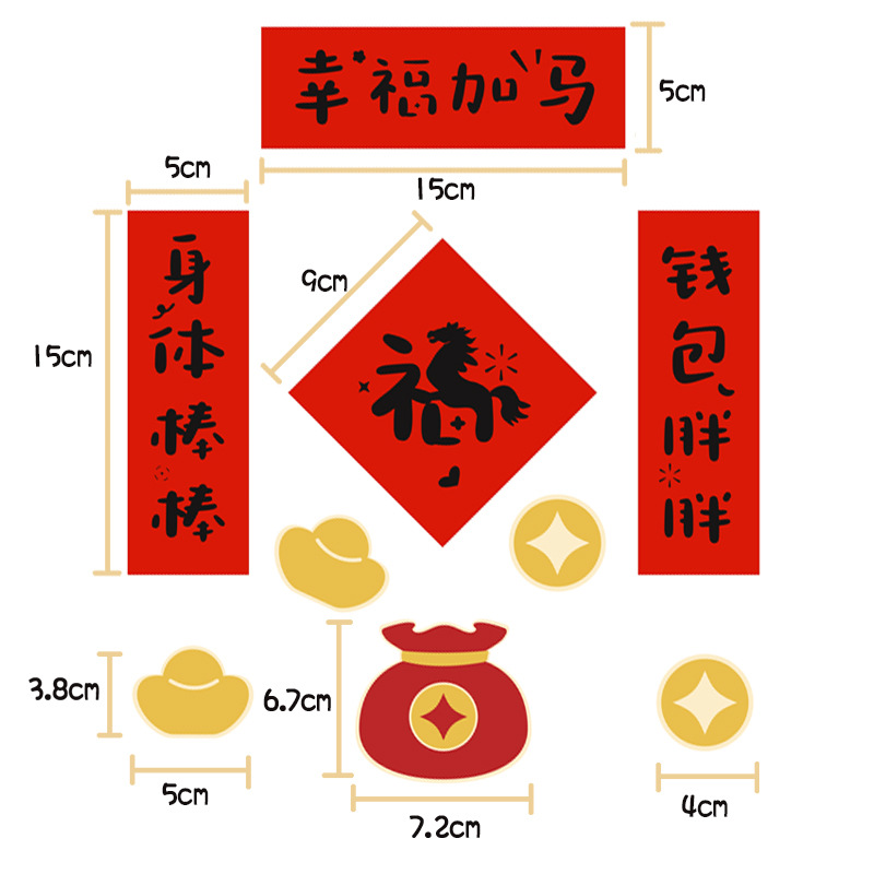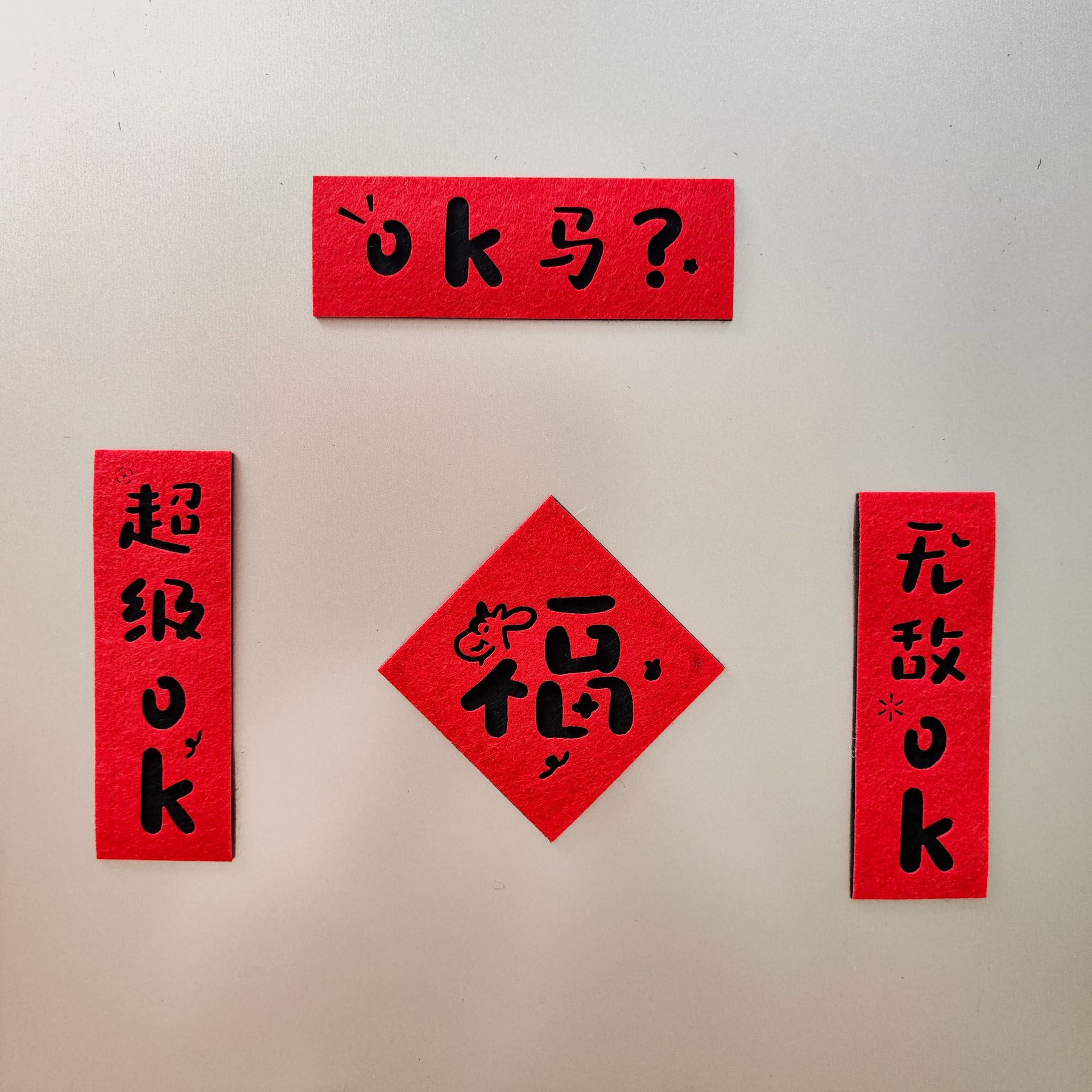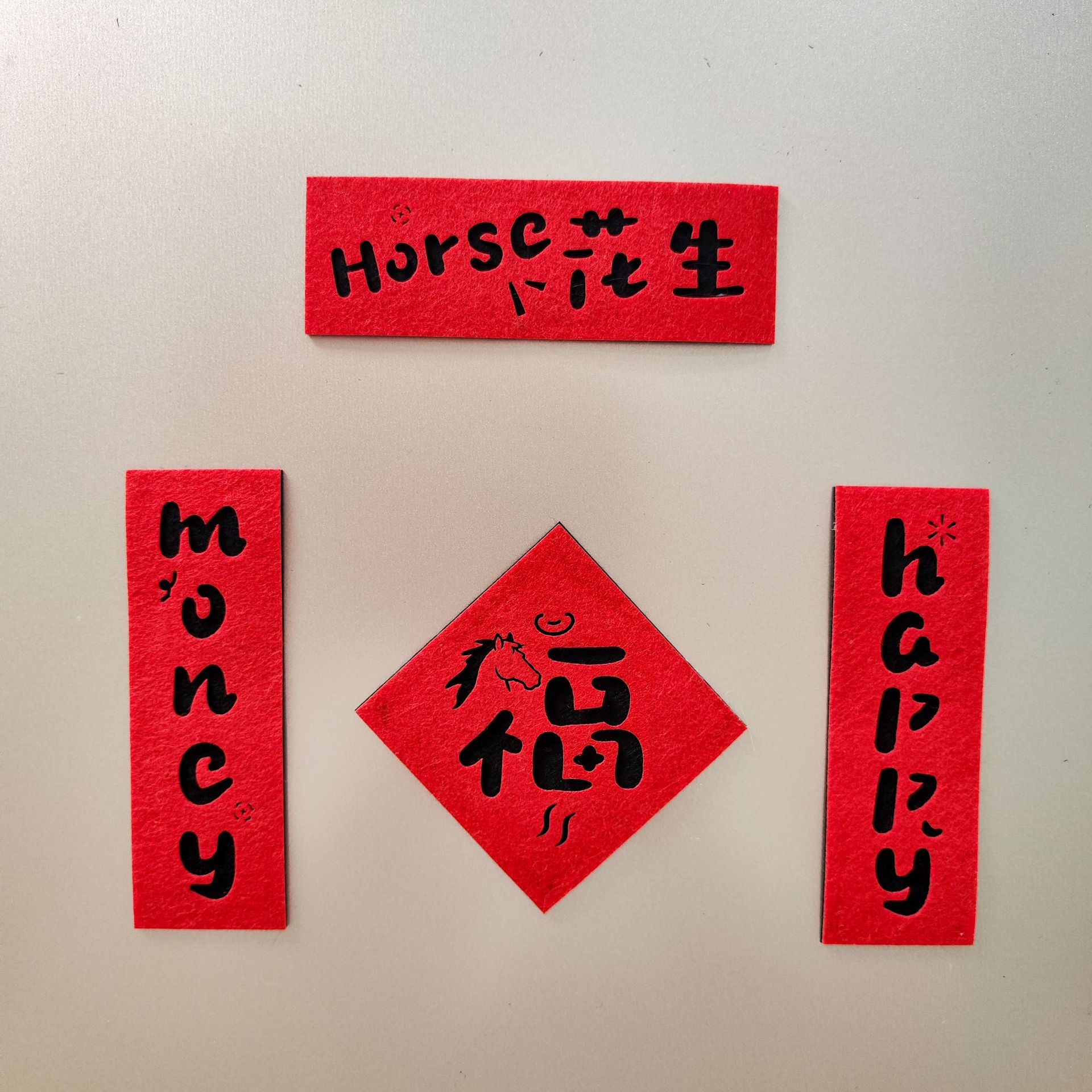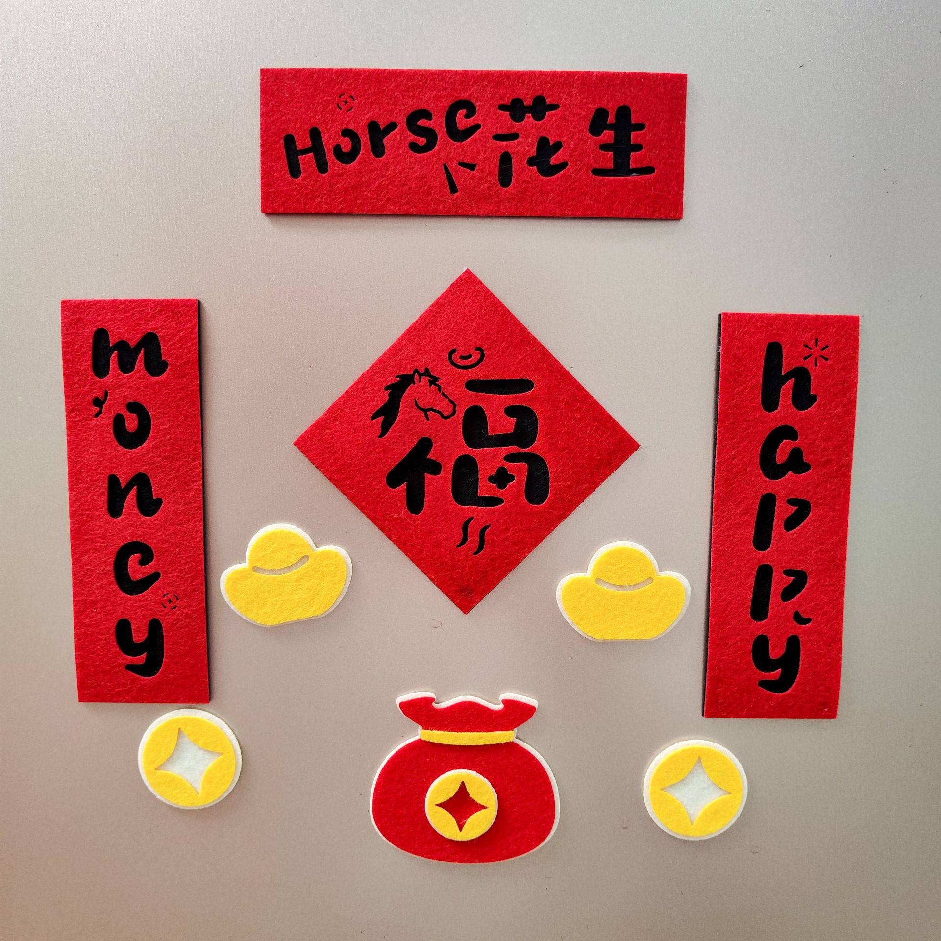 2026马年磁吸冰箱贴迷你对联新年装饰毛毡小春联搞笑门贴福字钱袋