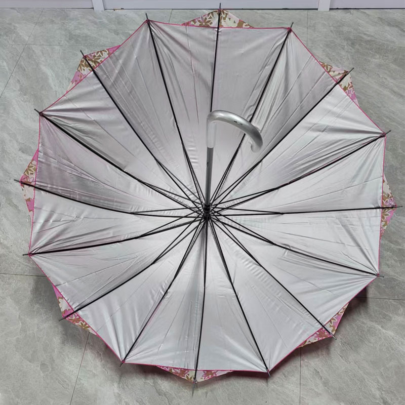素涤丝银胶布花色16K弯钩伞两层布交叉长柄雨伞外贸纯色南美雨伞