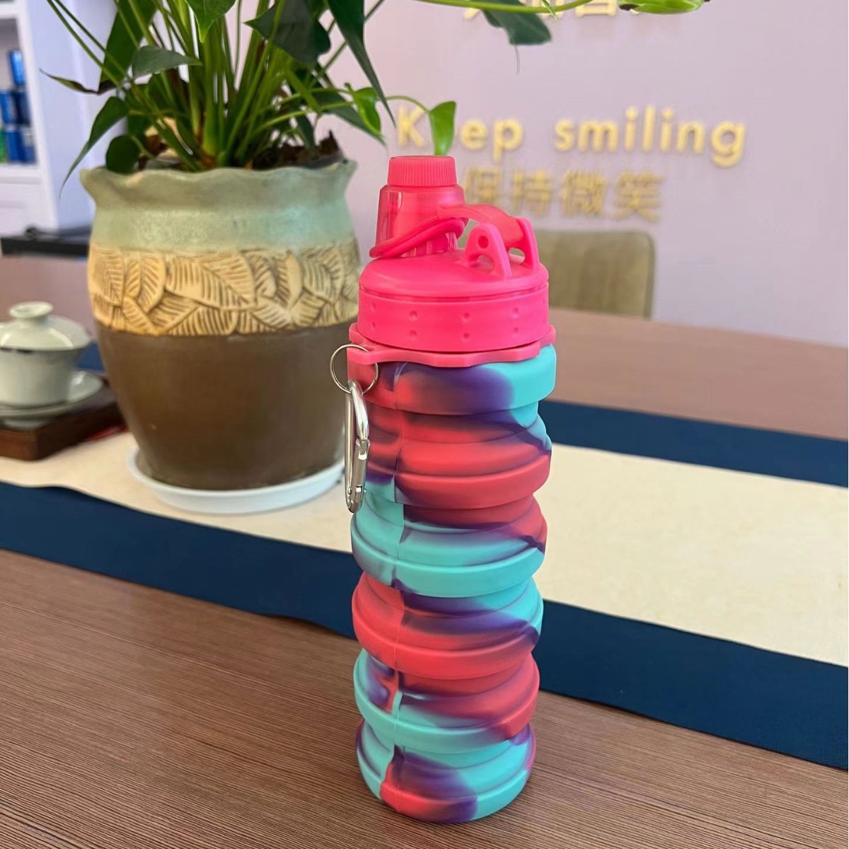 厂家硅胶伸缩运动水壶 跨境户外500ml创意户外旅行瓶便携折叠杯子
