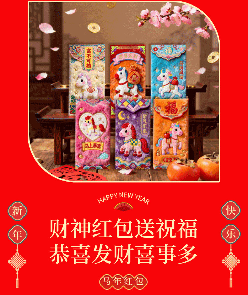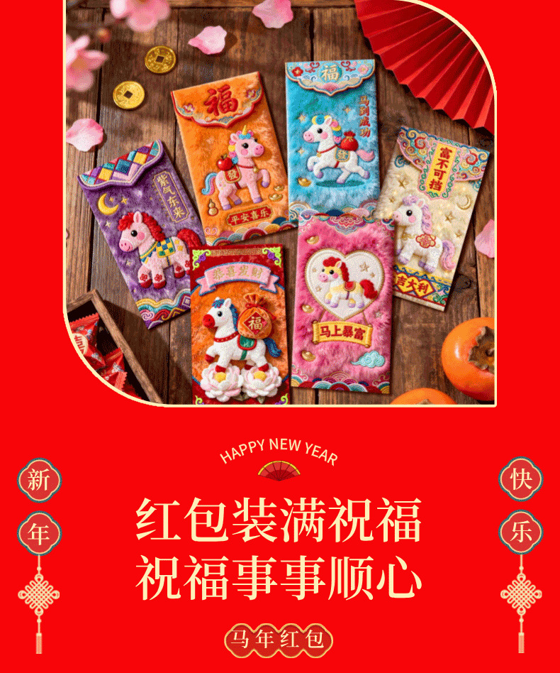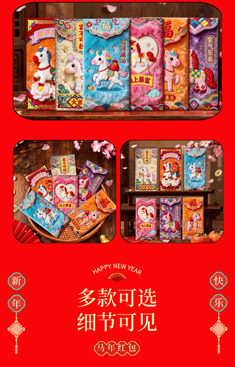 马年红包新款5D毛绒刺绣风格婚庆仪式感红包袋新年通用高档利是封