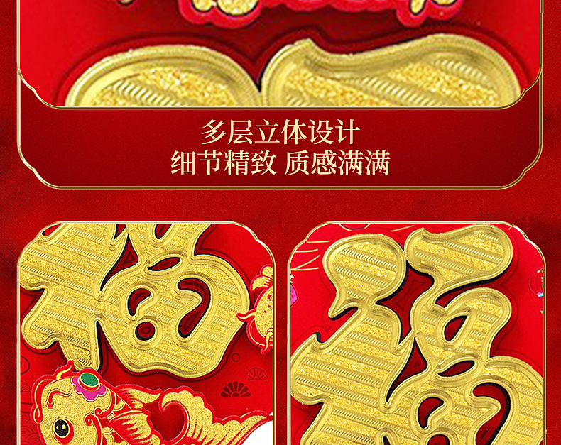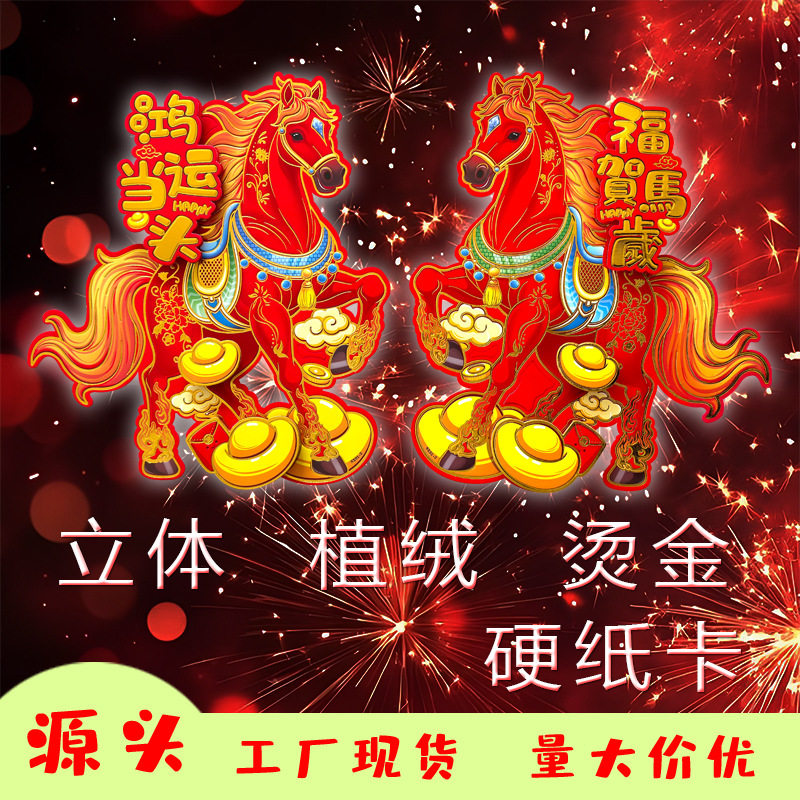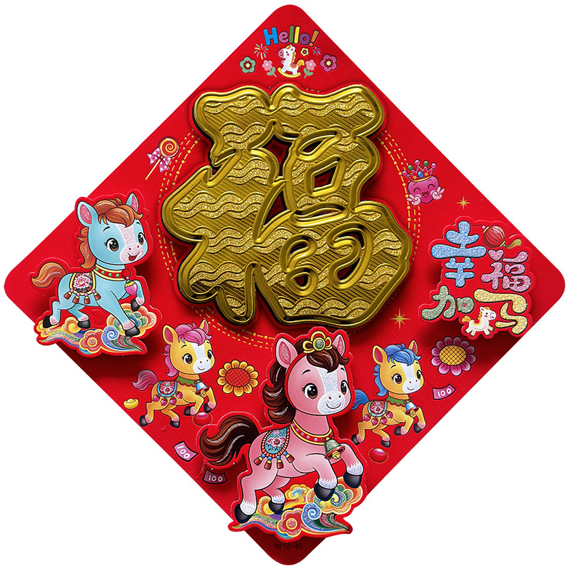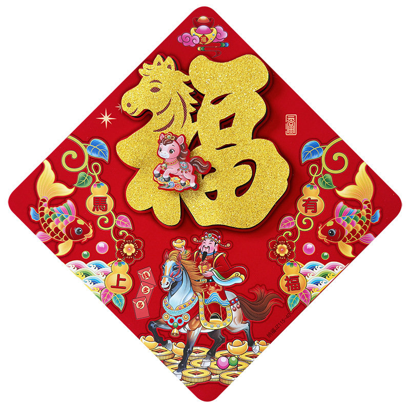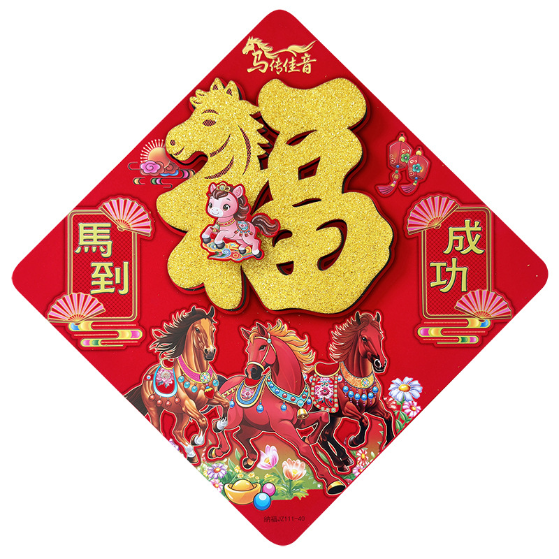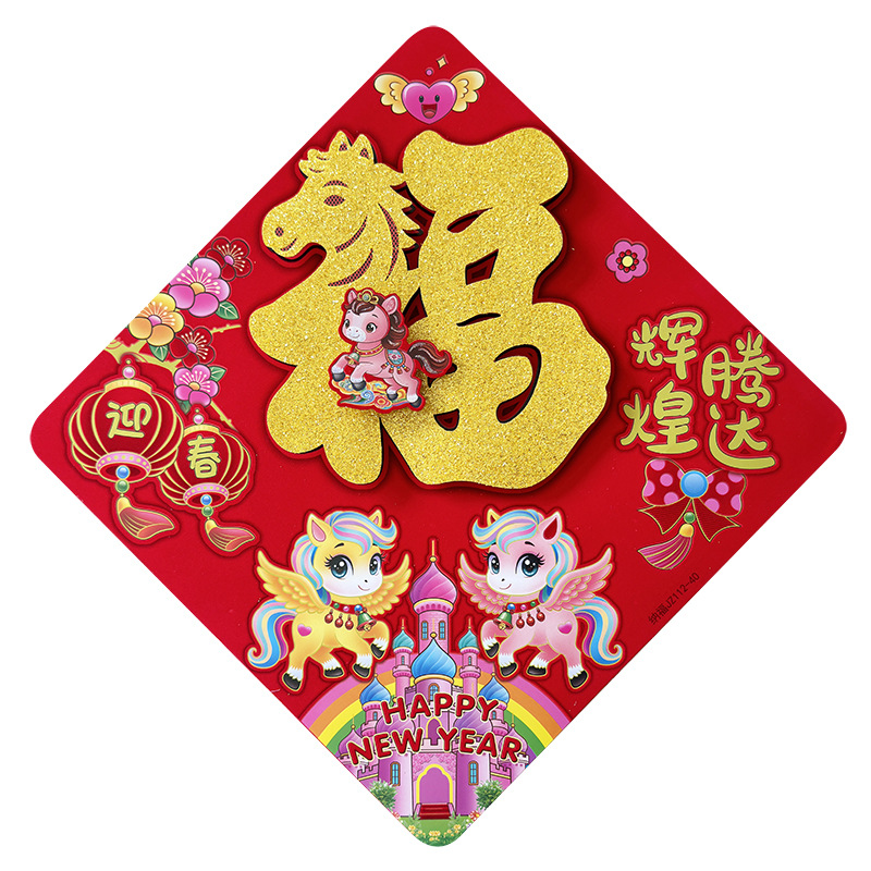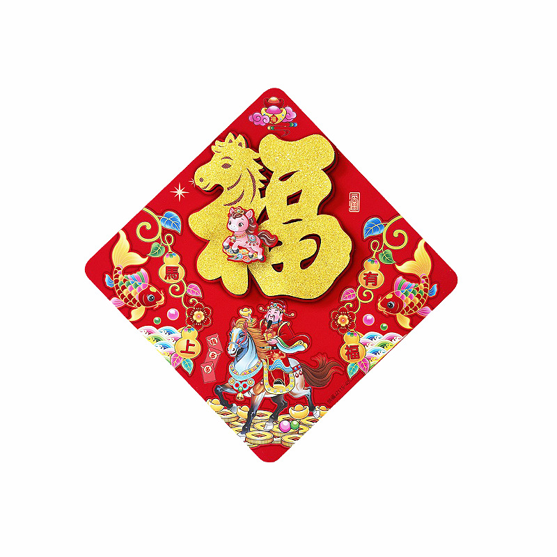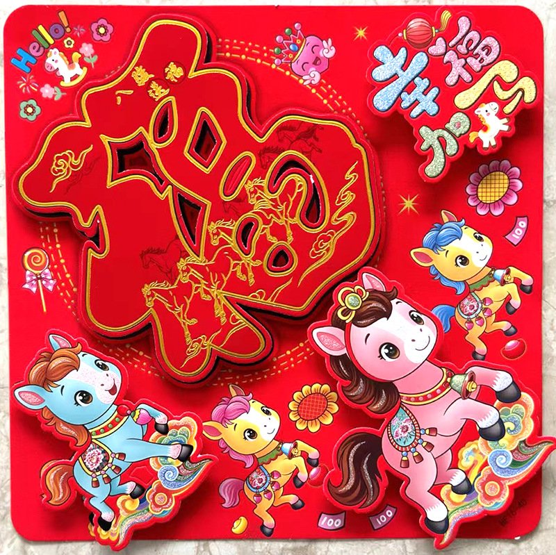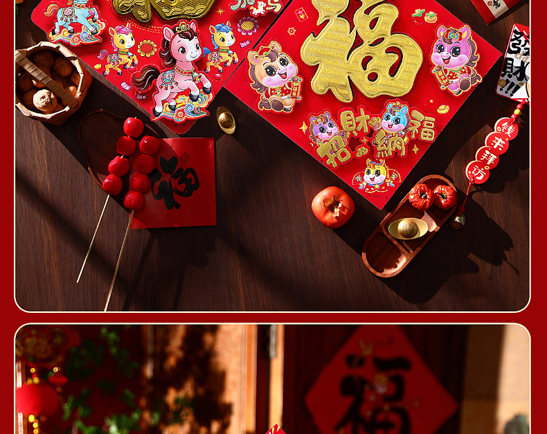 2026福字门贴自粘式马年生肖植绒立体福字贴纸烫金大门春节福字贴