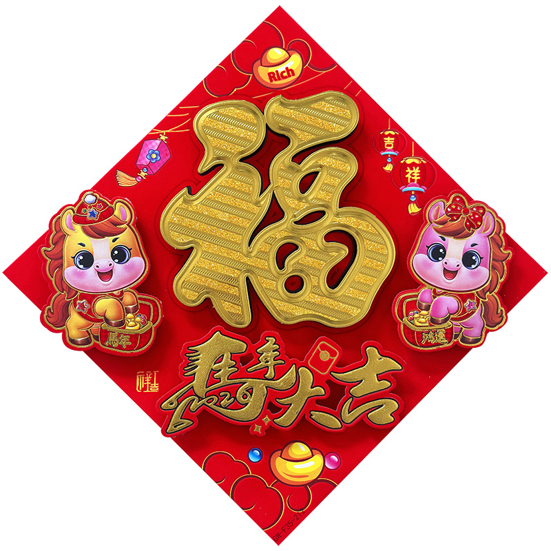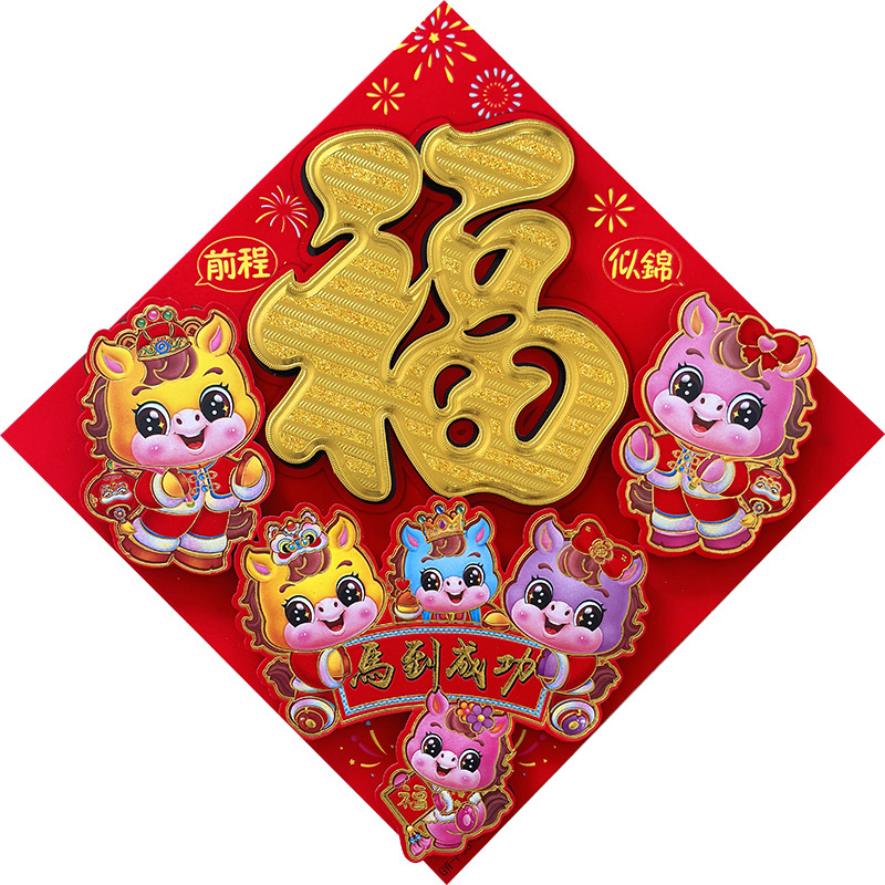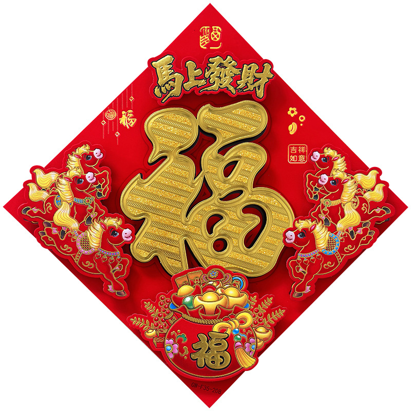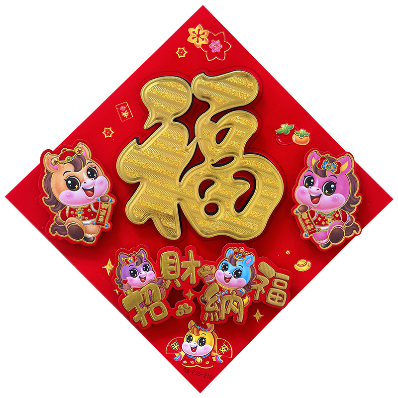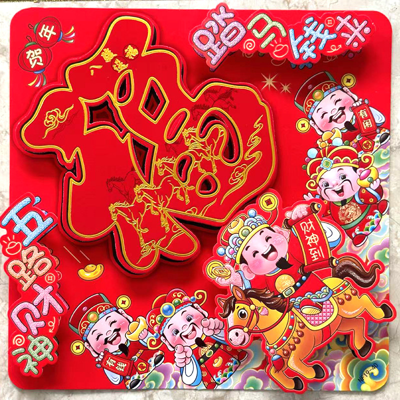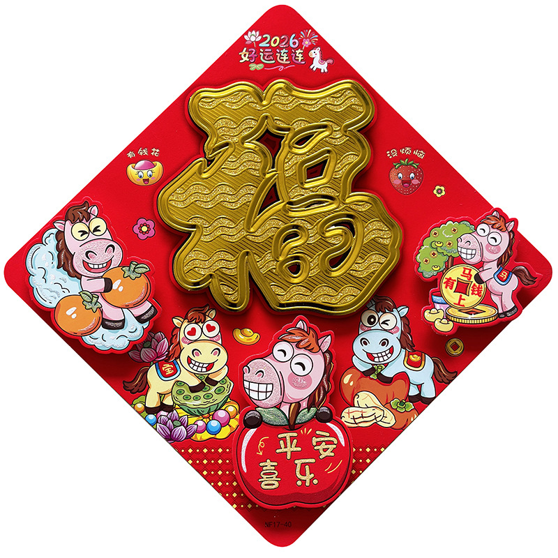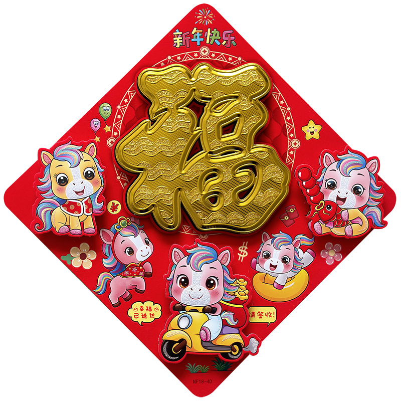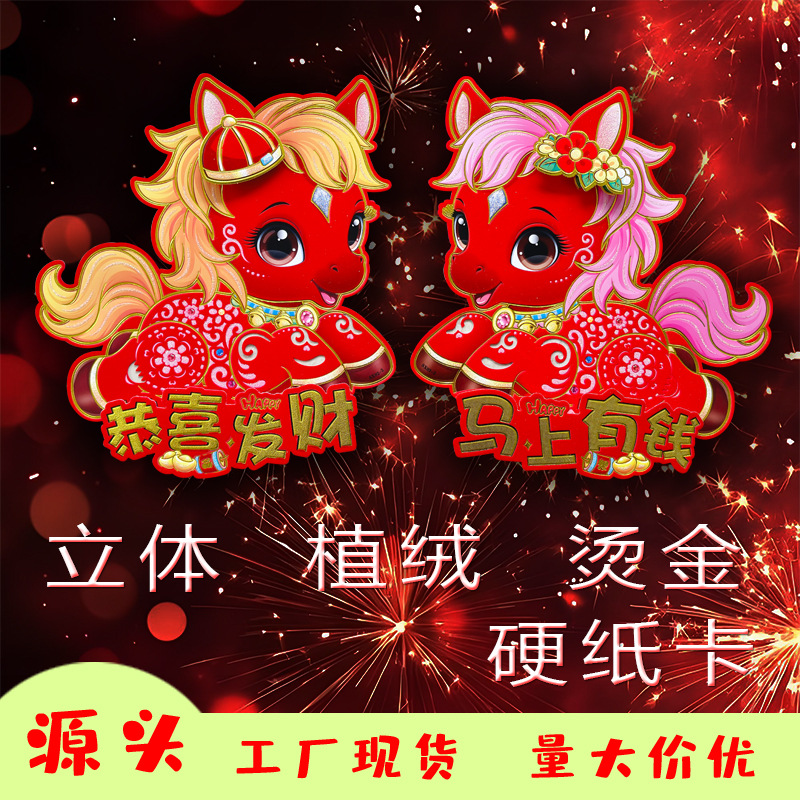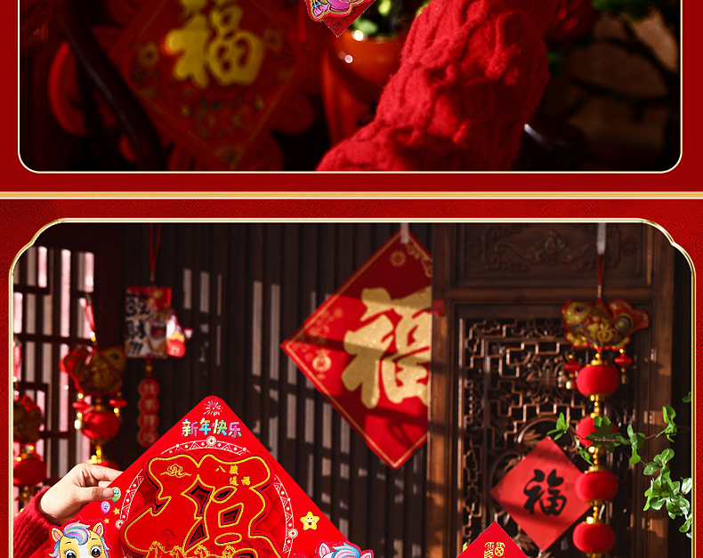 2026福字门贴自粘式马年生肖植绒立体福字贴纸烫金大门春节福字贴