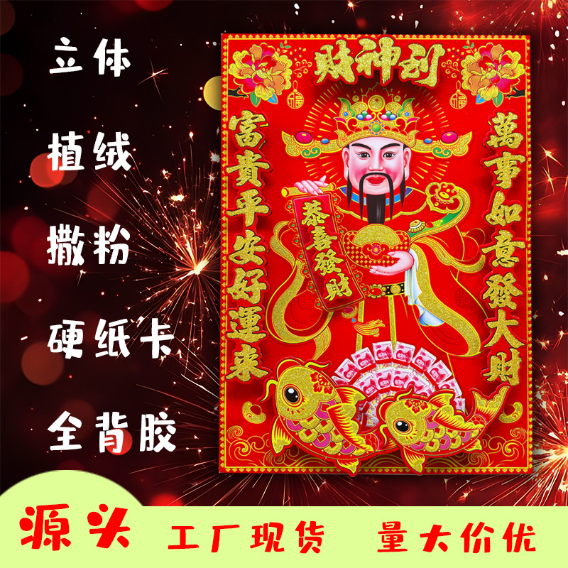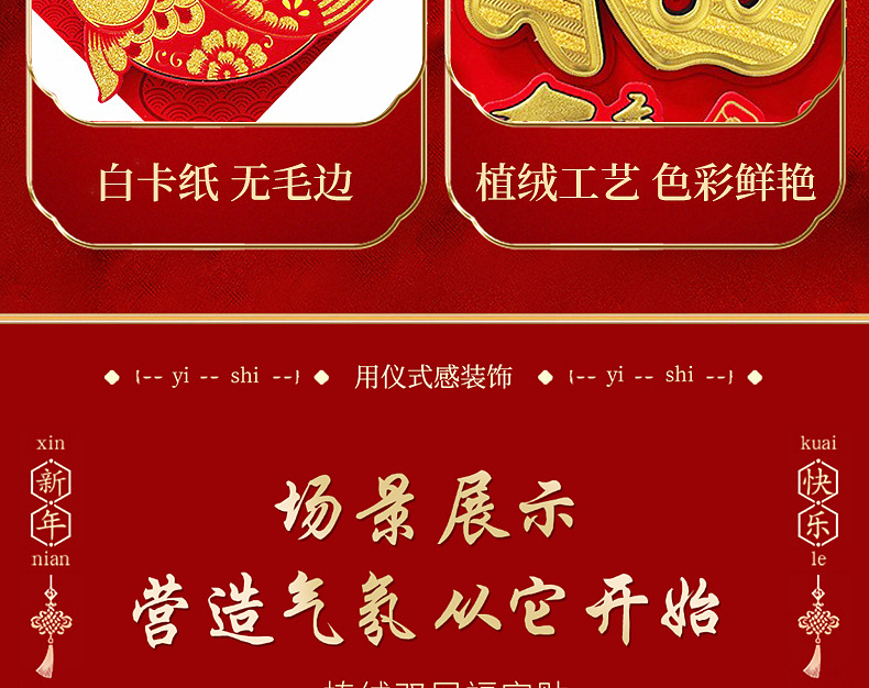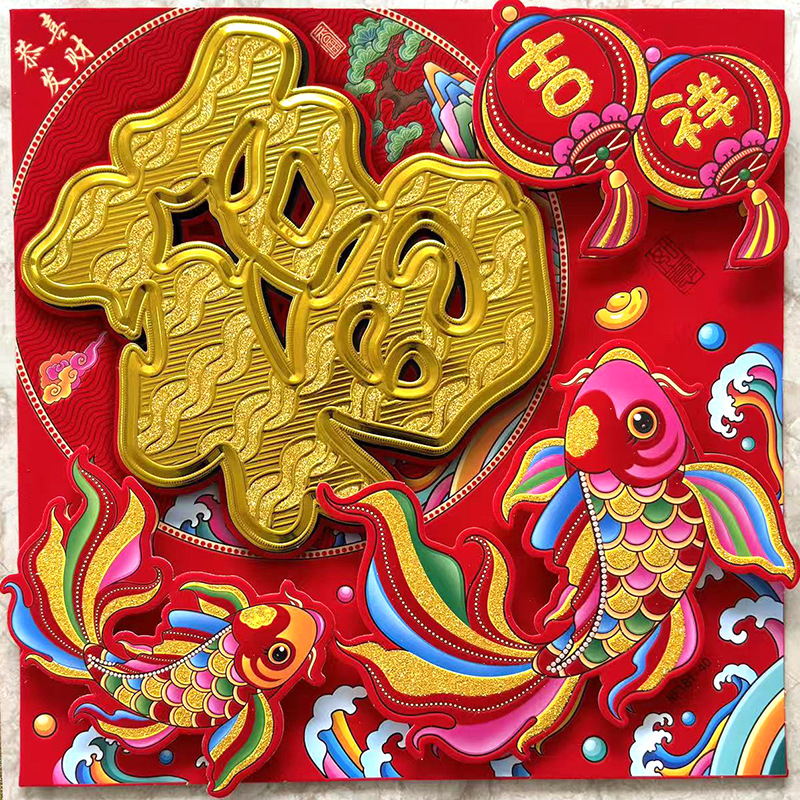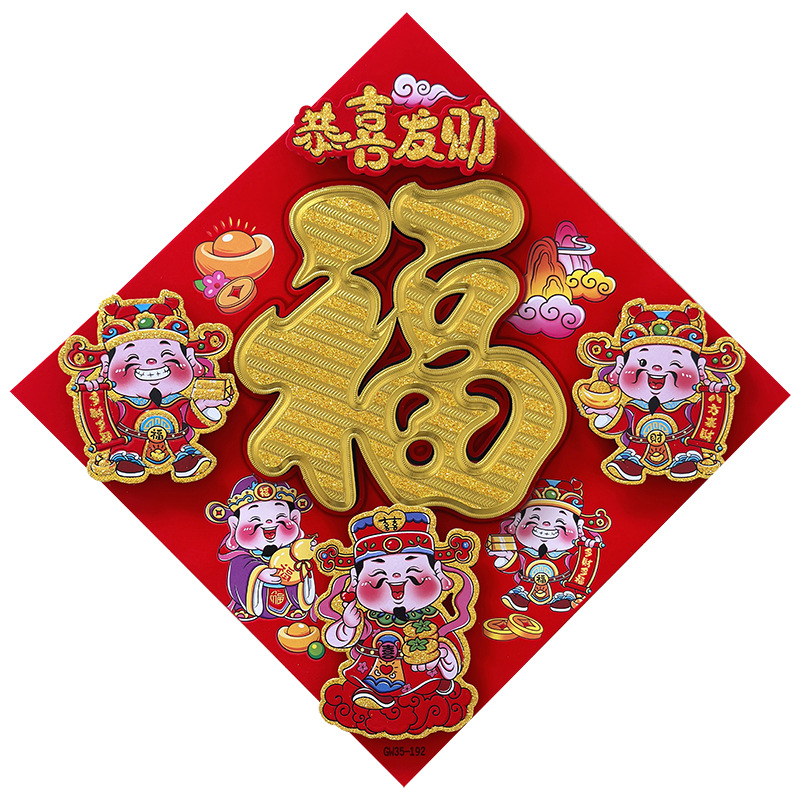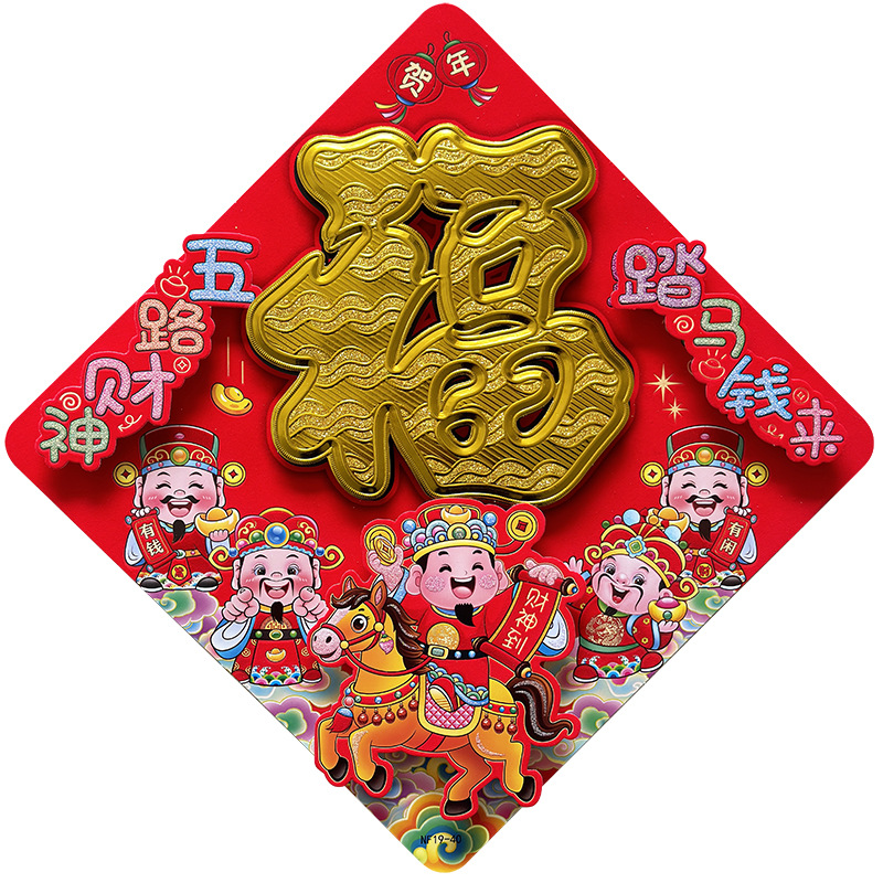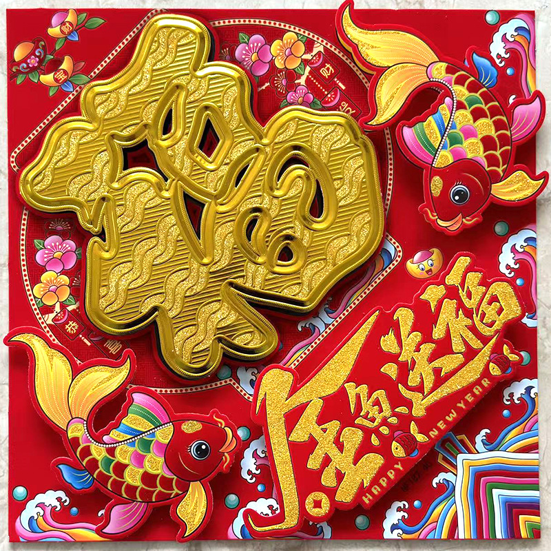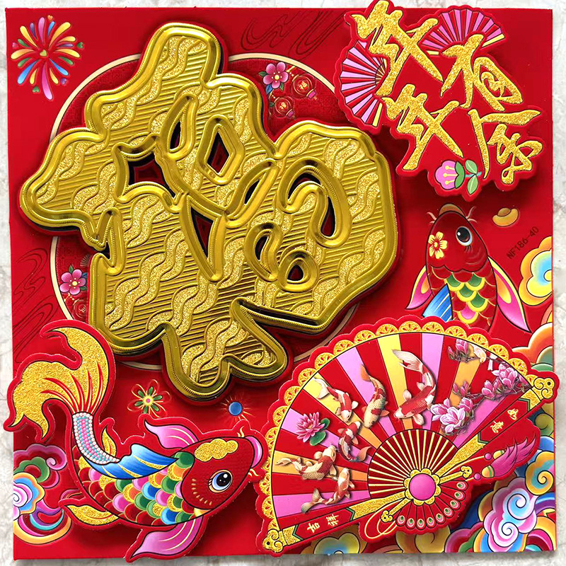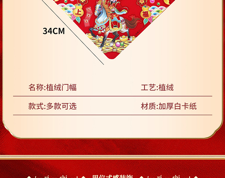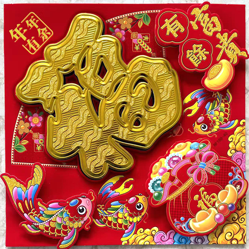 2026福字门贴自粘式马年生肖植绒立体福字贴纸烫金大门春节福字贴