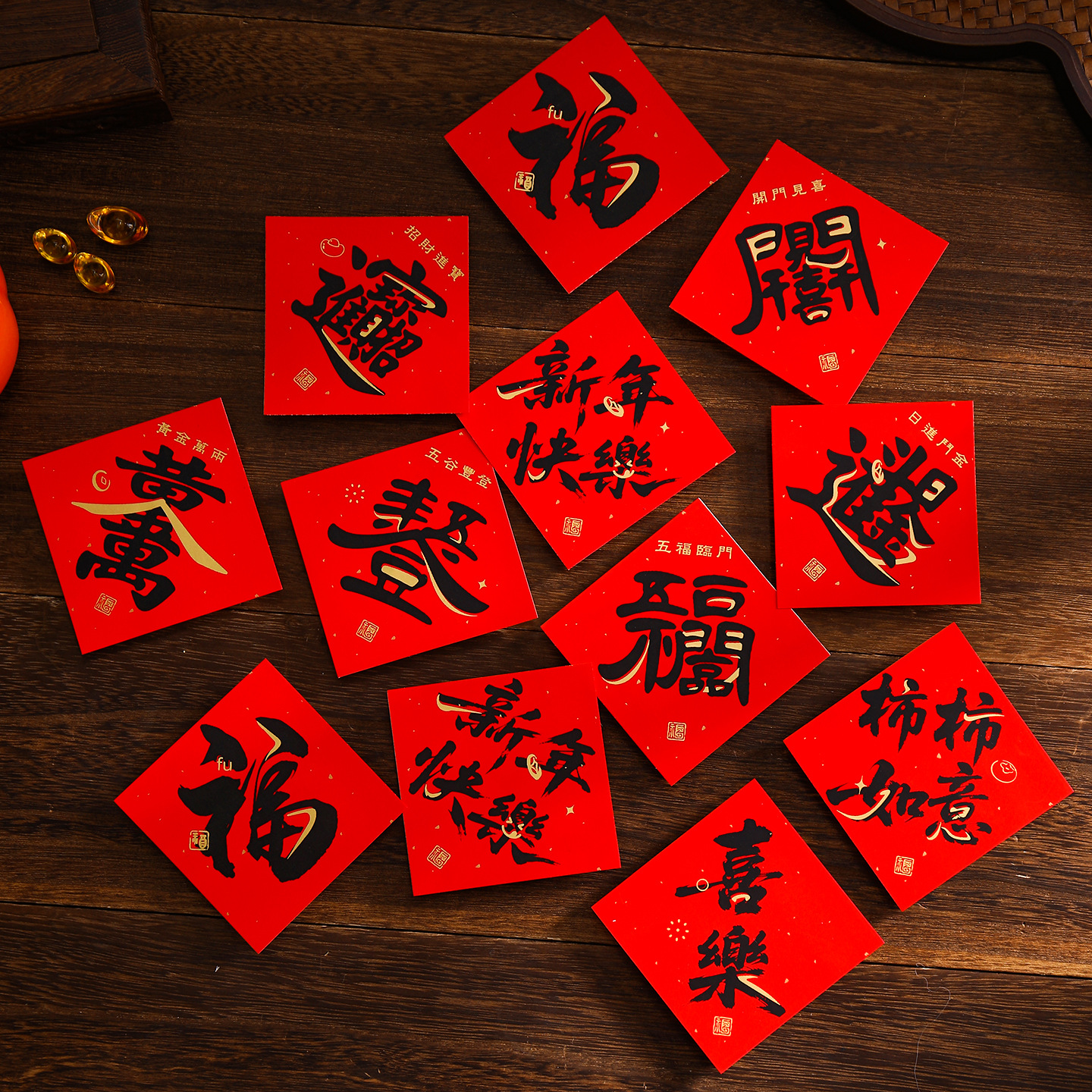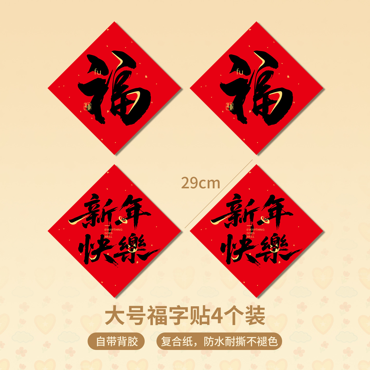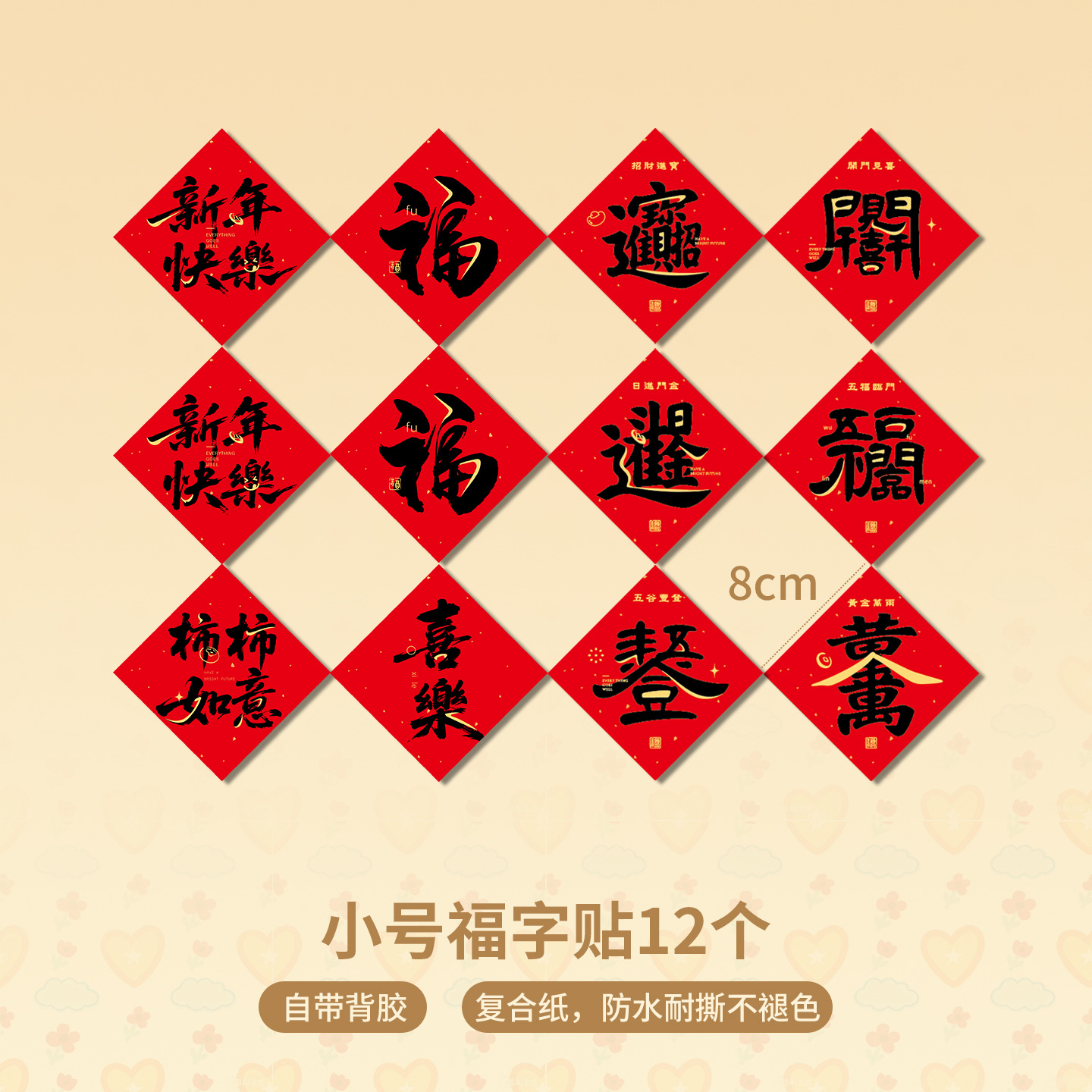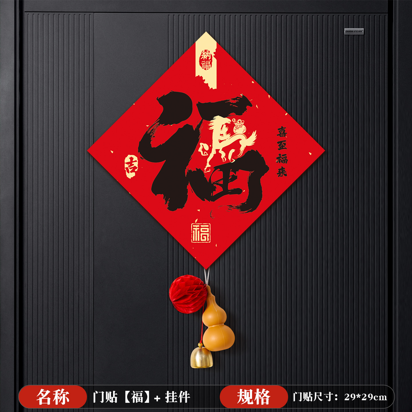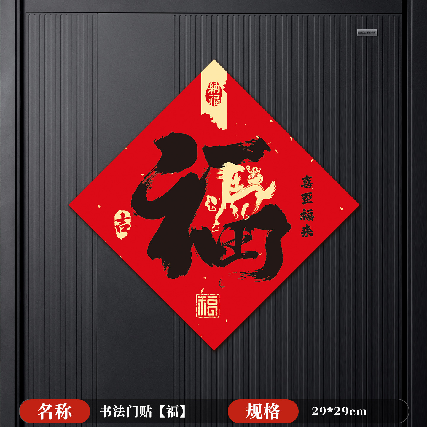 新年福字门贴2026马年新款春节入户门贴纸斗方福过年卧室场景布置