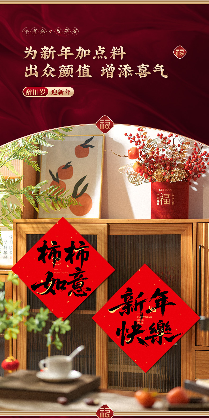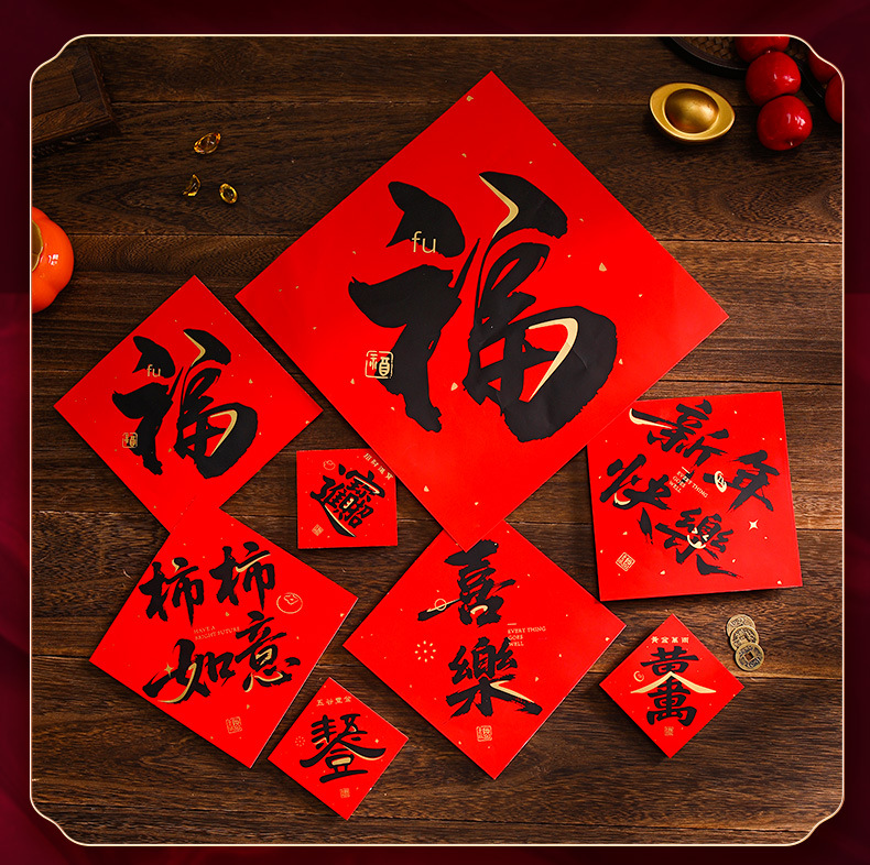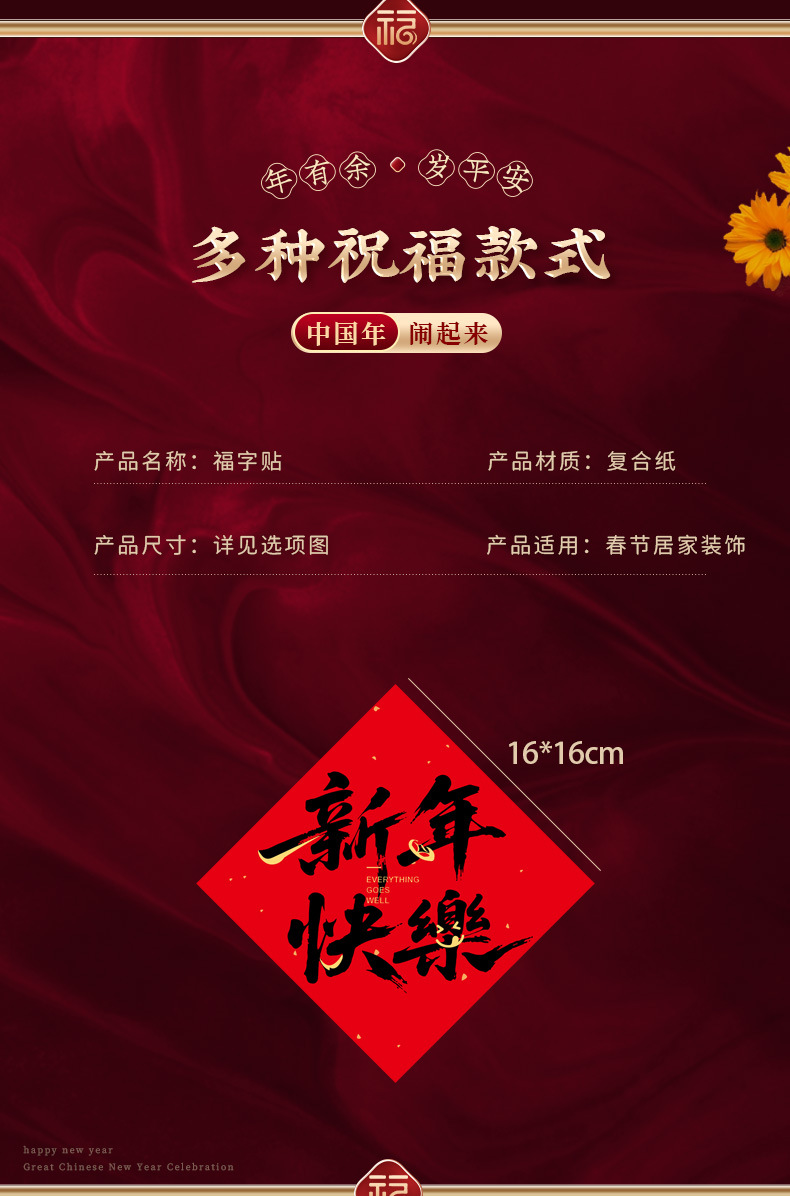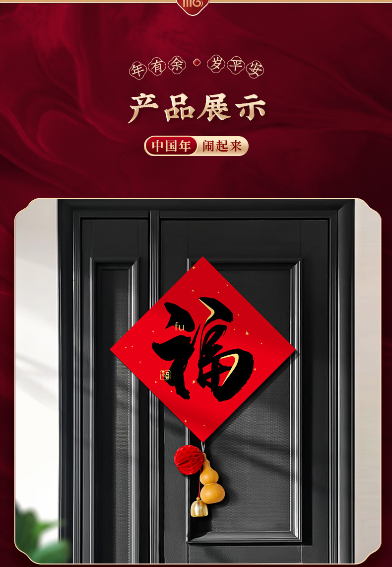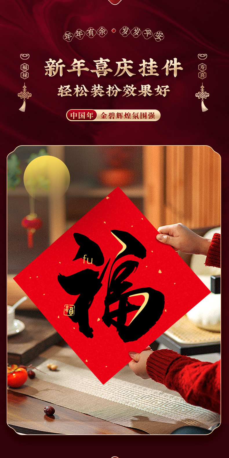 新年福字门贴2026马年新款春节入户门贴纸斗方福过年卧室场景布置