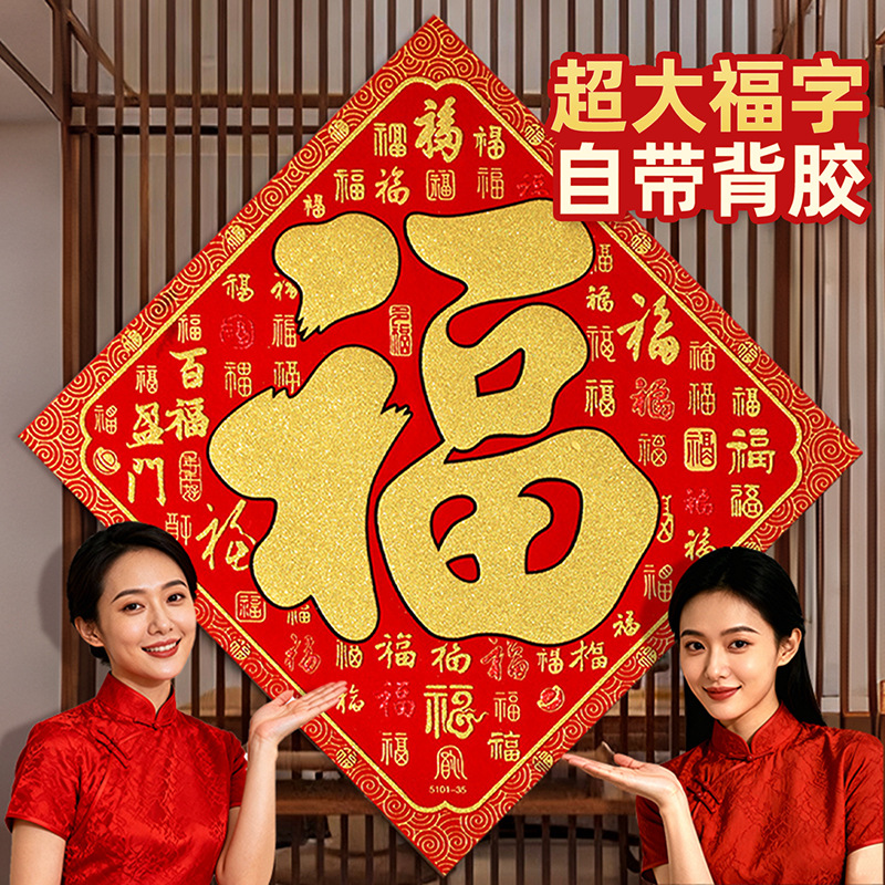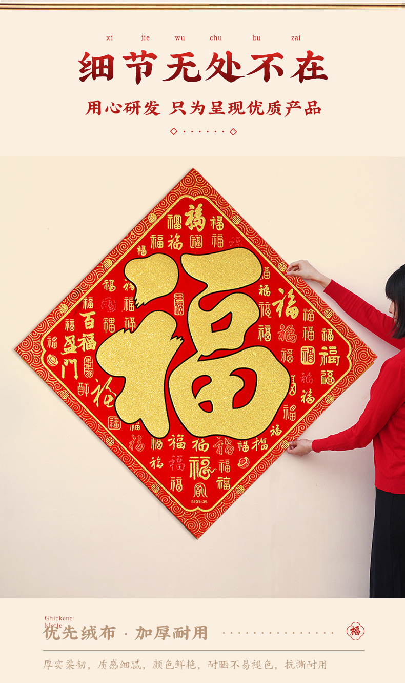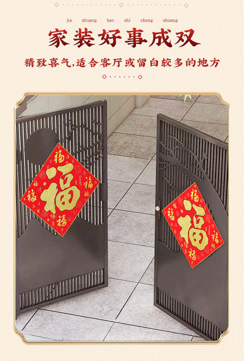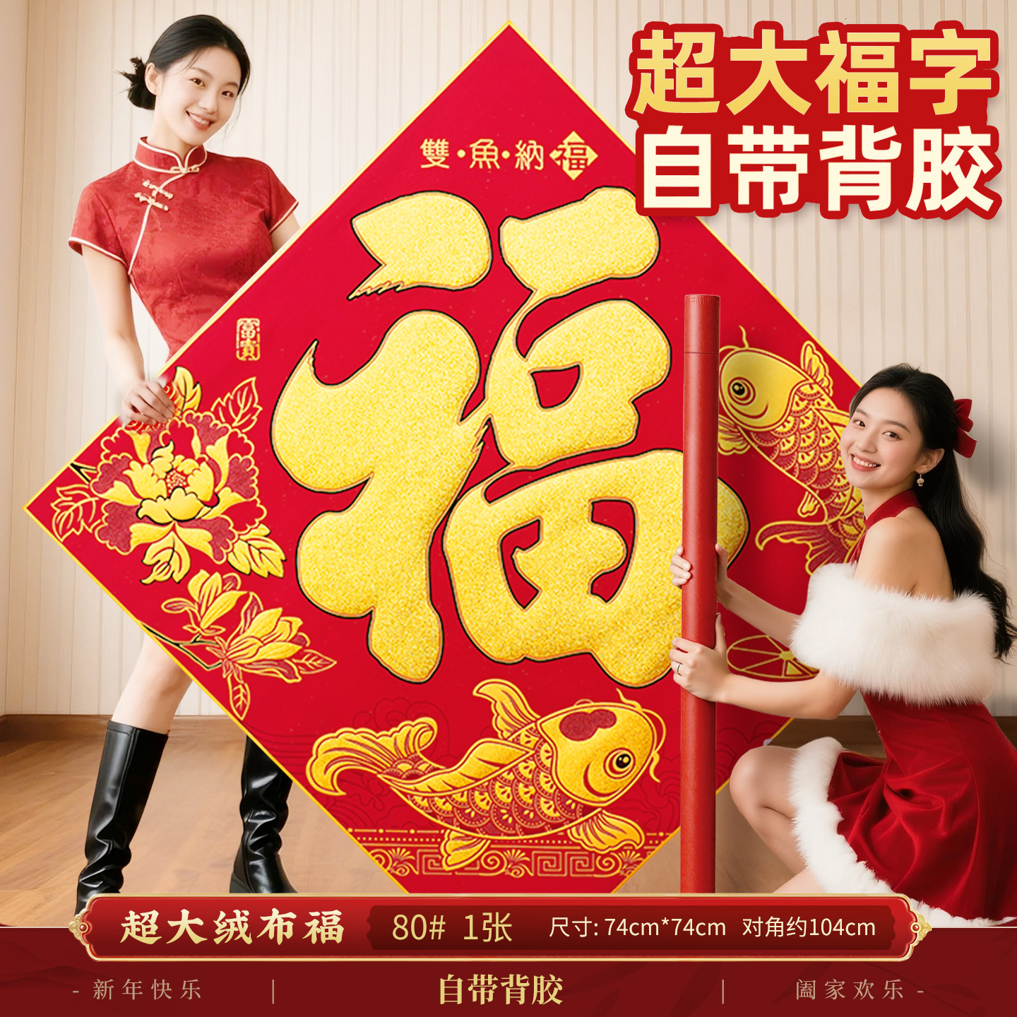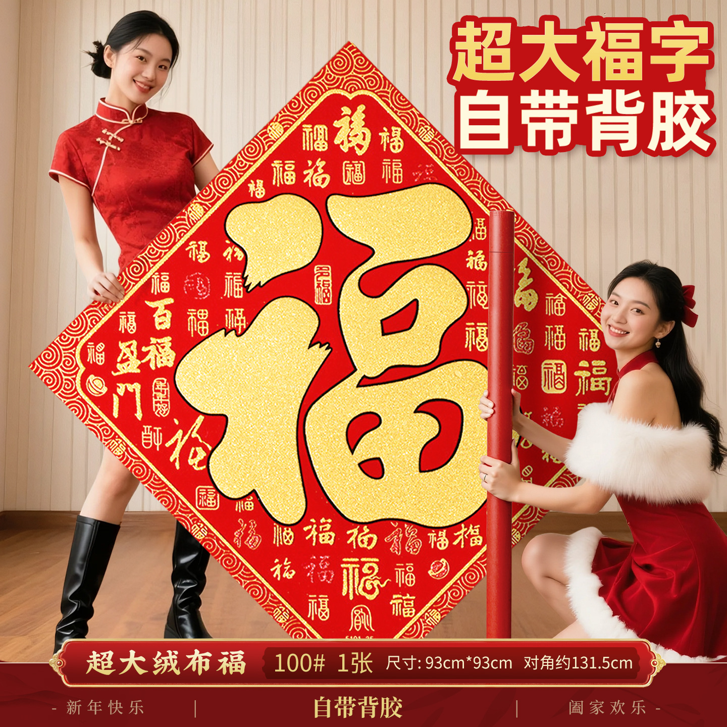 2026马年新款超大号绒布福字门贴大门春节喜庆装饰新春入户门贴纸