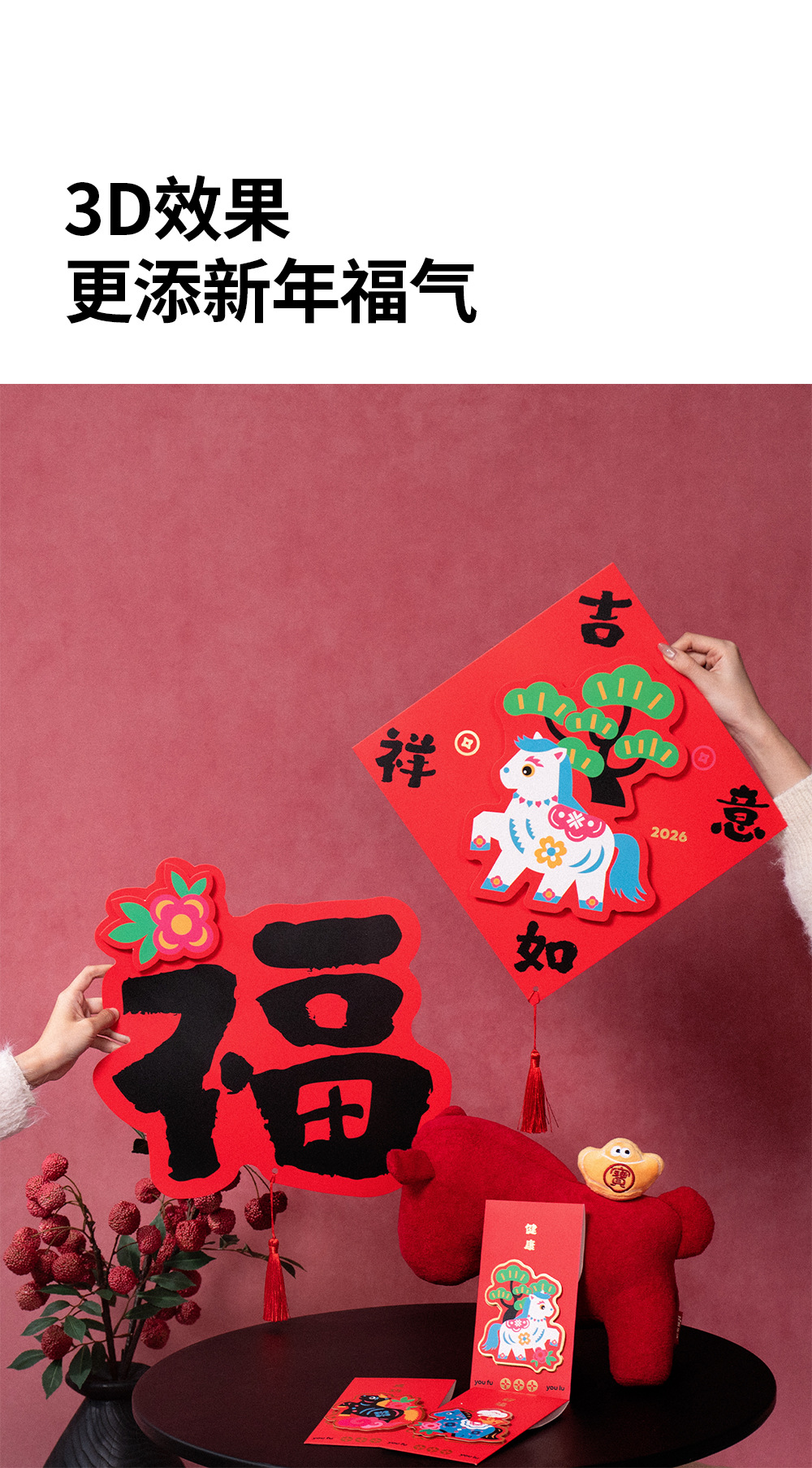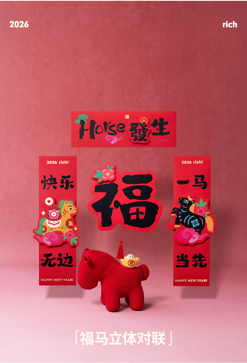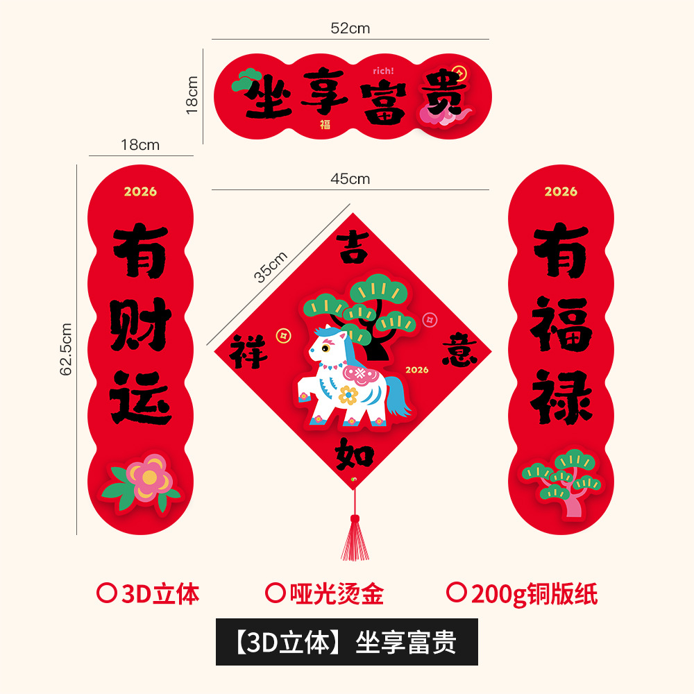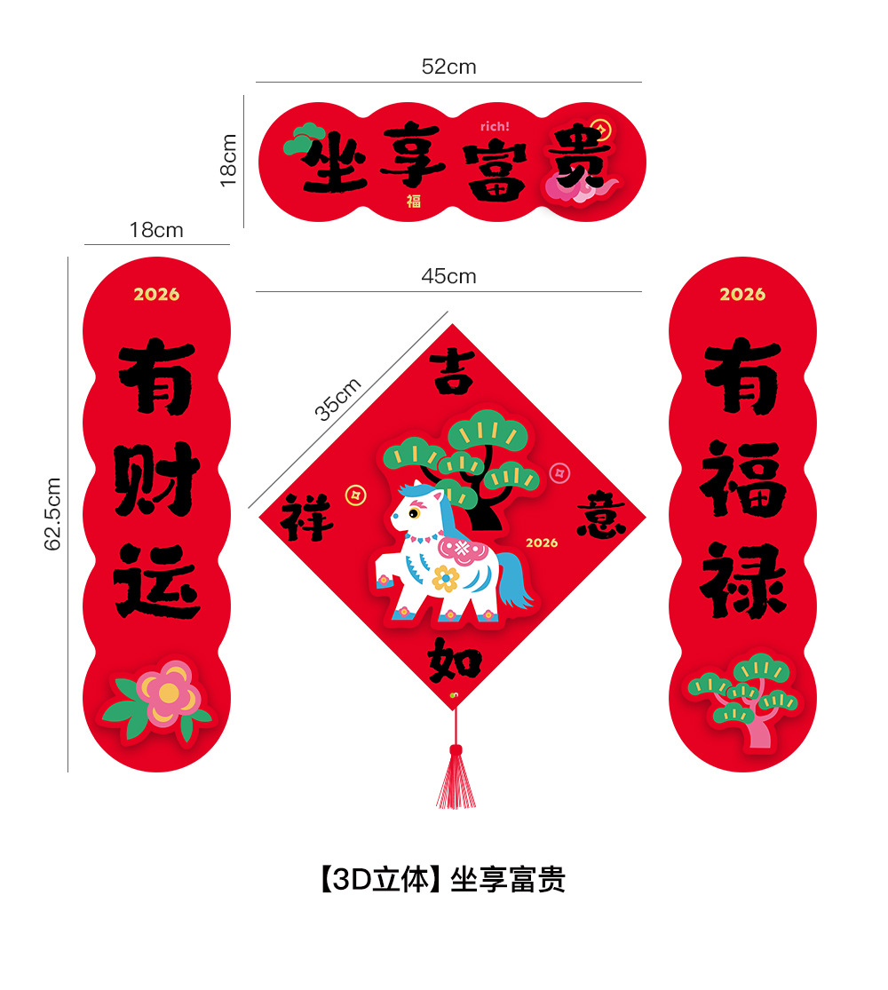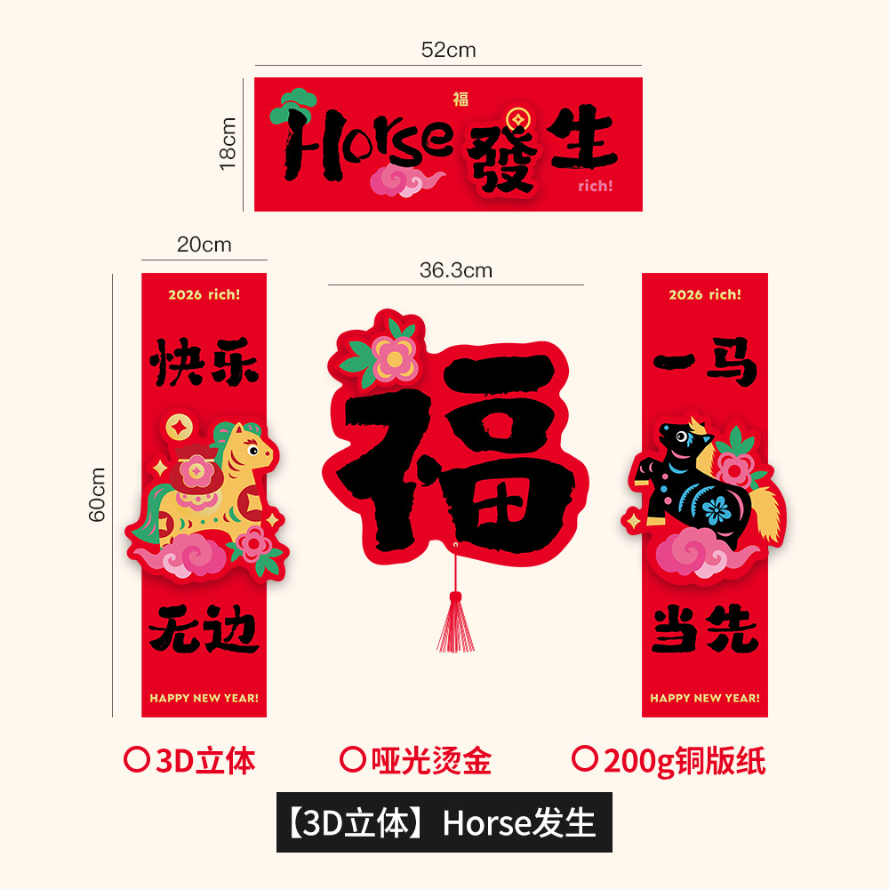 2026马年立体对联福字门贴纸春节磁吸过新年大门装饰用品春联