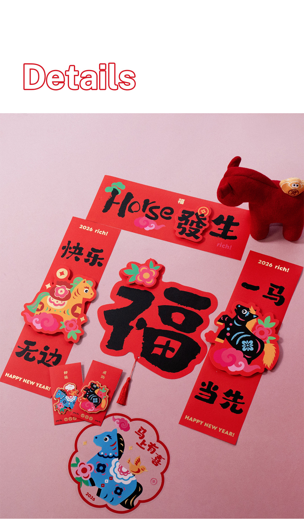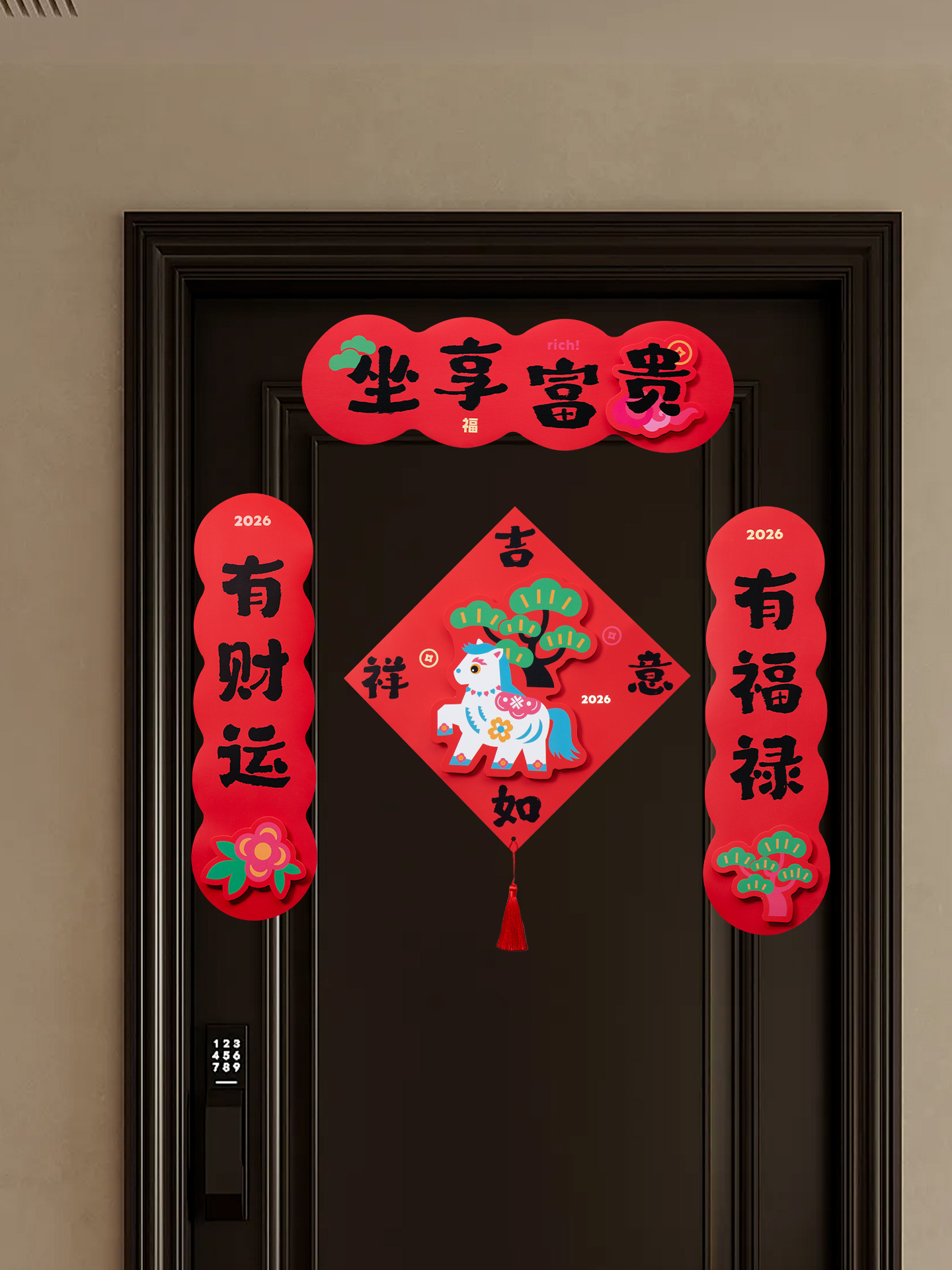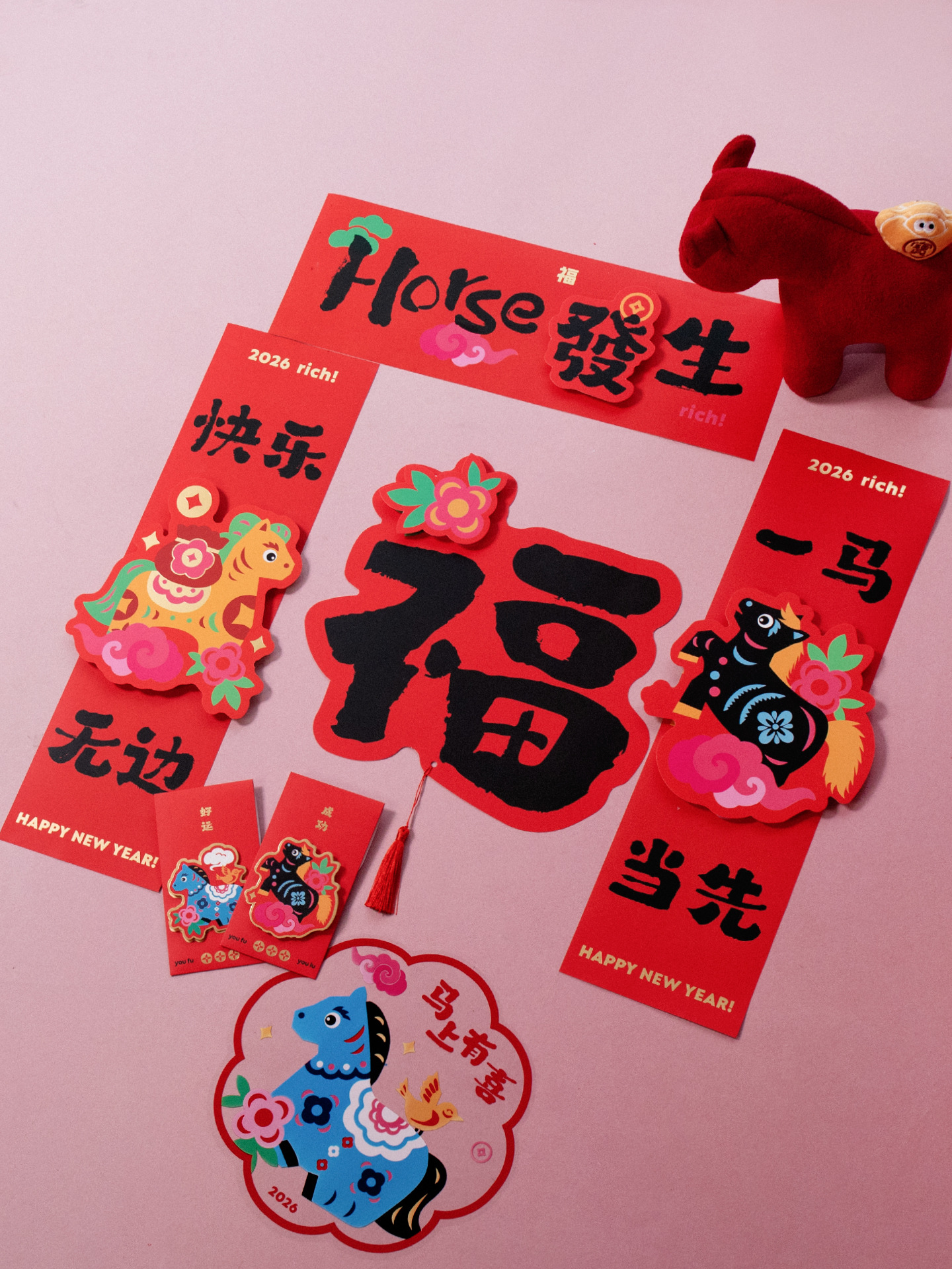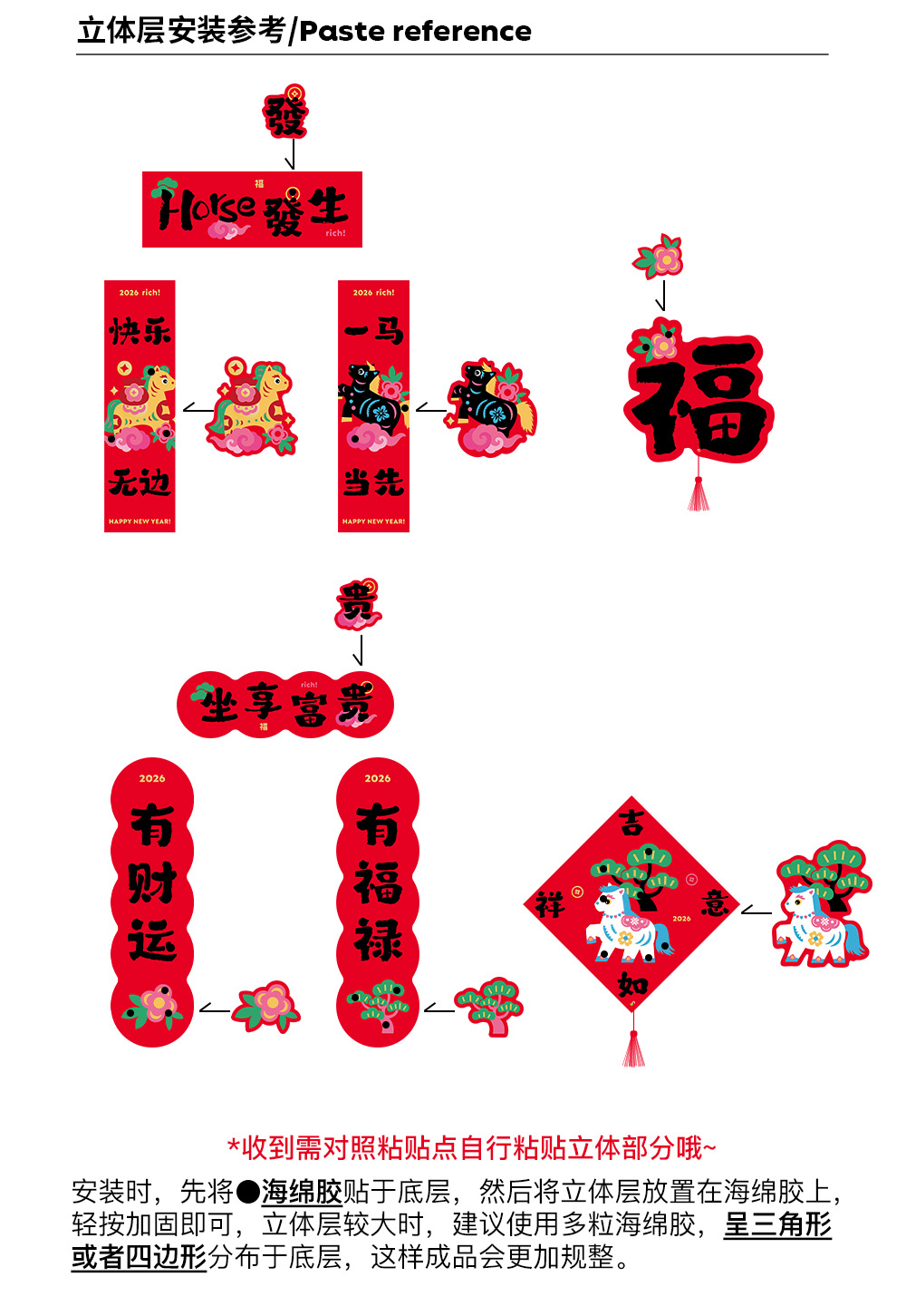 2026马年立体对联福字门贴纸春节磁吸过新年大门装饰用品春联